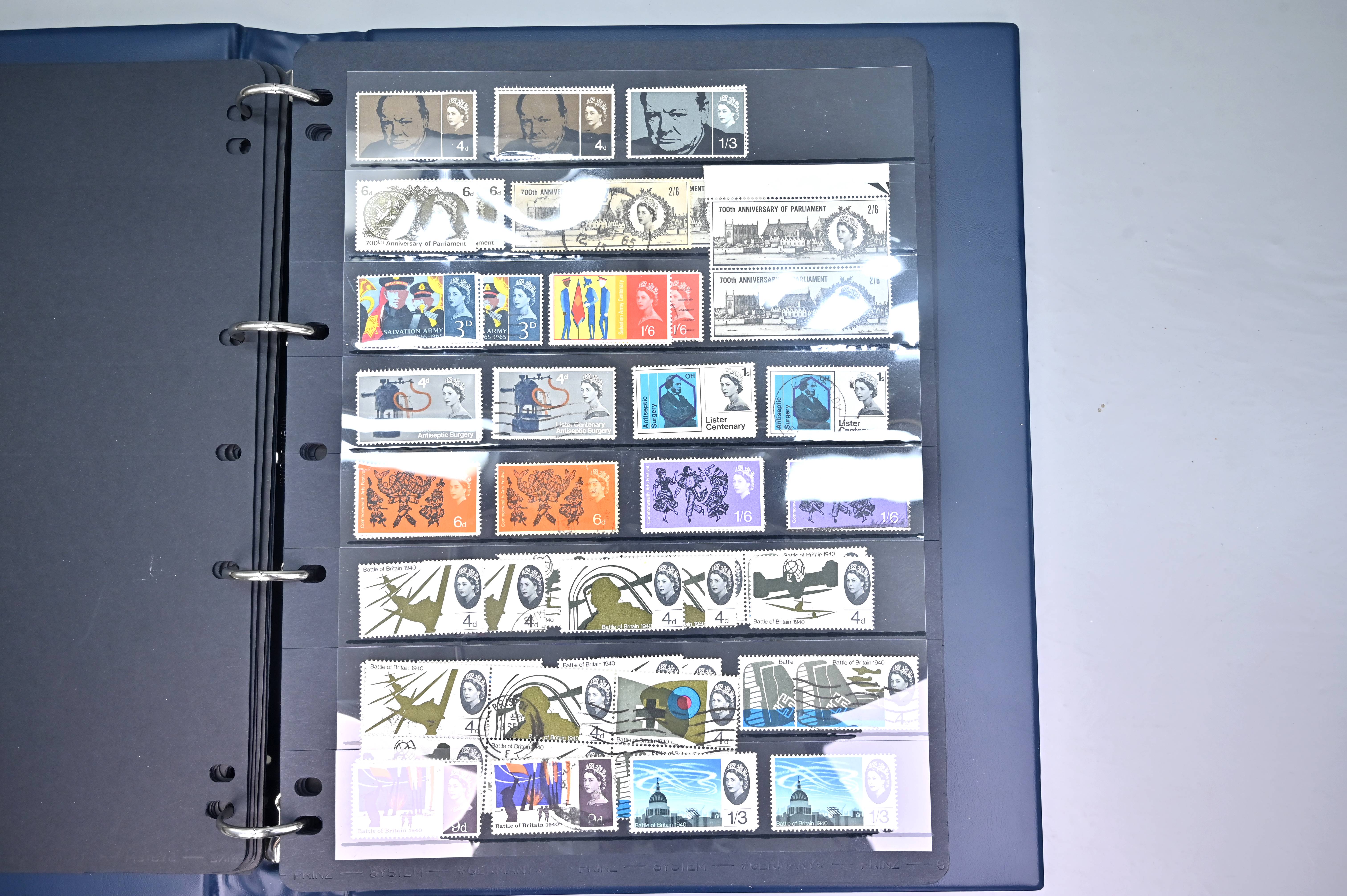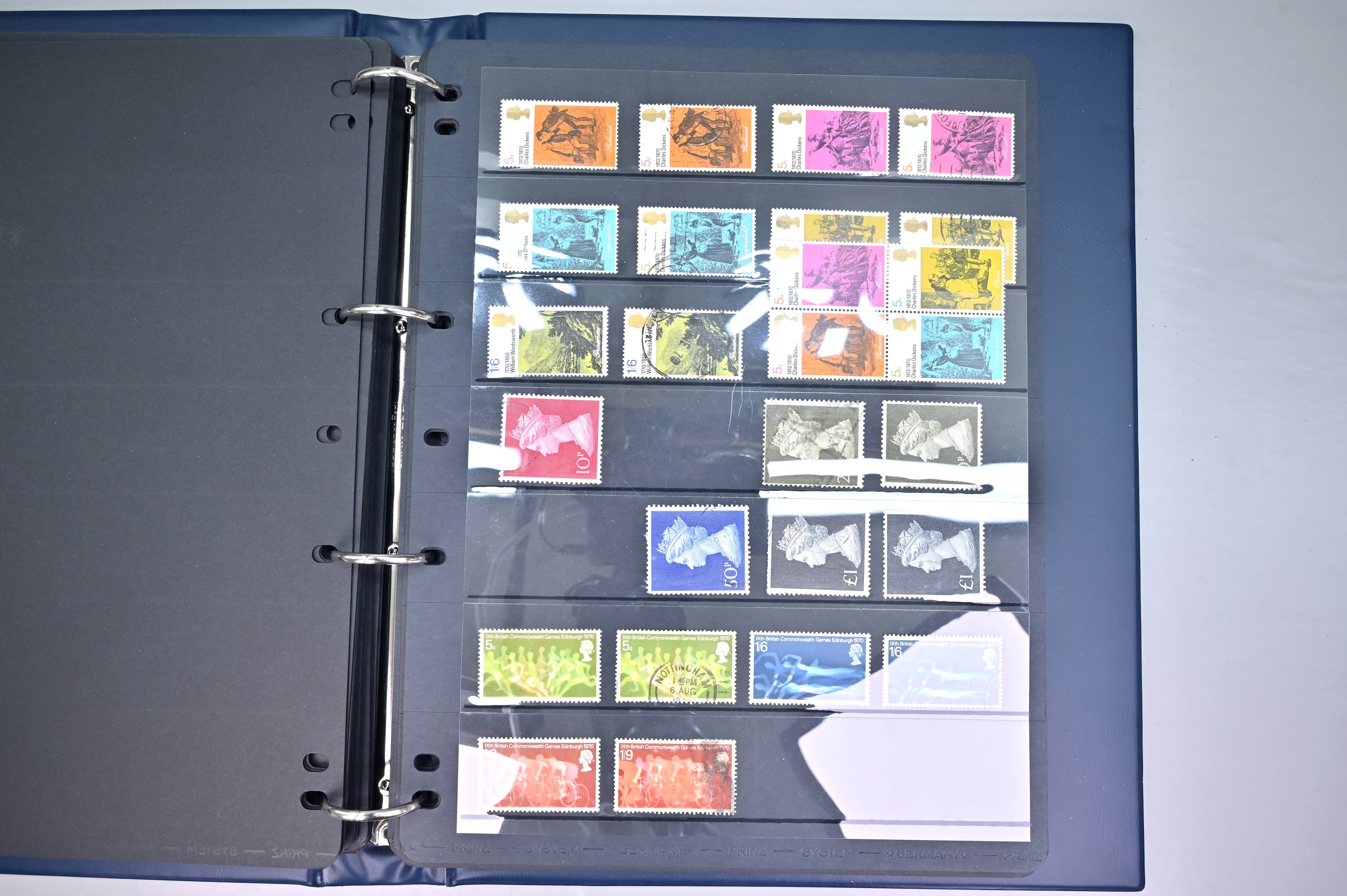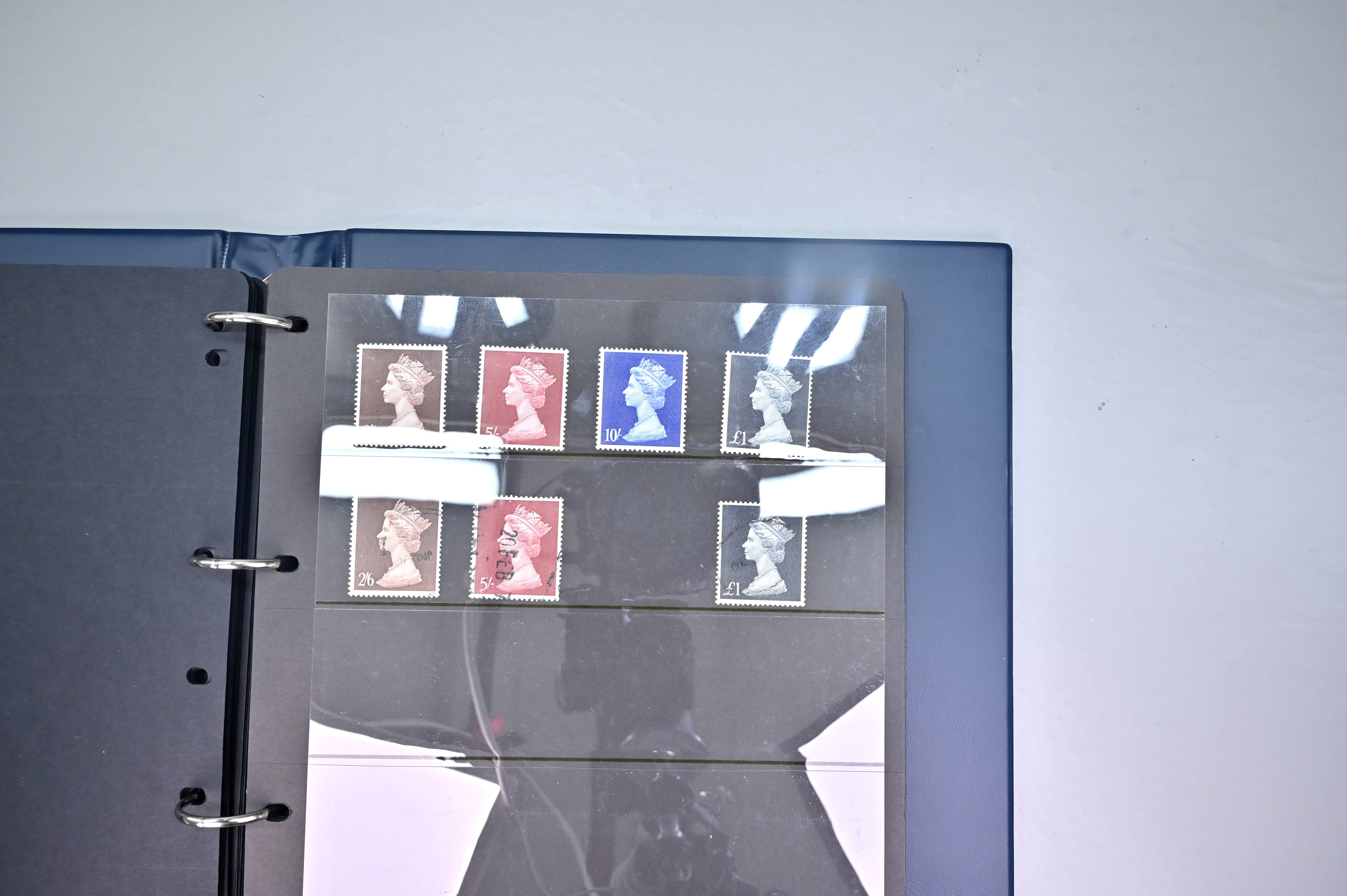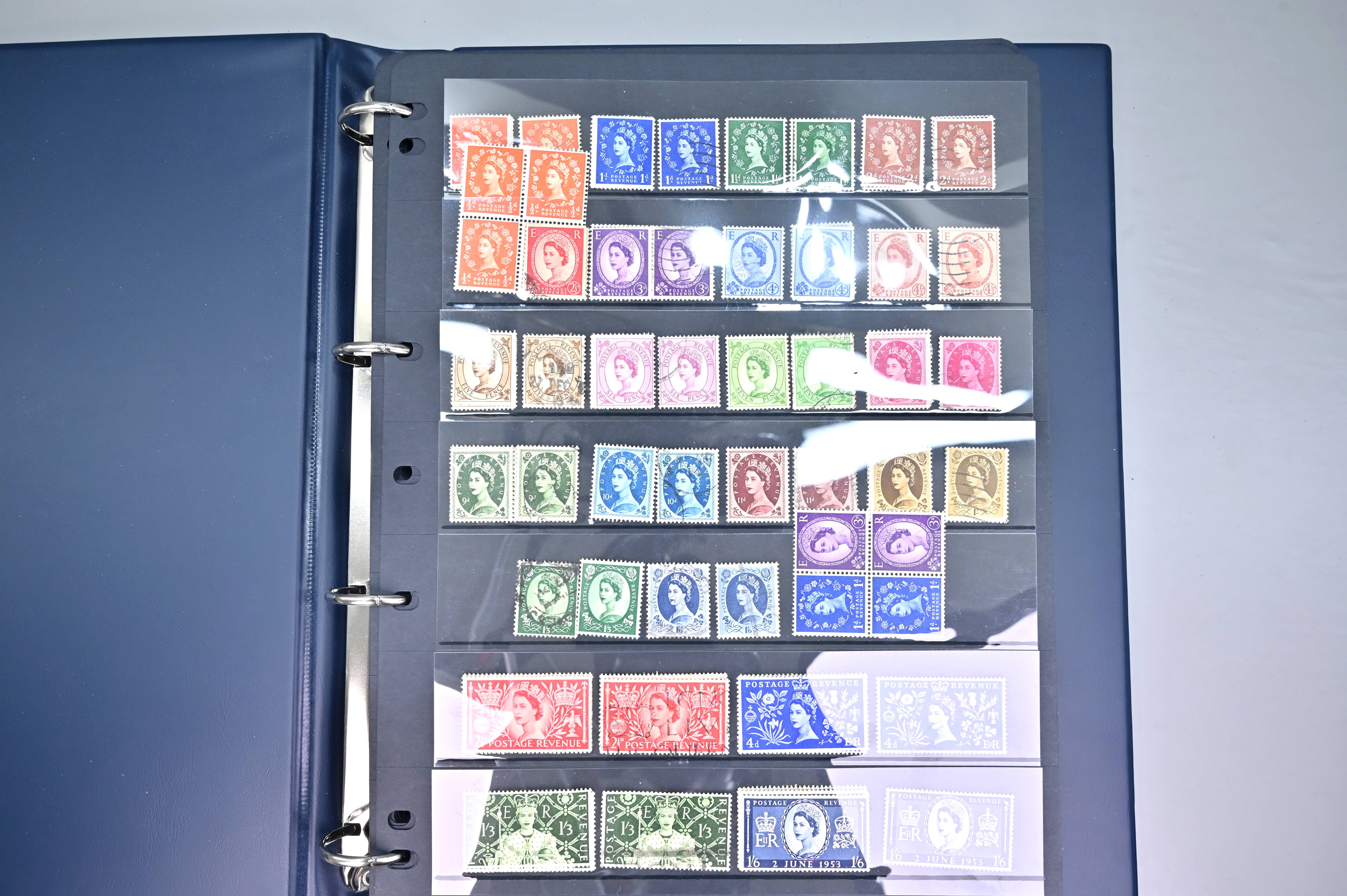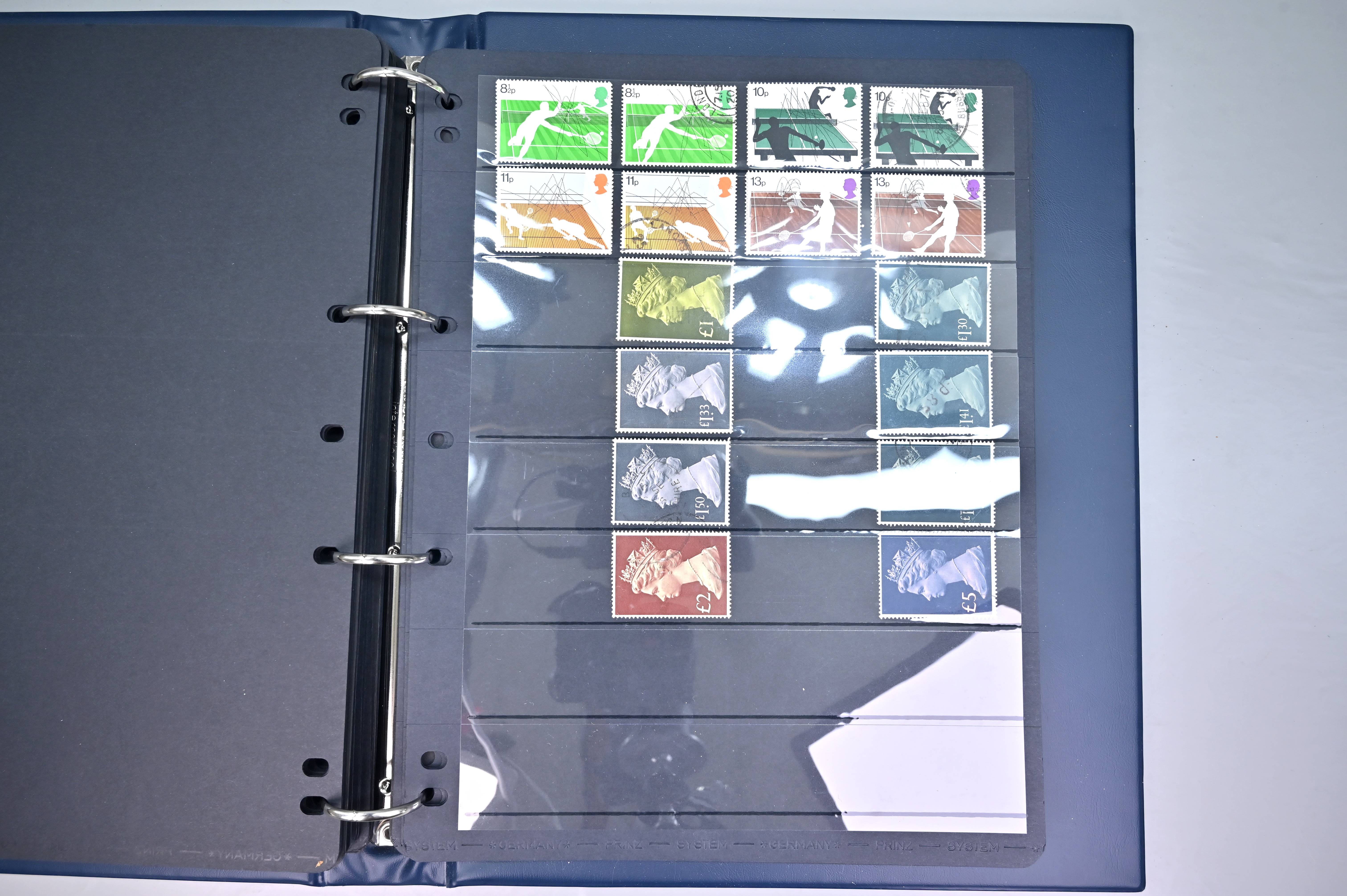 Description: Good collection of QEII stamps in folder on hangers. The collection contains mint & uséd examples of most issues, including: Wildings, Booklet Panes, Graphite Lines, Machins, Wilding Castles to £1, Ordinary and Phosphor Issues. The collection also contains a good range of 1970s Commemorative issues including mint face values. Many better items noted, including £ 10 uséd. The collection is in good neat order and unpicked.