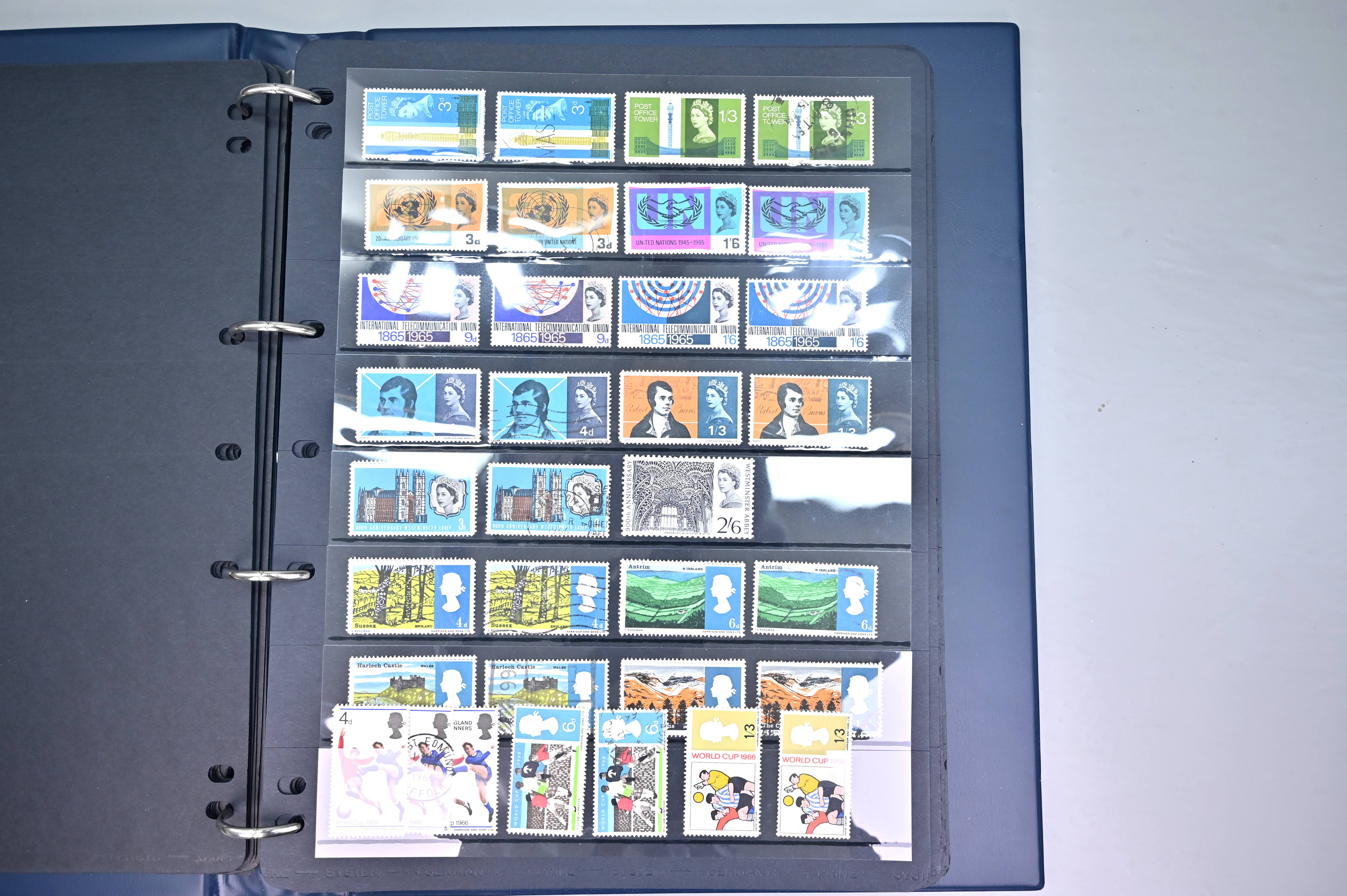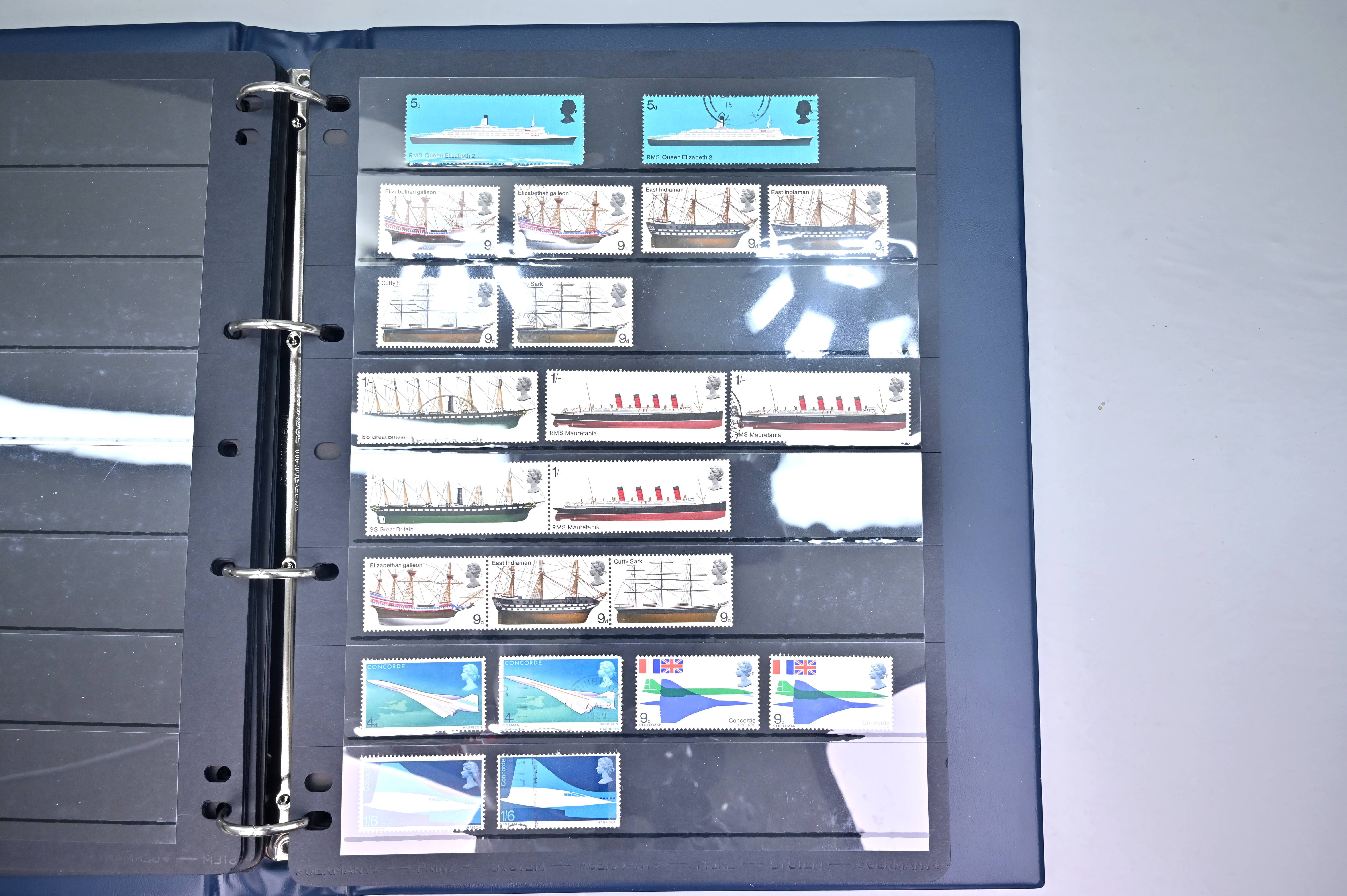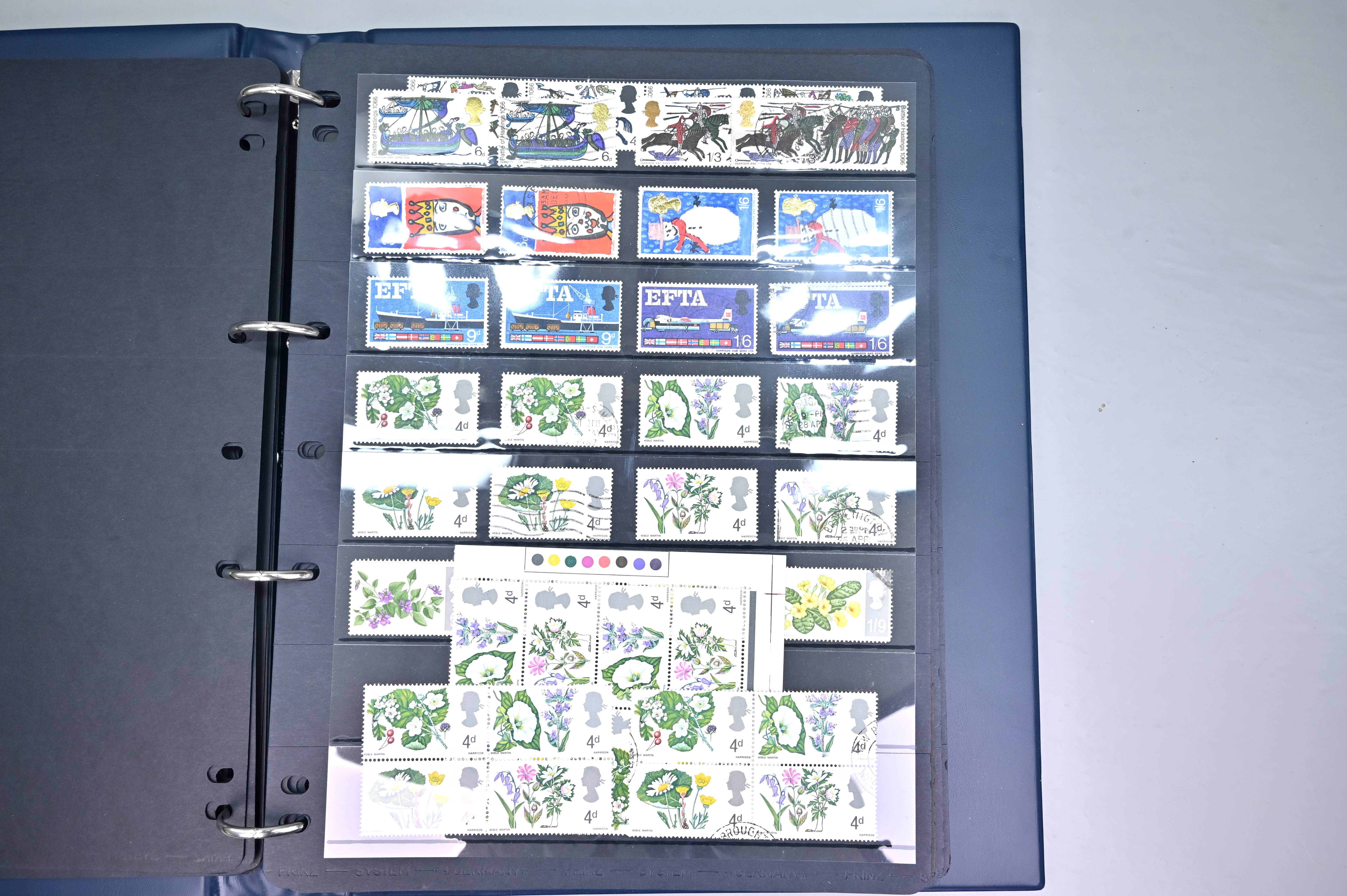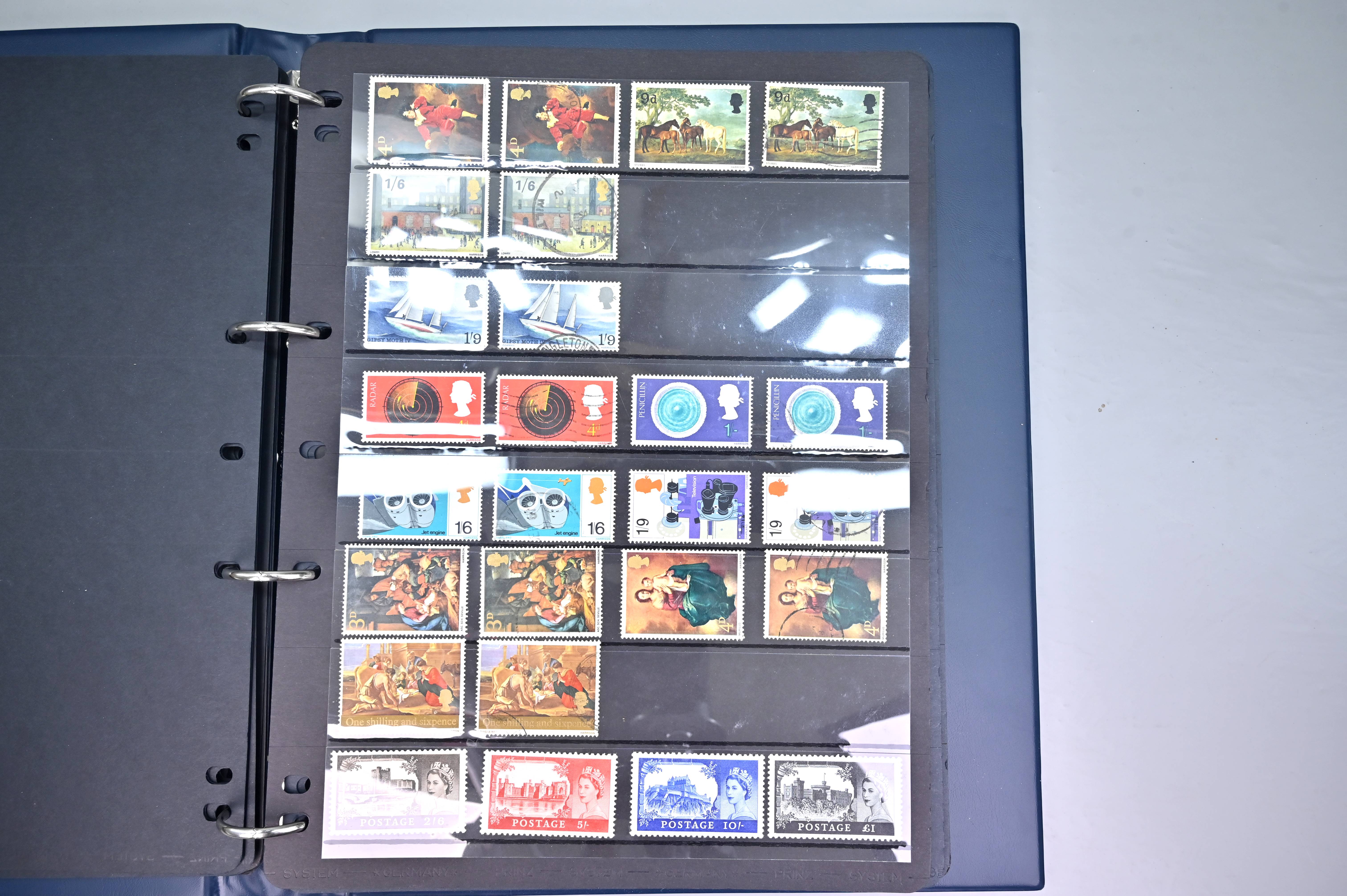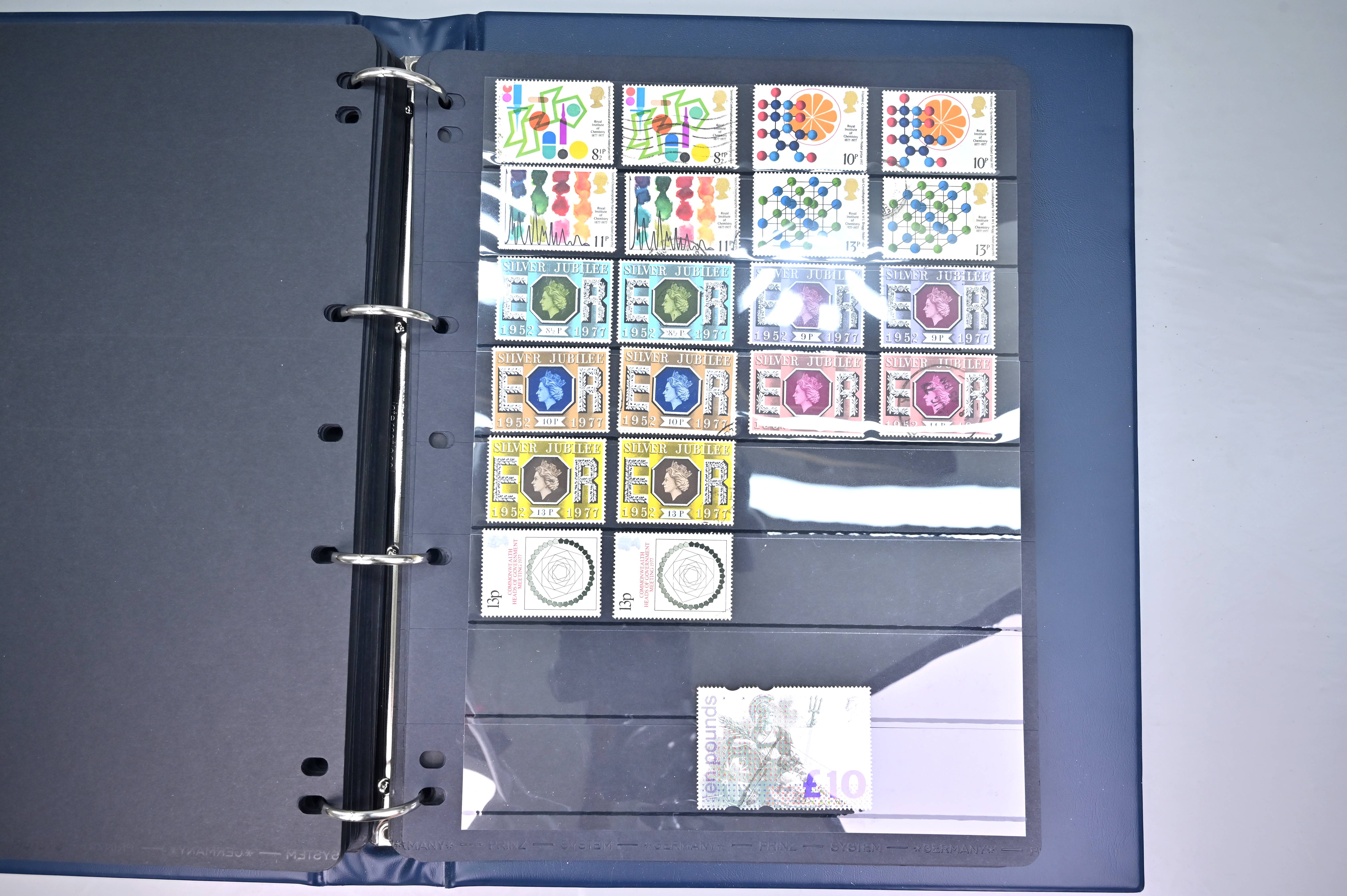 Description: Good collection of QEII stamps in folder on hangers. The collection contains mint & uséd examples of most issues, including: Wildings, Booklet Panes, Graphite Lines, Machins, Wilding Castles to £1, Ordinary and Phosphor Issues. The collection also contains a good range of 1970s Commemorative issues including mint face values. Many better items noted, including £ 10 uséd. The collection is in good neat order and unpicked.