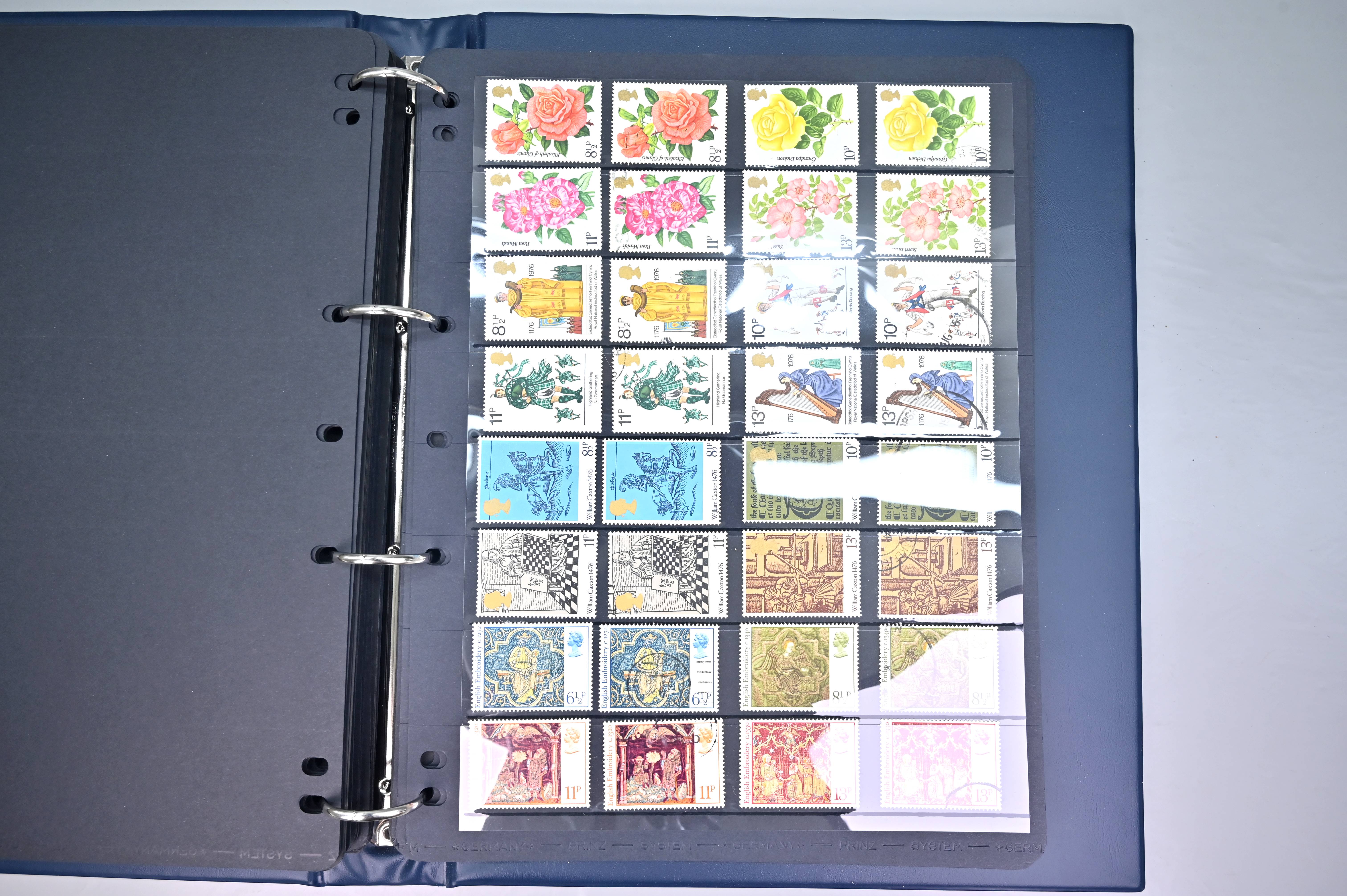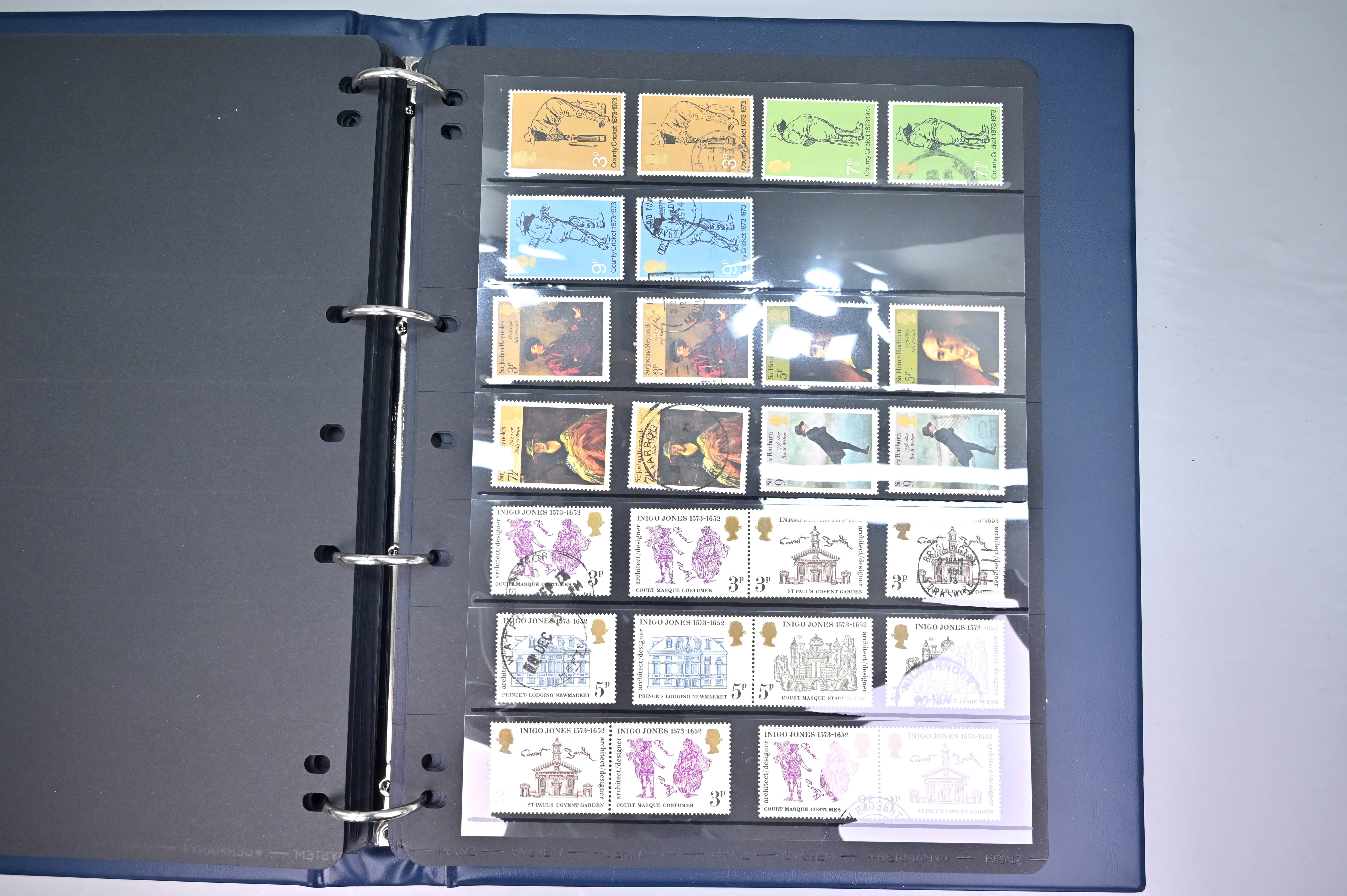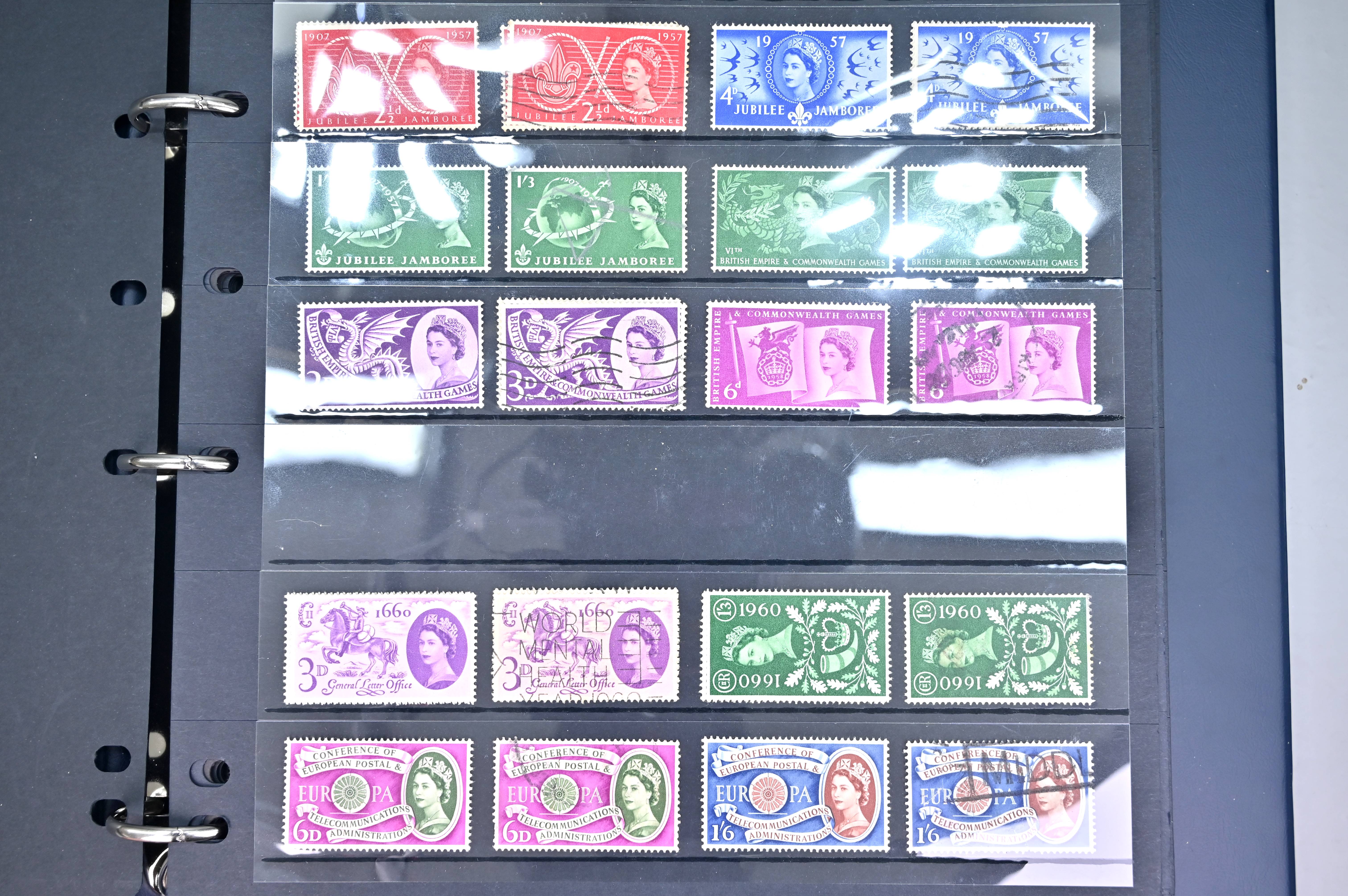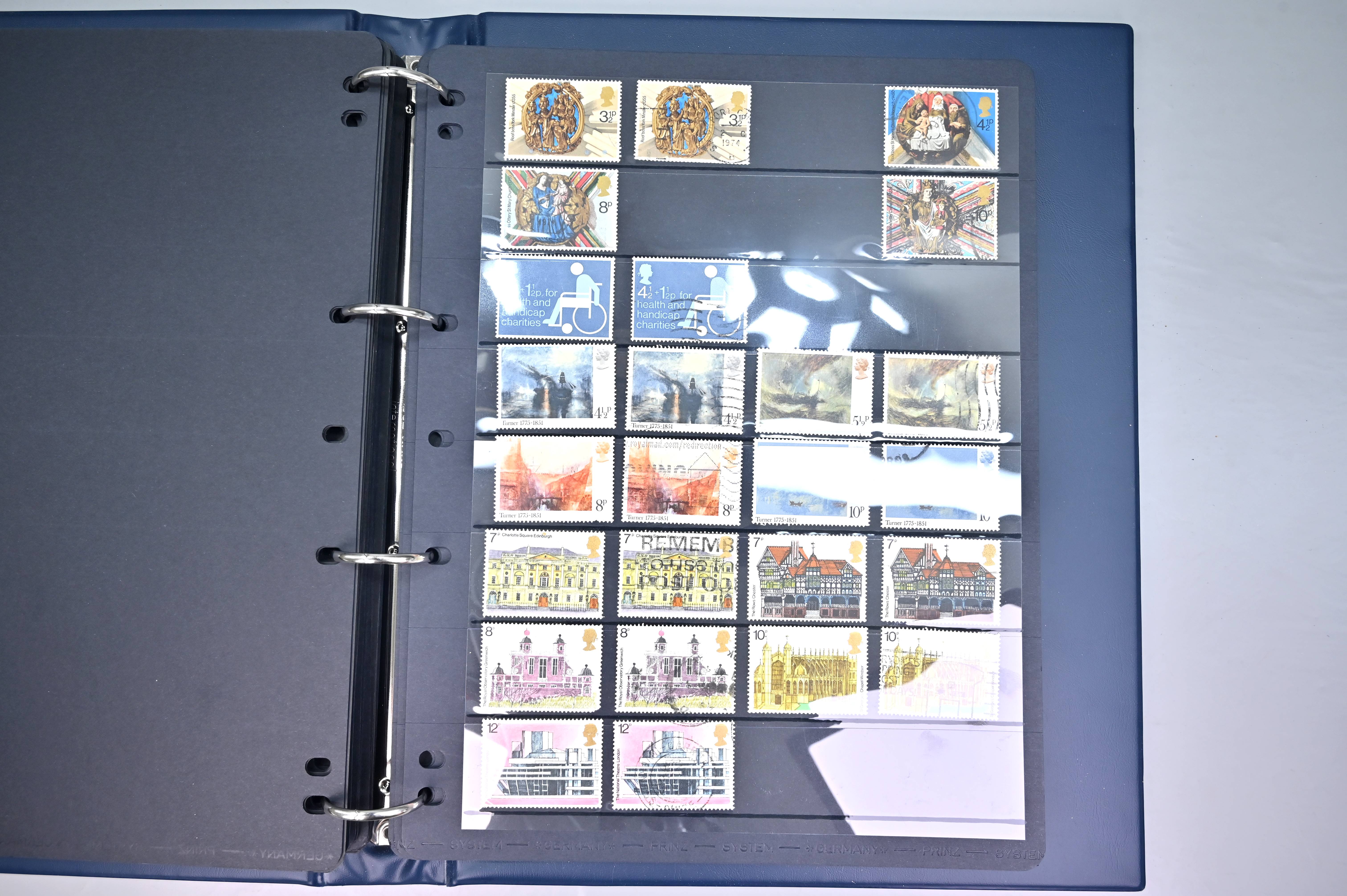 Description: Good collection of QEII stamps in folder on hangers. The collection contains mint & uséd examples of most issues, including: Wildings, Booklet Panes, Graphite Lines, Machins, Wilding Castles to £1, Ordinary and Phosphor Issues. The collection also contains a good range of 1970s Commemorative issues including mint face values. Many better items noted, including £ 10 uséd. The collection is in good neat order and unpicked.