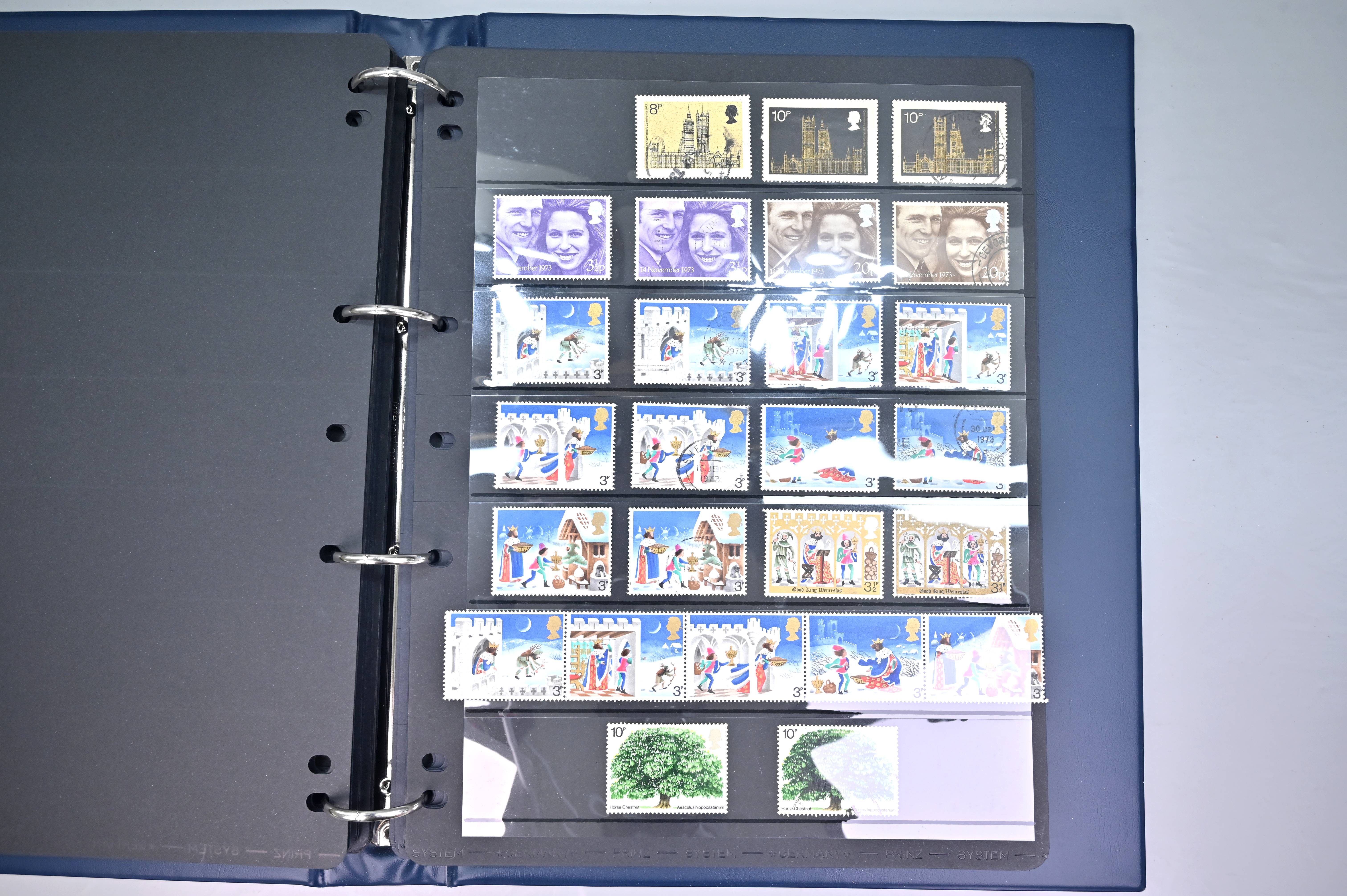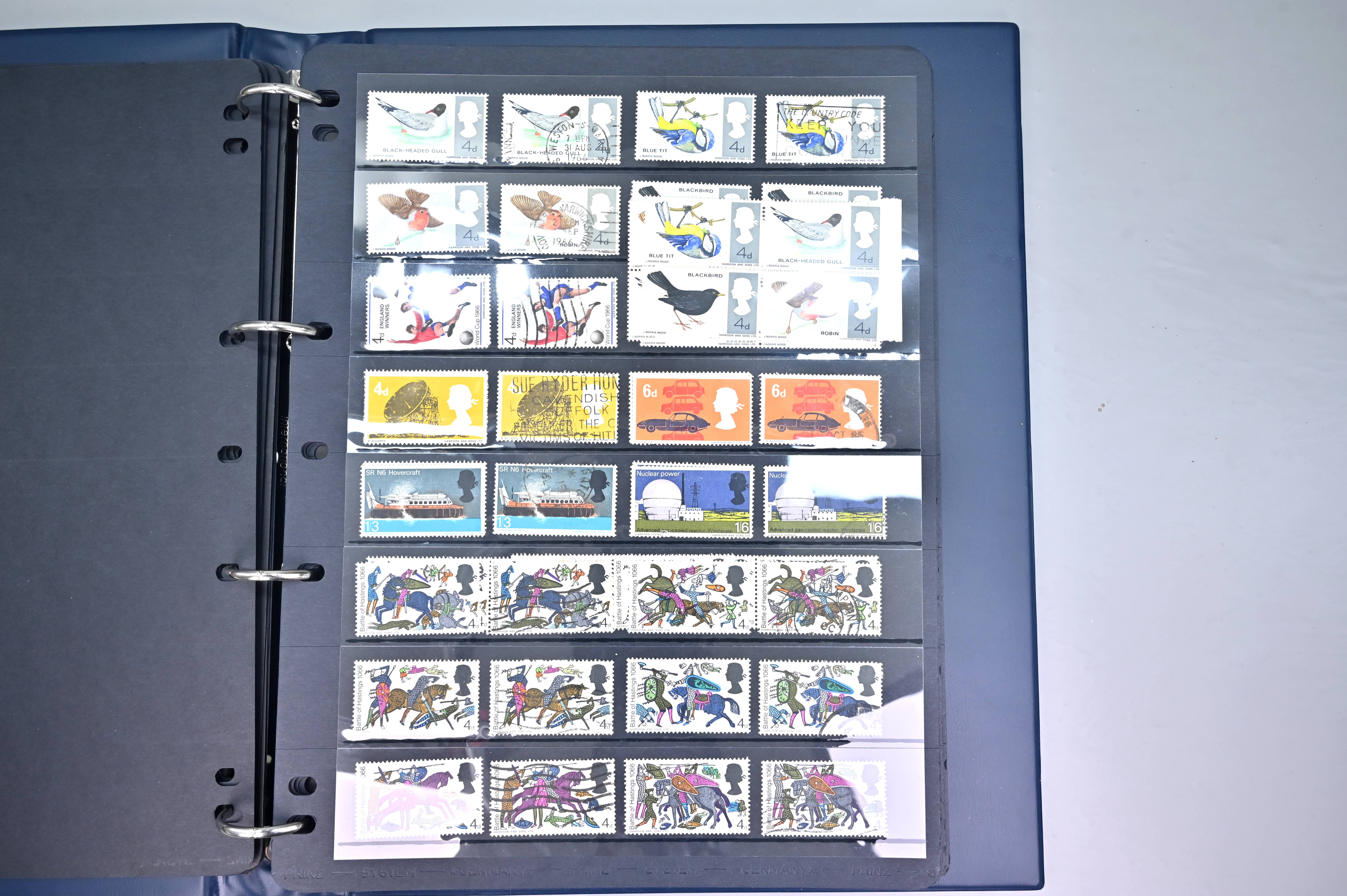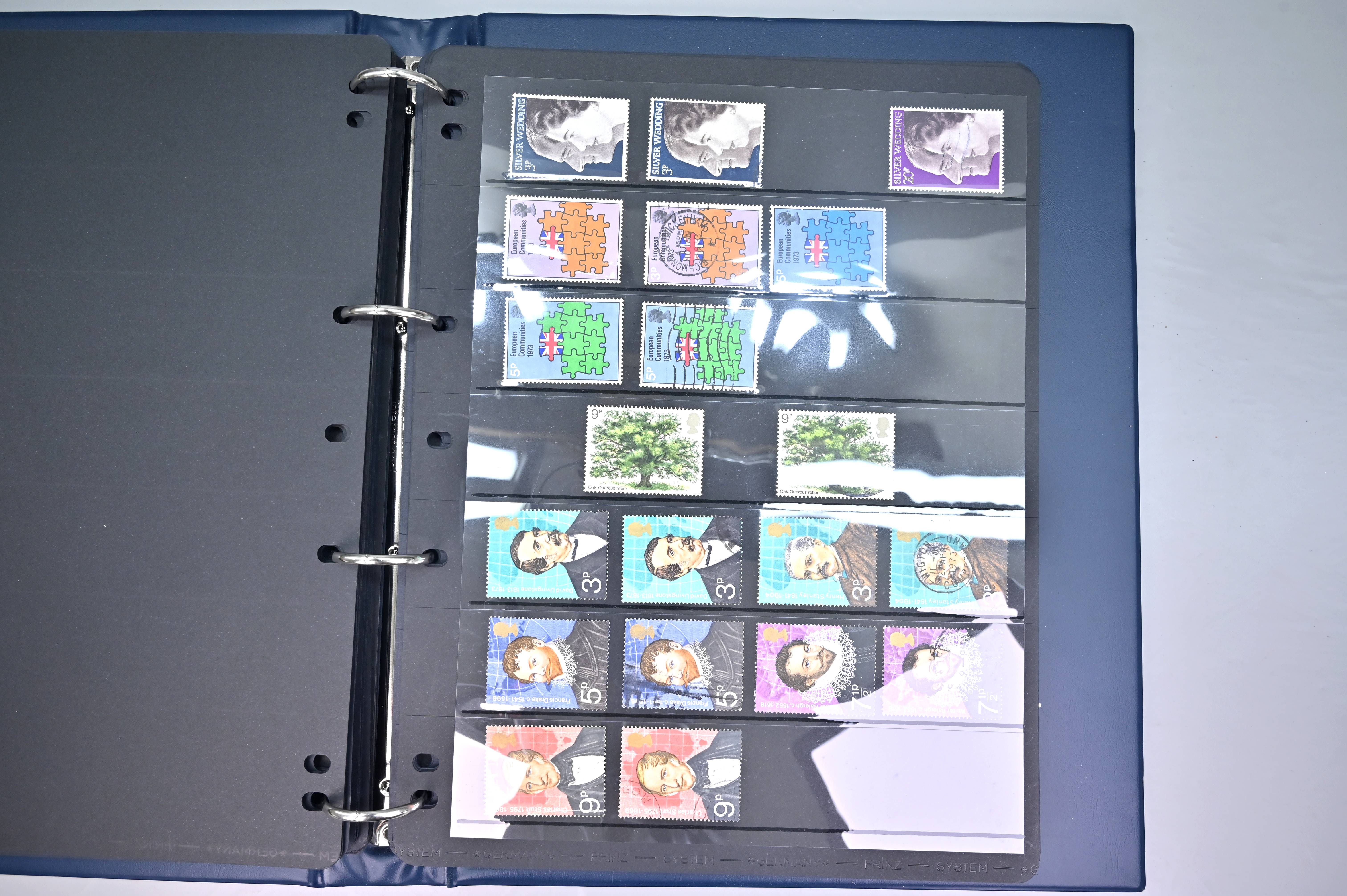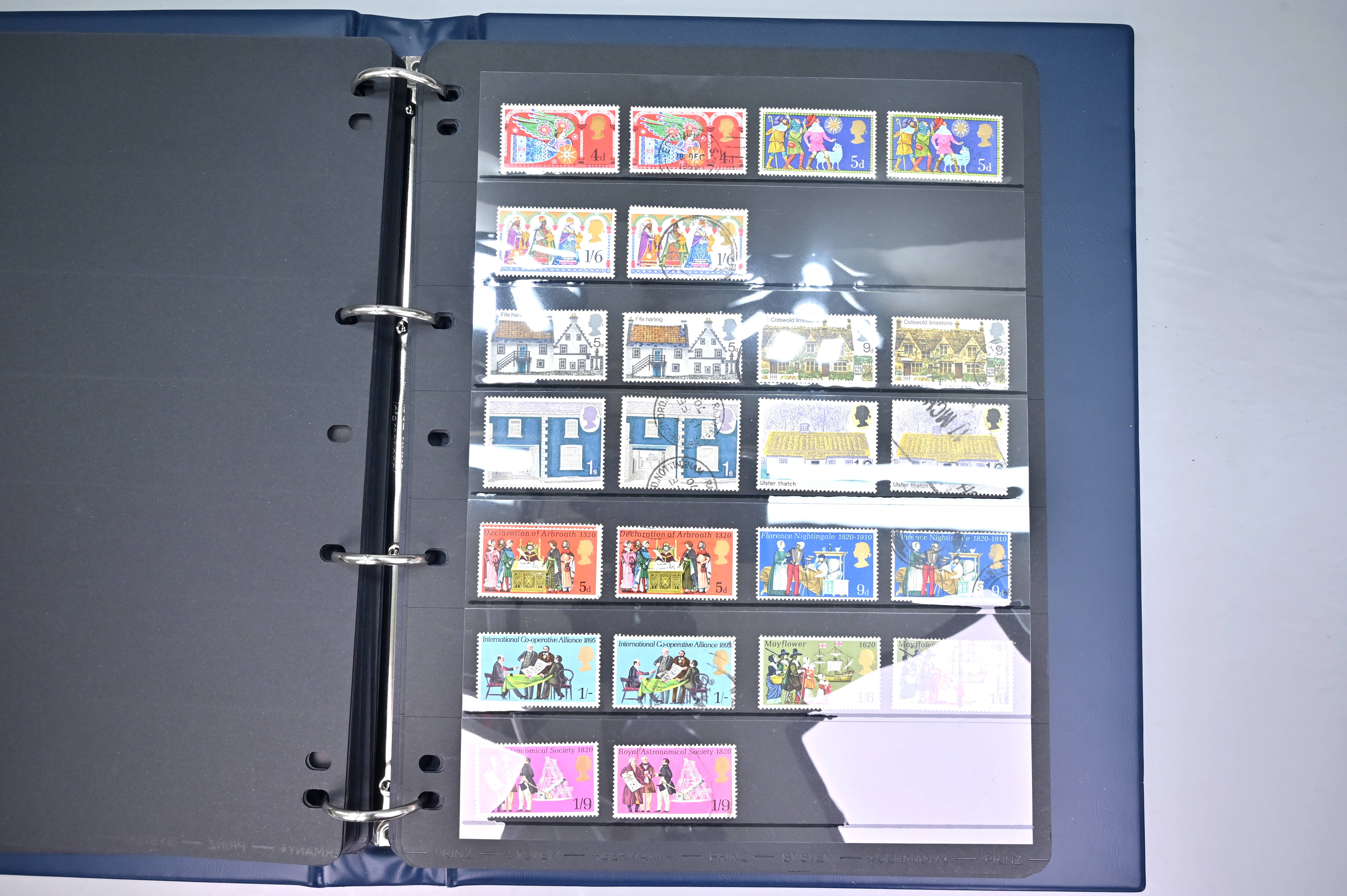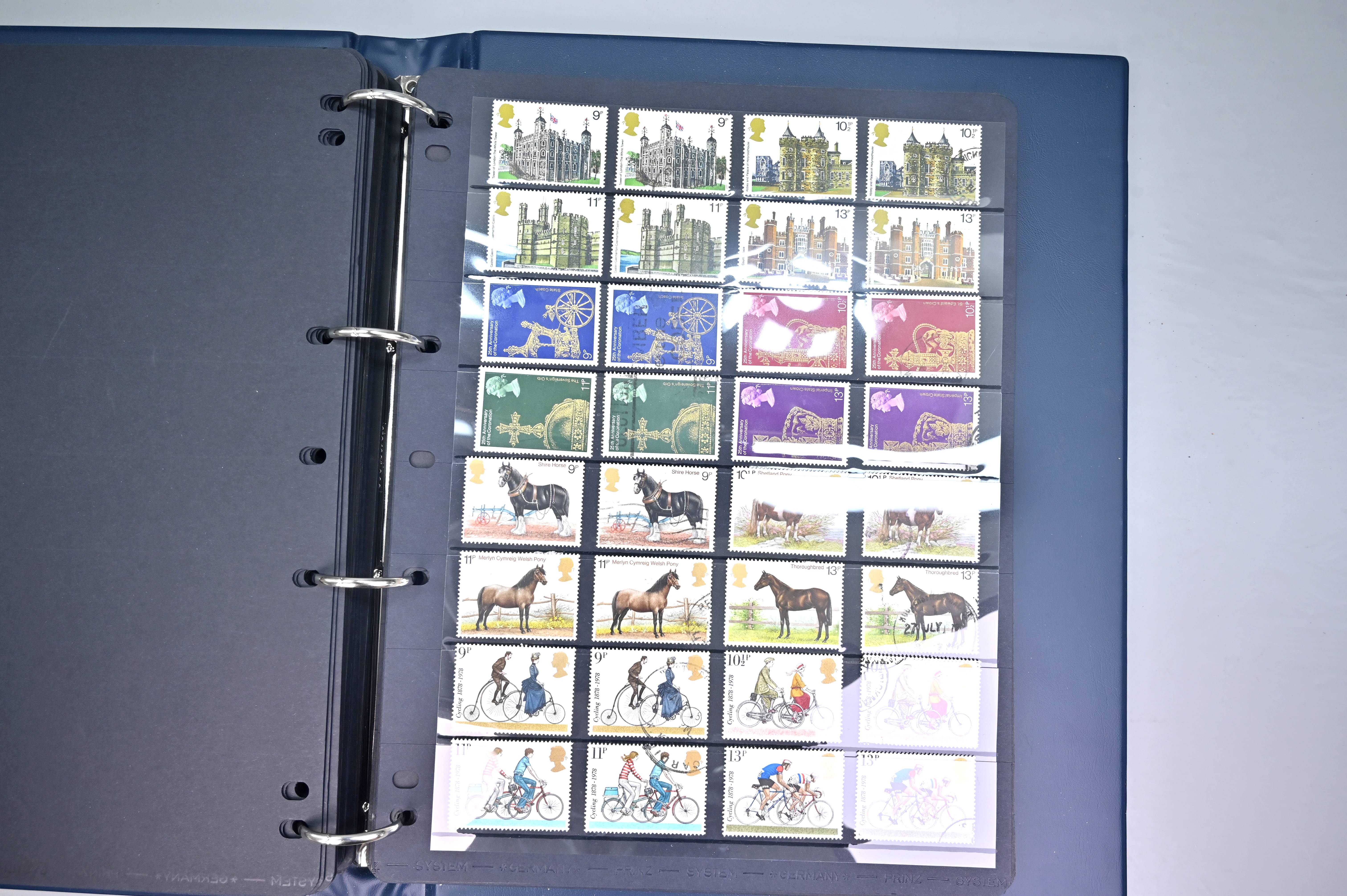Description: Good collection of QEII stamps in folder on hangers. The collection contains mint & uséd examples of most issues, including: Wildings, Booklet Panes, Graphite Lines, Machins, Wilding Castles to £1, Ordinary and Phosphor Issues. The collection also contains a good range of 1970s Commemorative issues including mint face values. Many better items noted, including £ 10 uséd. The collection is in good neat order and unpicked.