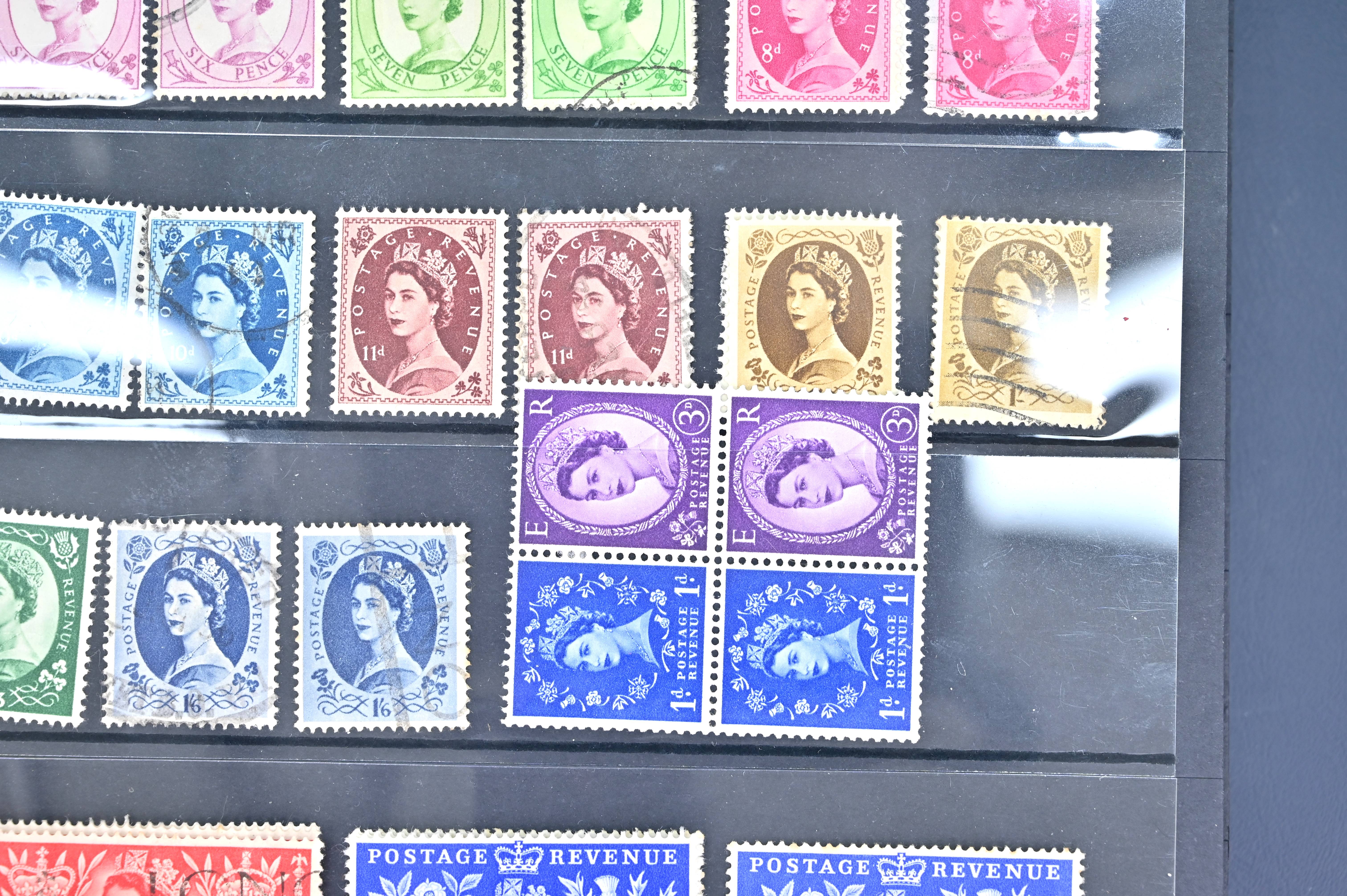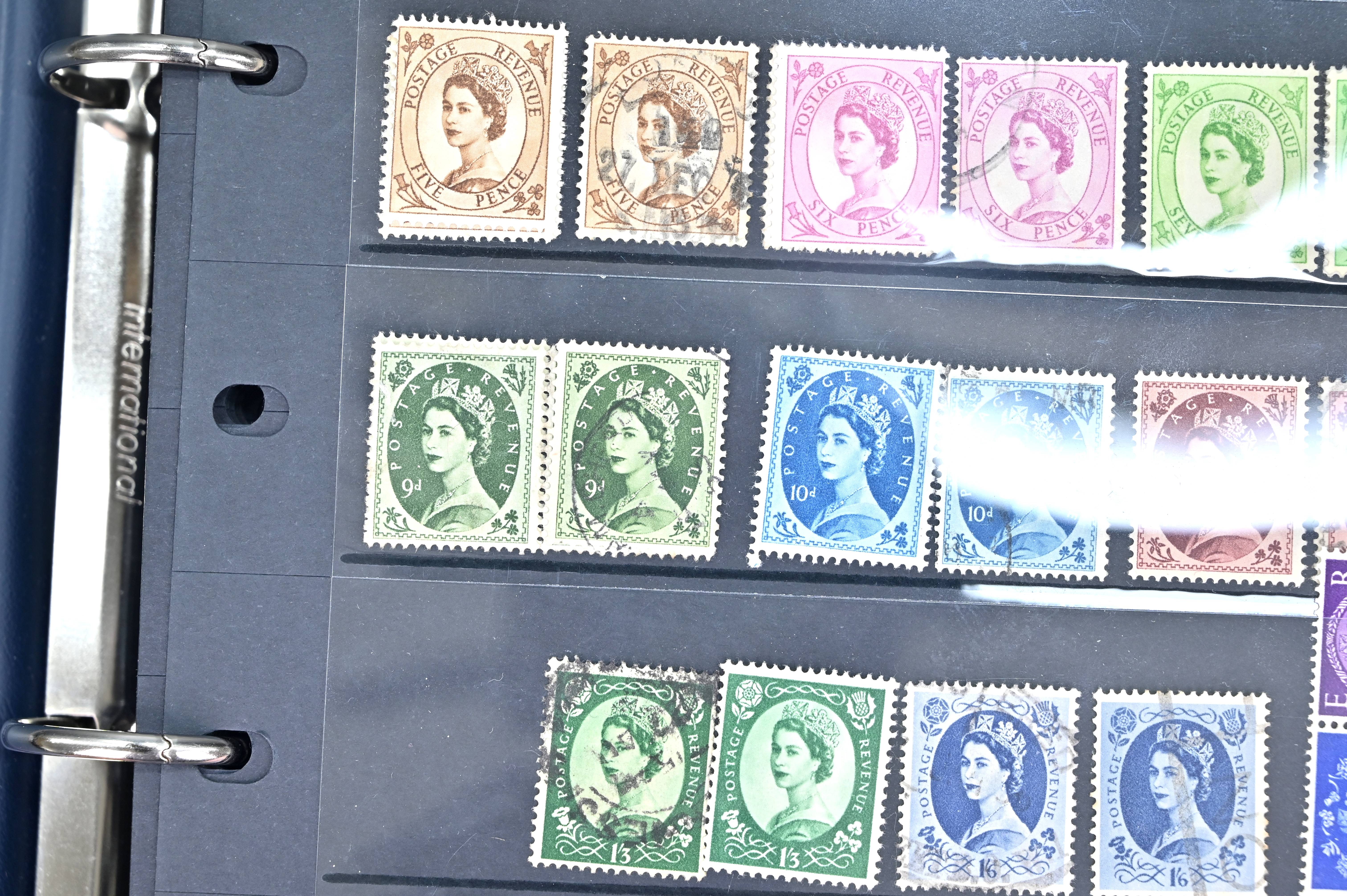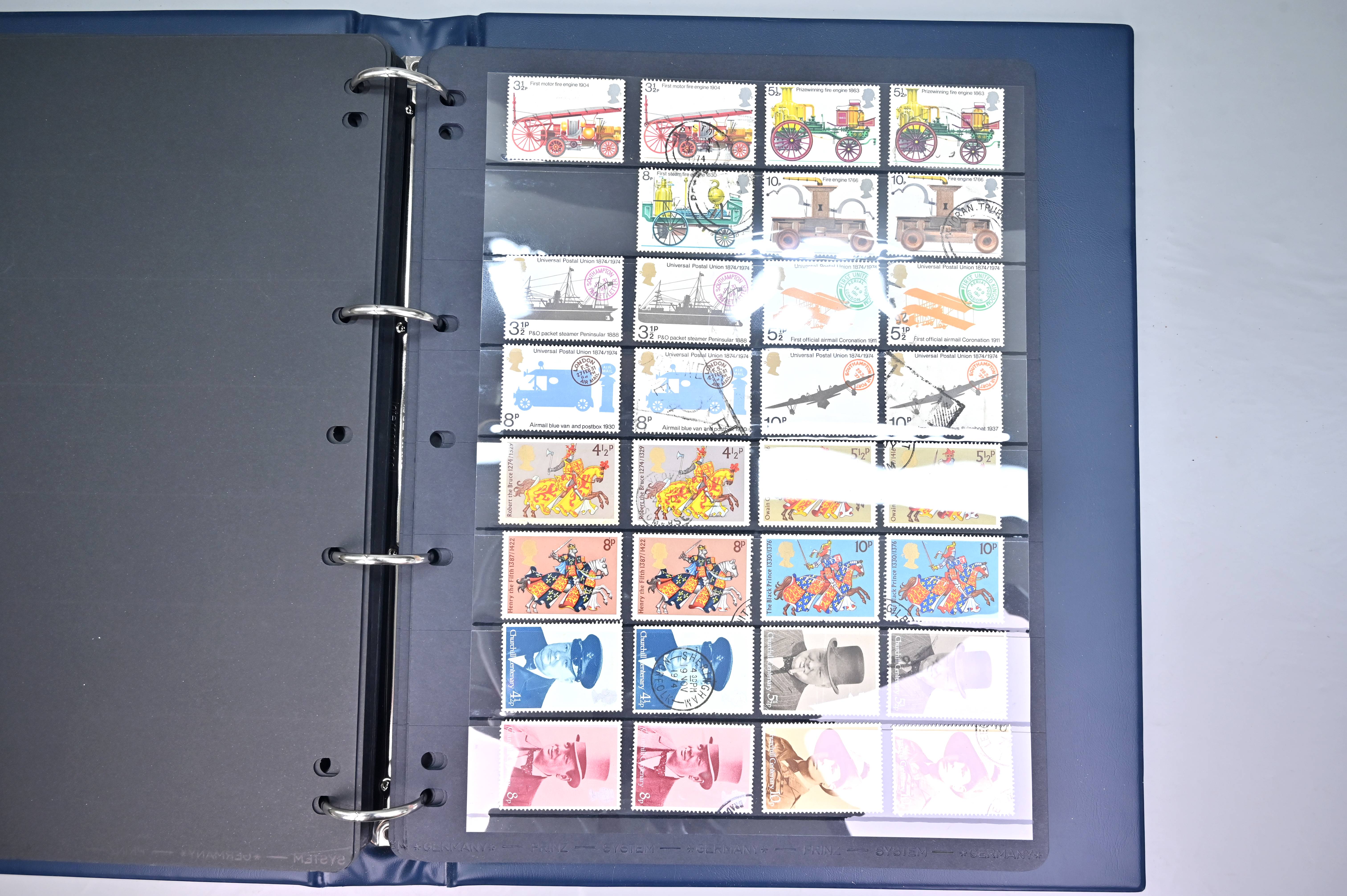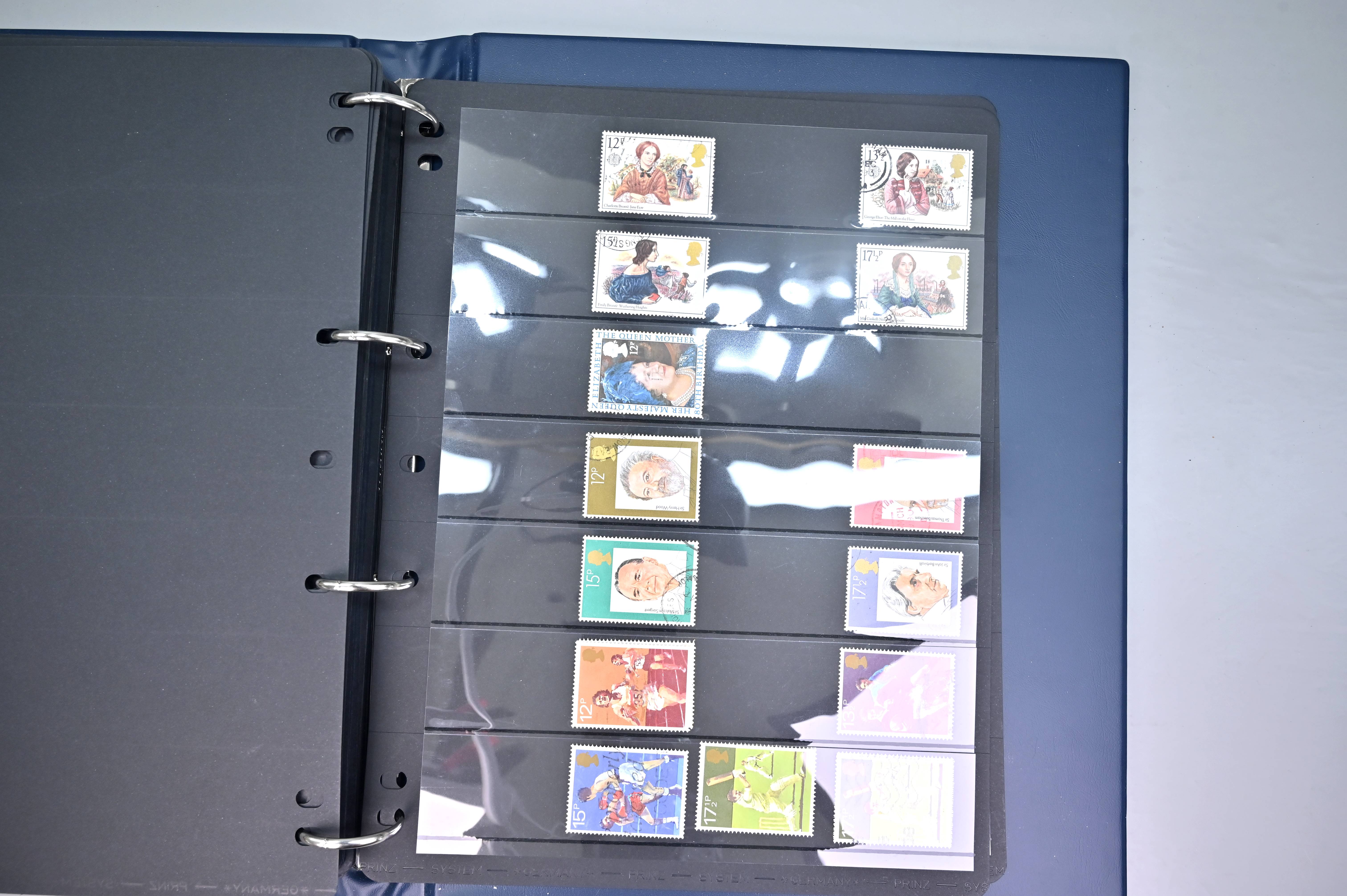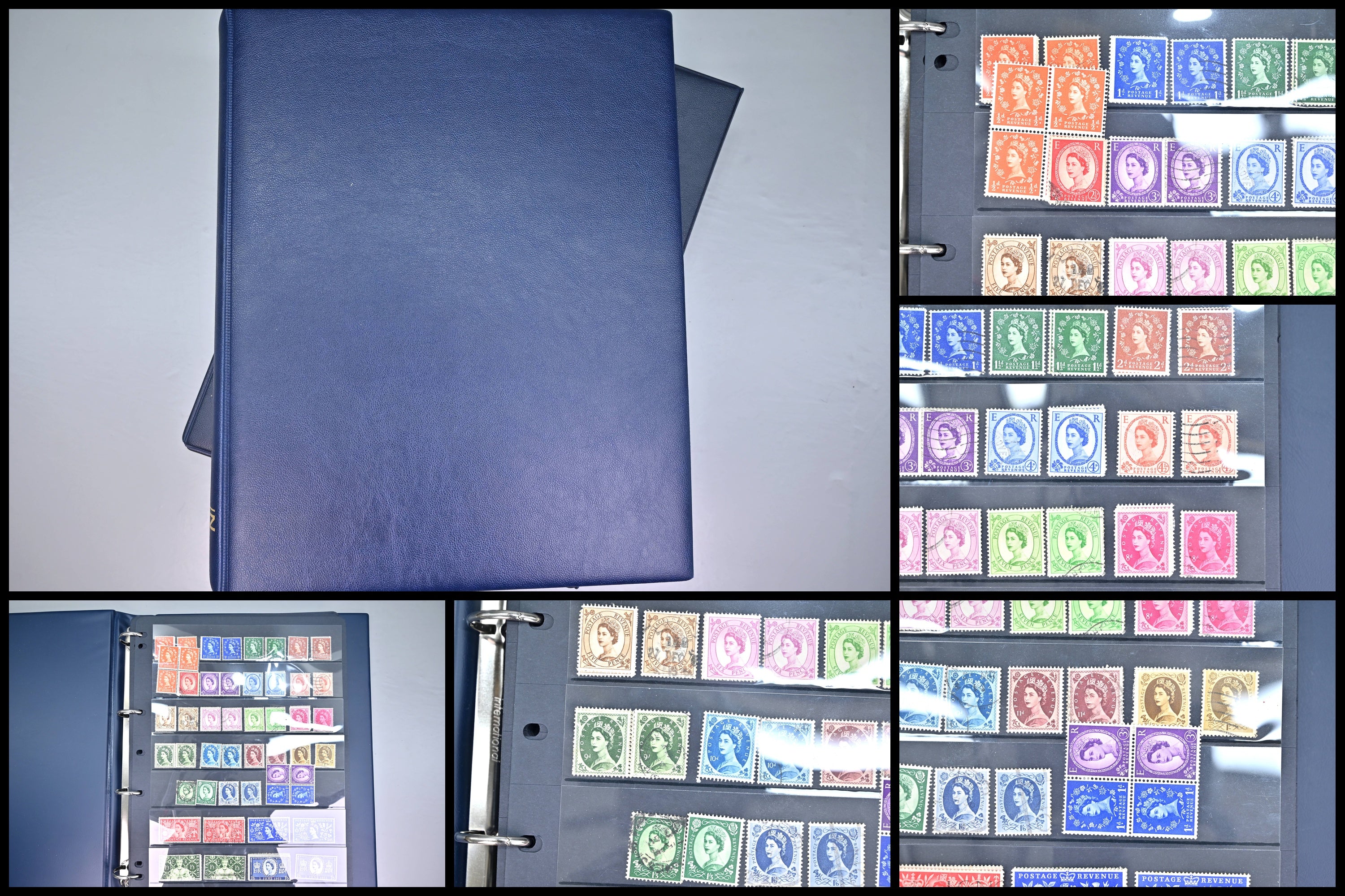 Description: Good collection of QEII stamps in folder on hangers. The collection contains mint & uséd examples of most issues, including: Wildings, Booklet Panes, Graphite Lines, Machins, Wilding Castles to £1, Ordinary and Phosphor Issues. The collection also contains a good range of 1970s Commemorative issues including mint face values. Many better items noted, including £ 10 uséd. The collection is in good neat order and unpicked.
