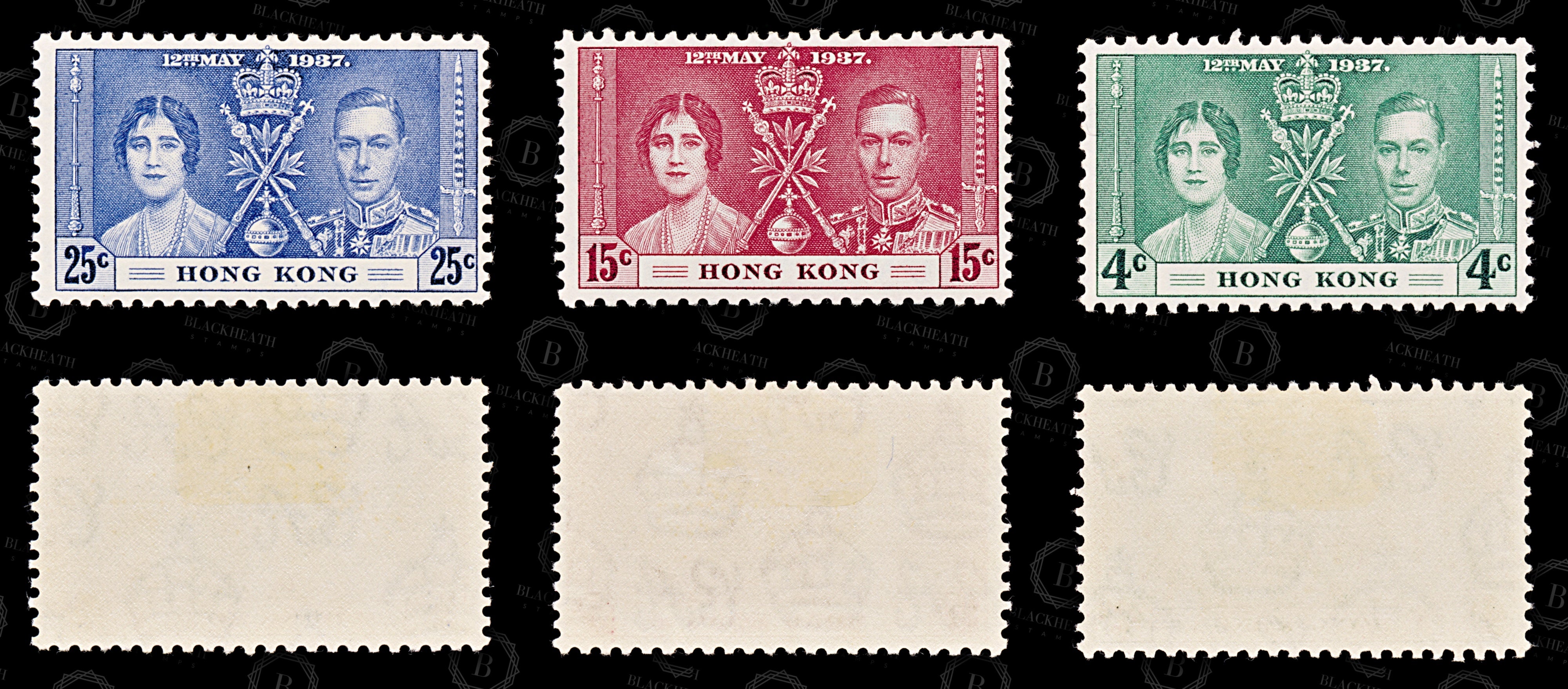 8557: Hong Kong SG137-139 Coronation Set of 3 1937 Sc#151-153 Mi136-138 Mint MLH C£20