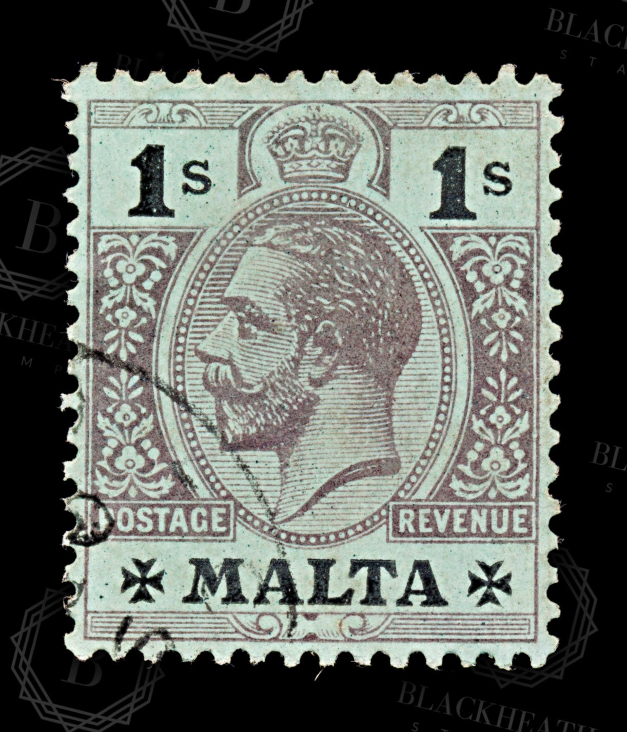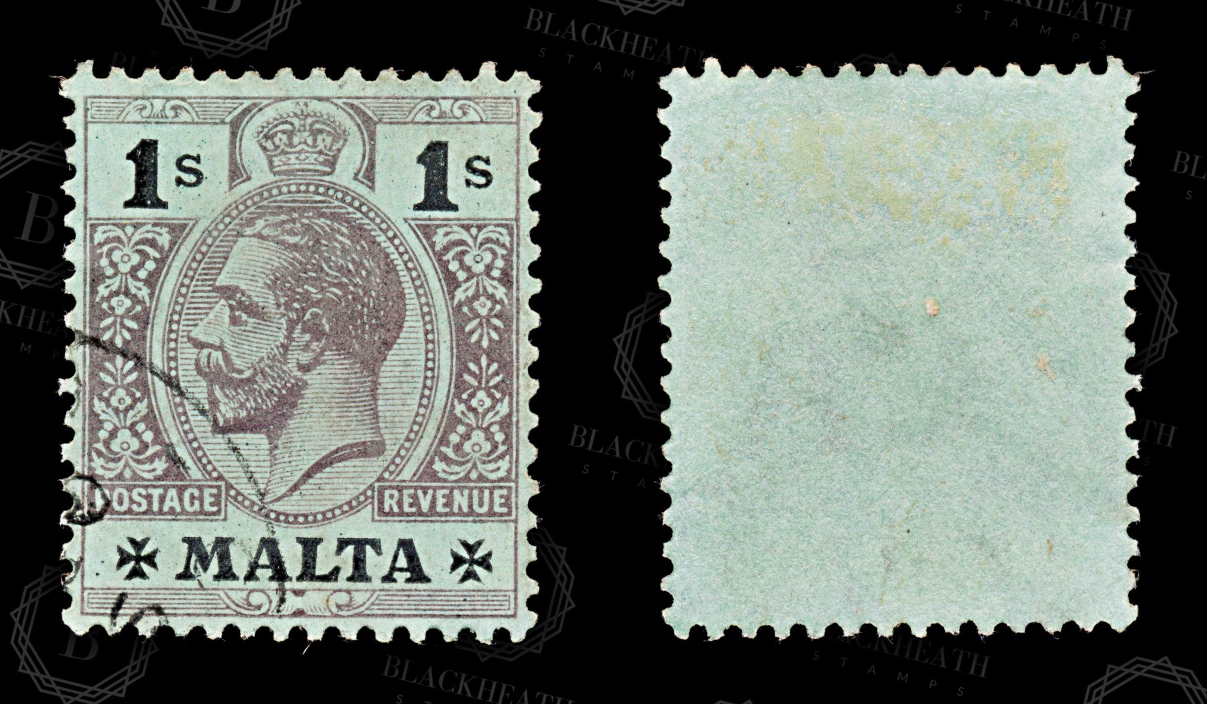 8560: Malta SG81b 1s Black 1918 Sc#59a Mi49y Used C£40