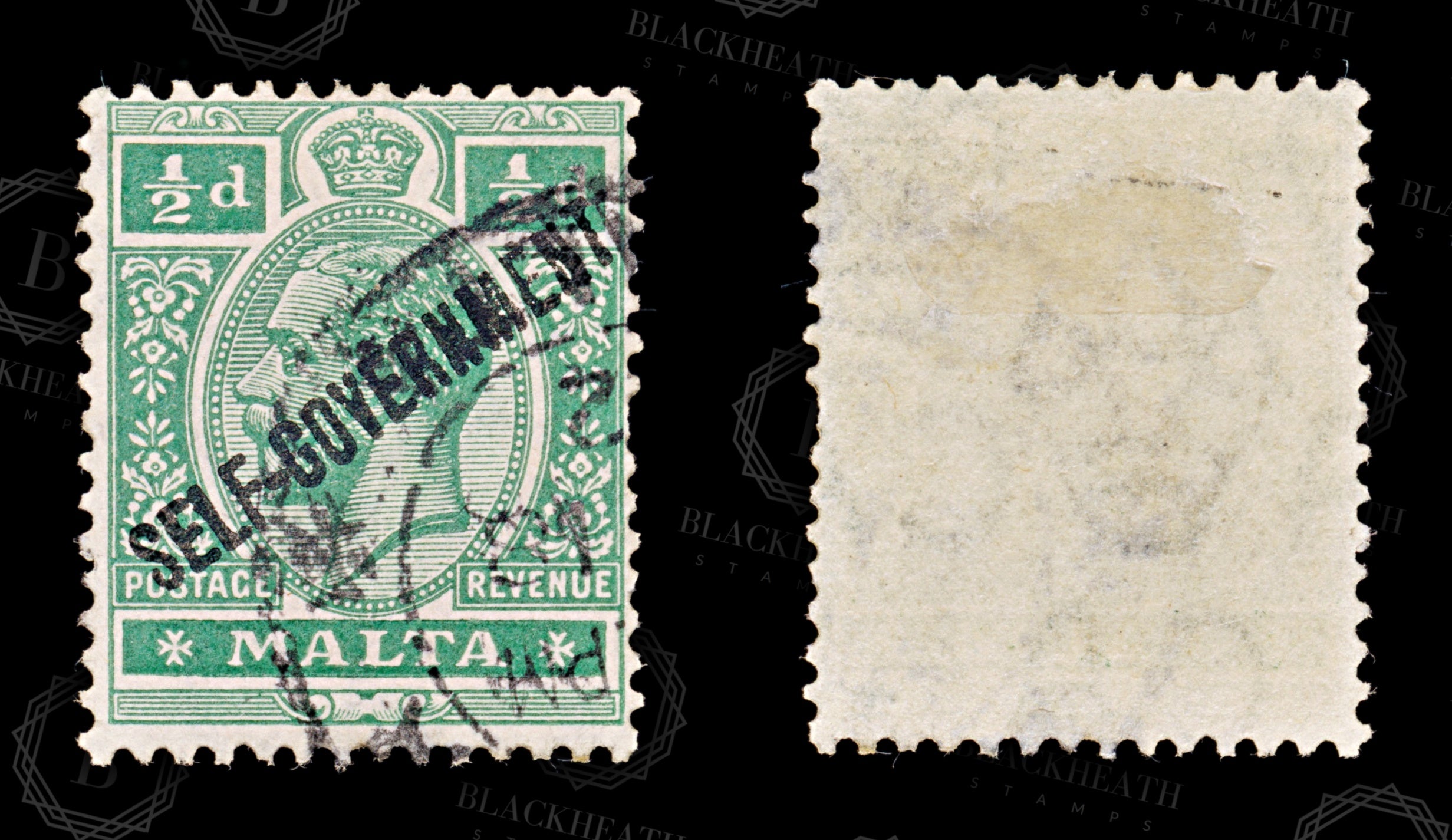 8563: Malta SG115 ½d Green 1922 Sc#87 Mi66 Uséd C£16