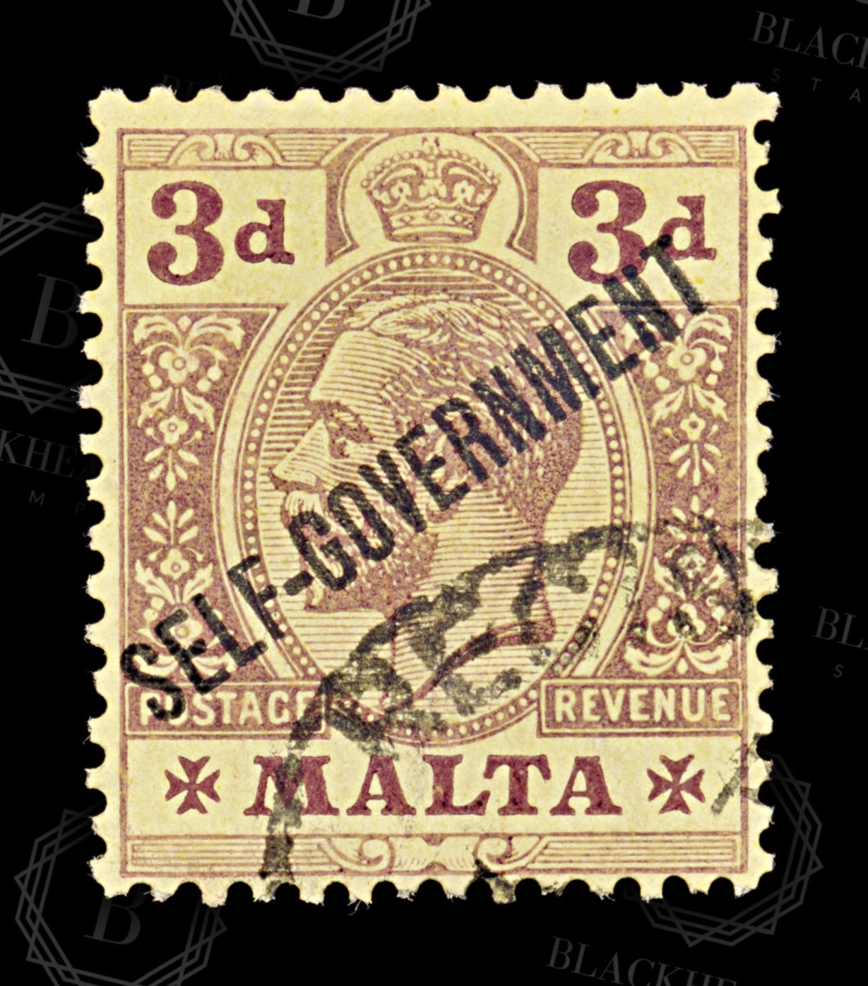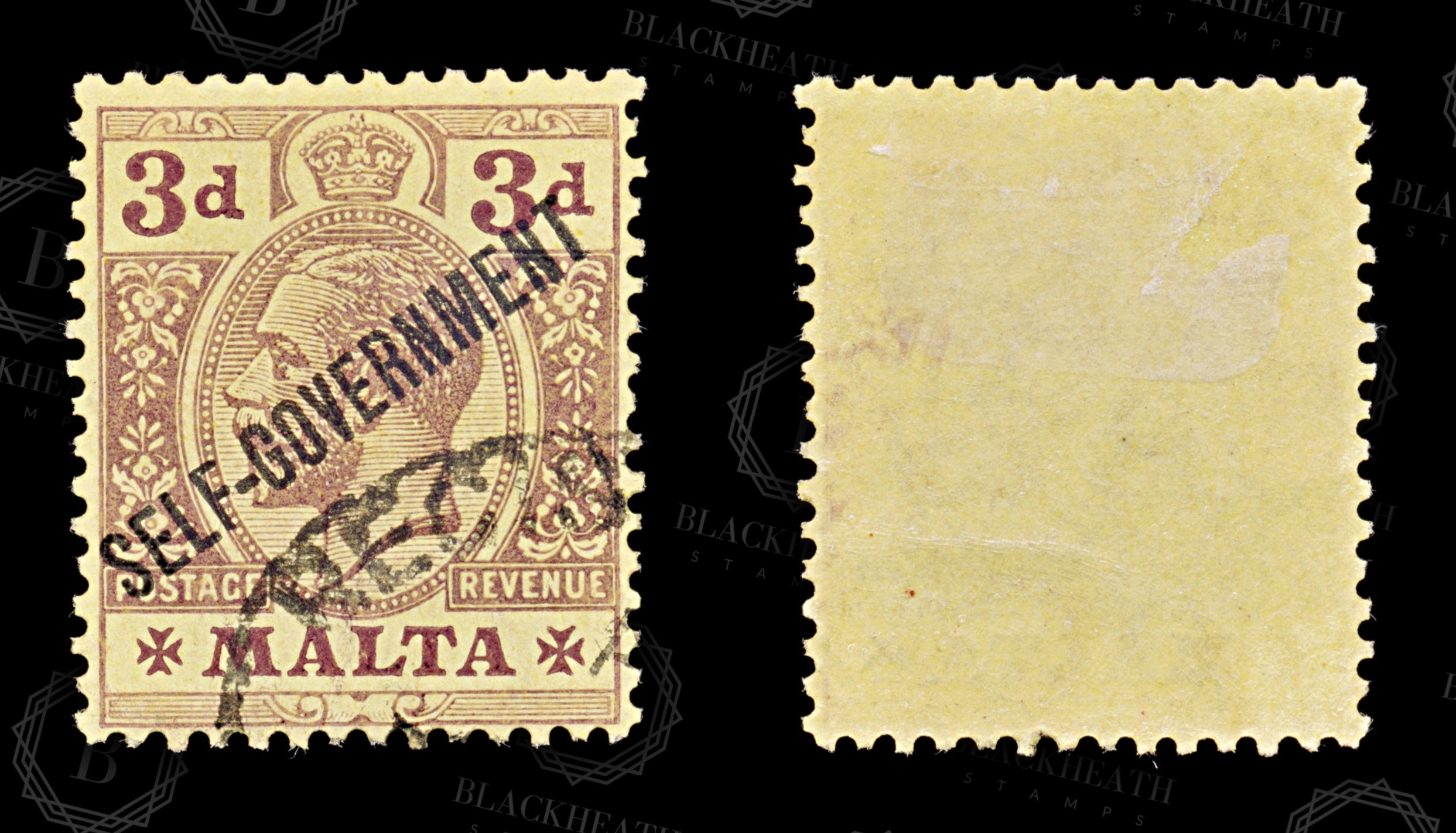 8564: Malta SG108 3d Purple 1922 Sc#79 Mi71 Uséd C£28
