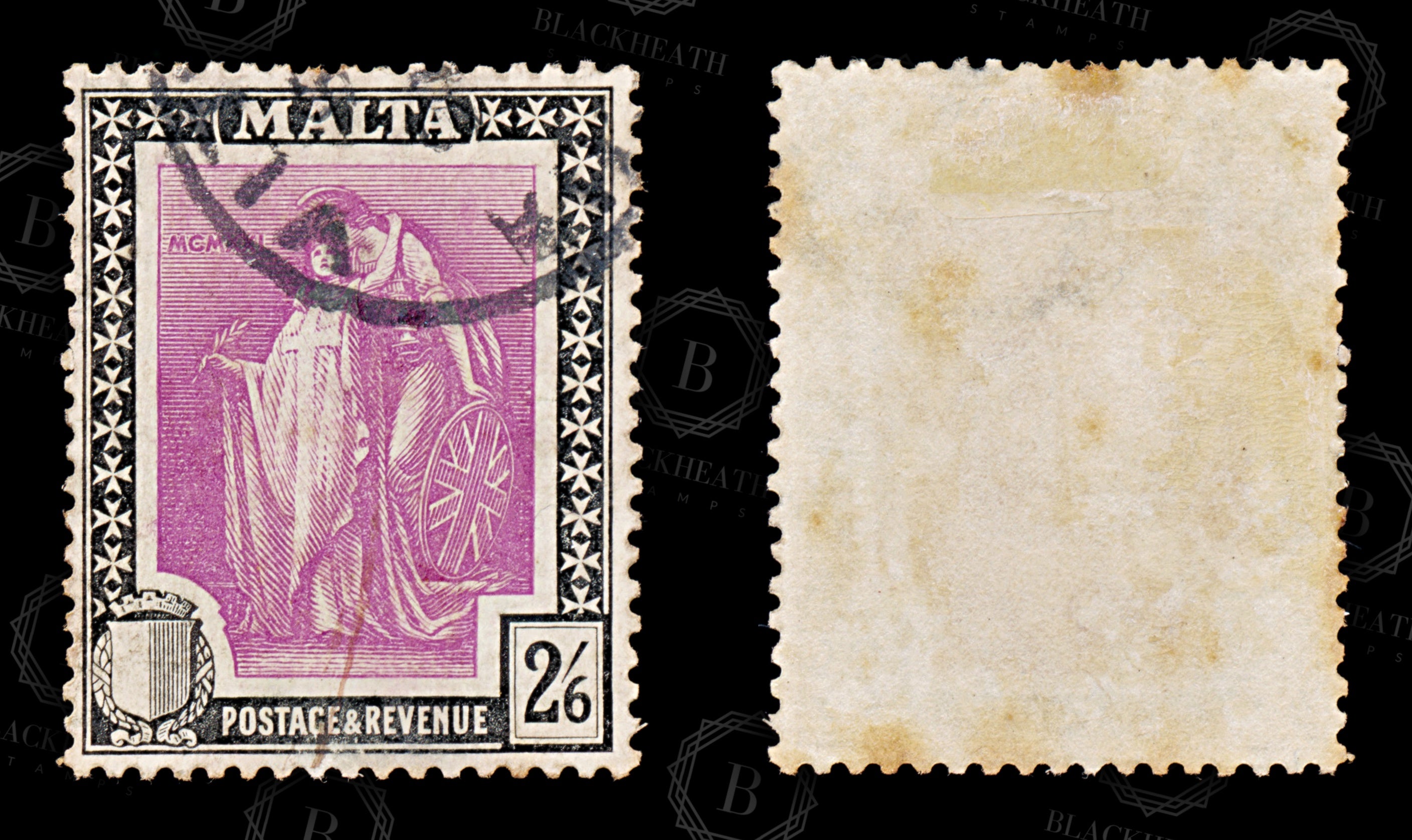 8567: Malta SG136 2'6s Black & Bright magenta 1922 Sc#111 Mi93 Used C£15