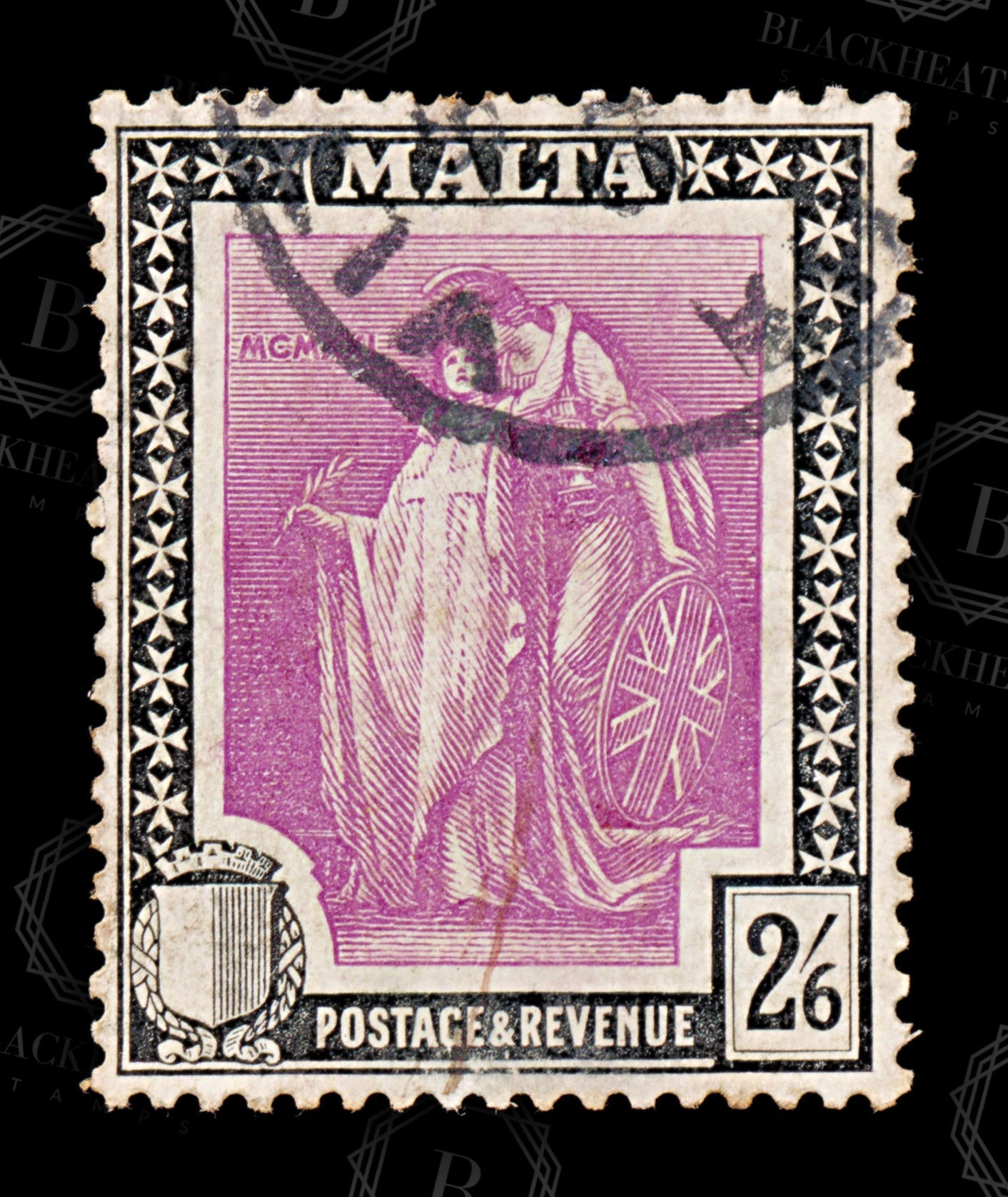 8567: Malta SG136 2'6s Black & Bright magenta 1922 Sc#111 Mi93 Uséd C£15