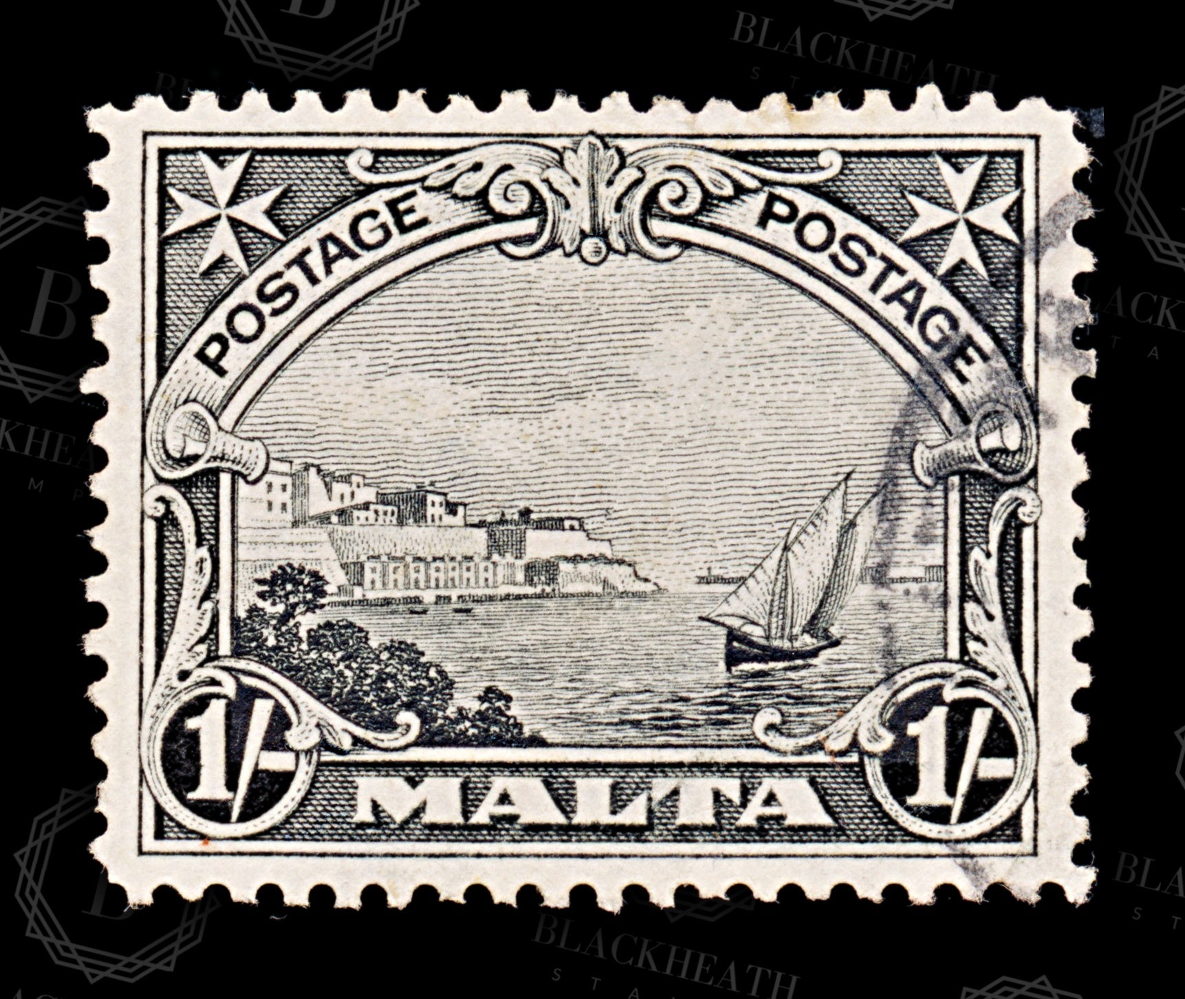 8574: Malta SG166 1s Black 1926 Sc#141 Mi125 Used C£14