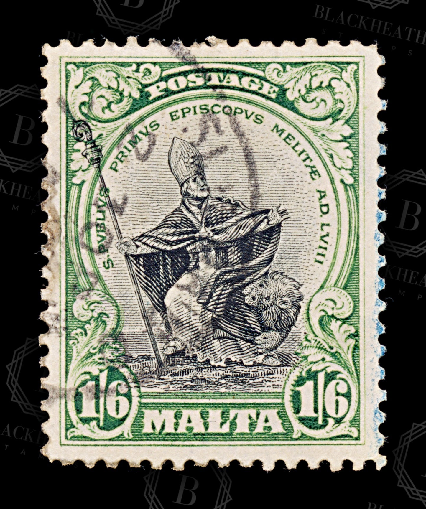 8575: Malta SG167 1'6s Green & Black 1926 Sc#142 Mi126 Used C£24