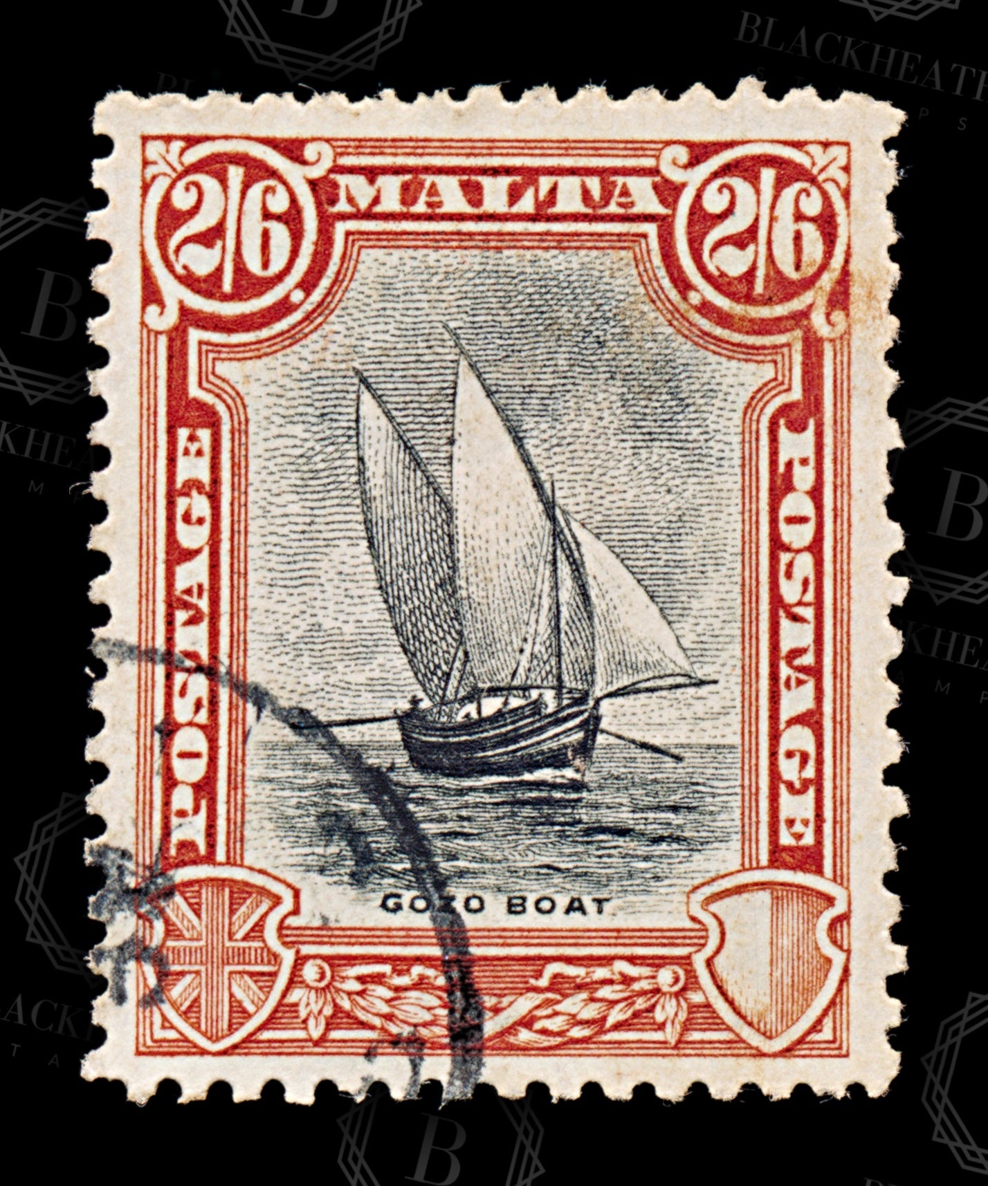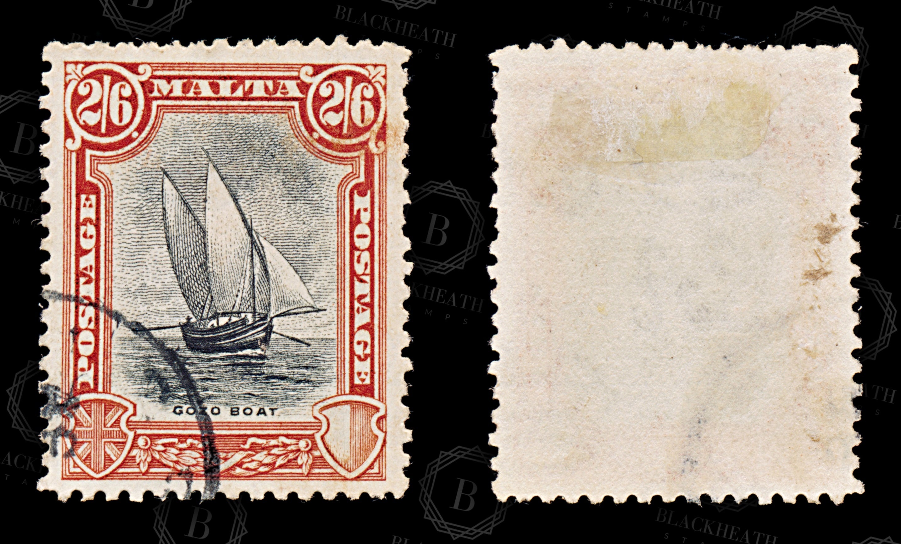 8576: Malta SG169 2'6s Black & Vermilion 1926 Sc#144 Mi128 Used C£55