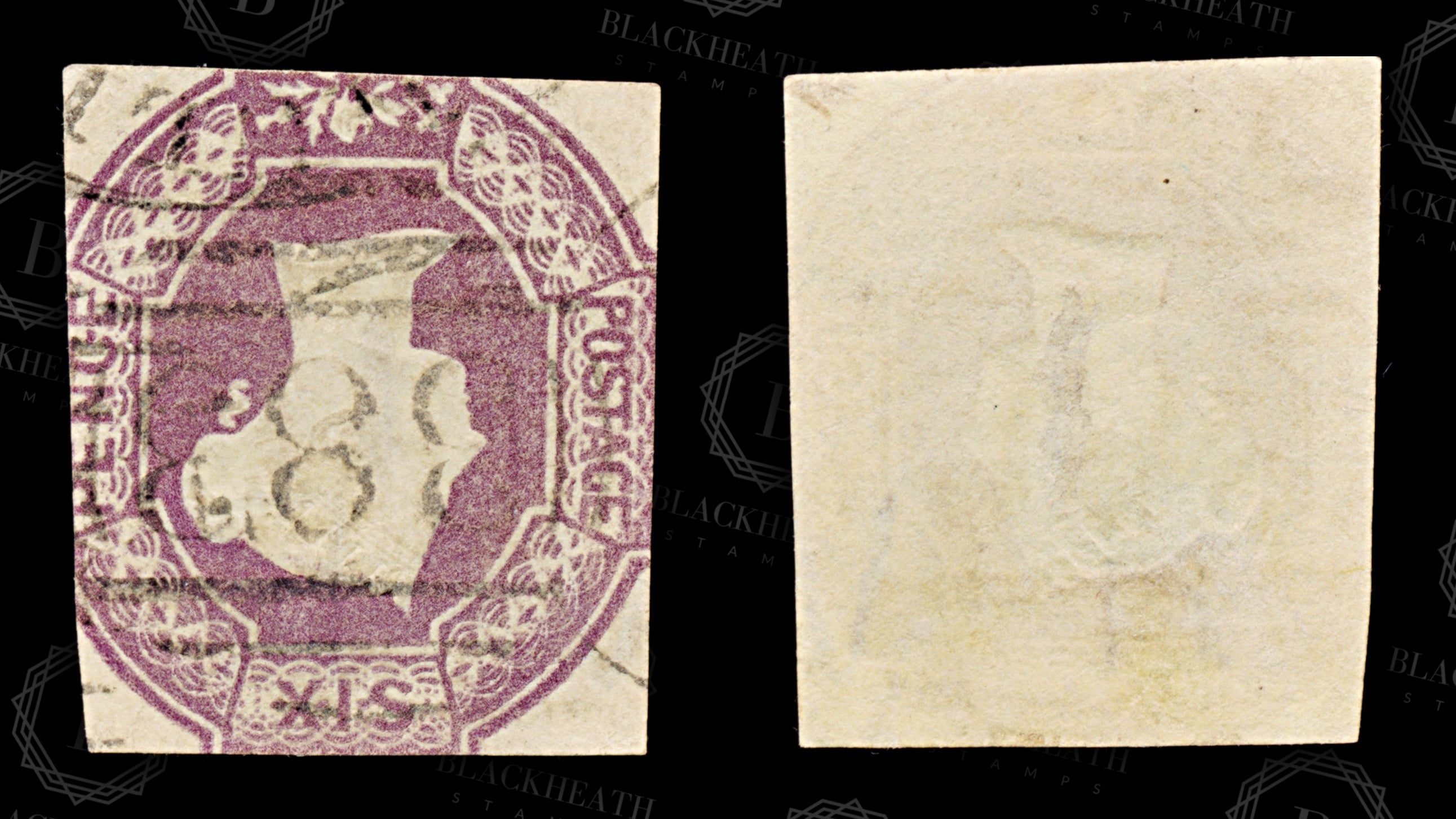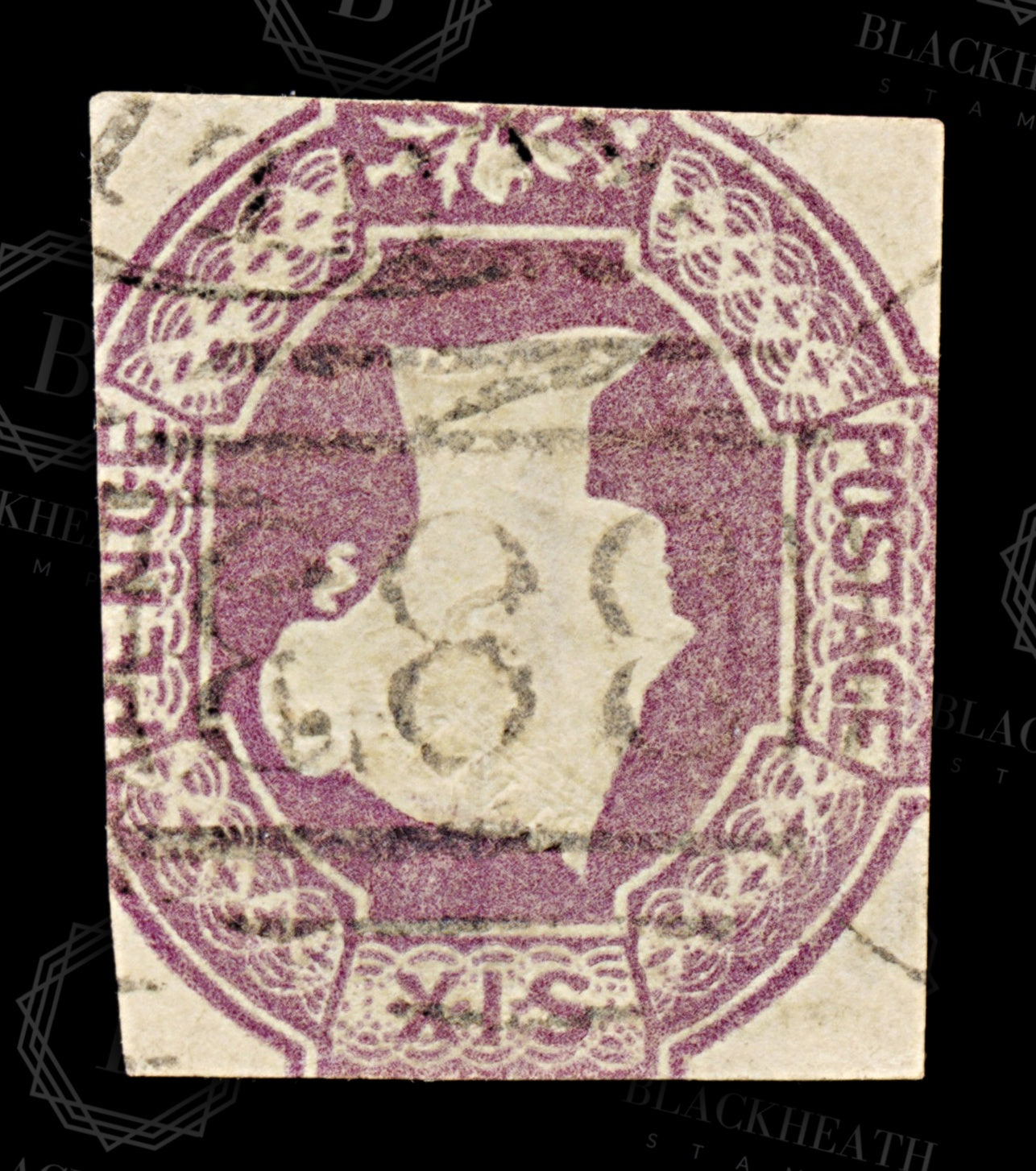 8599: GB SG58 6d Mauve. Wmk Inv. Rev. H3f. 1854 Sc#7c Mi5d Uséd C£1000