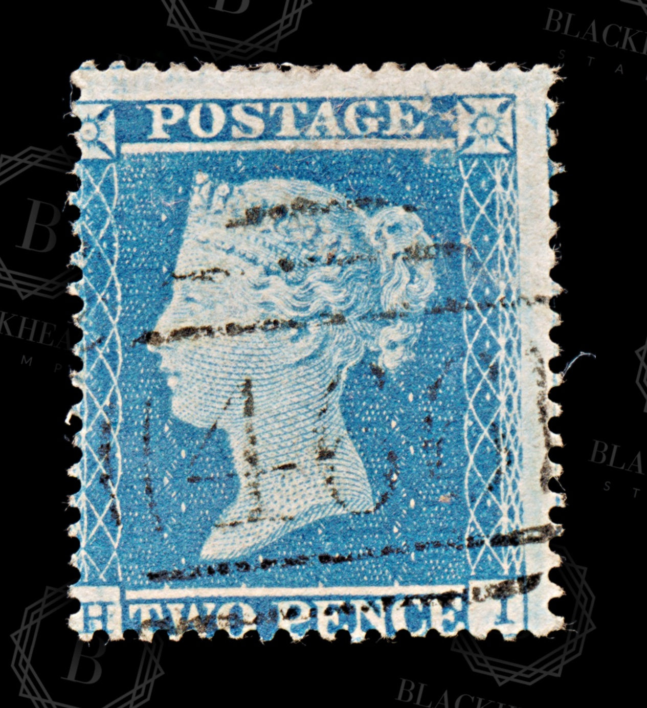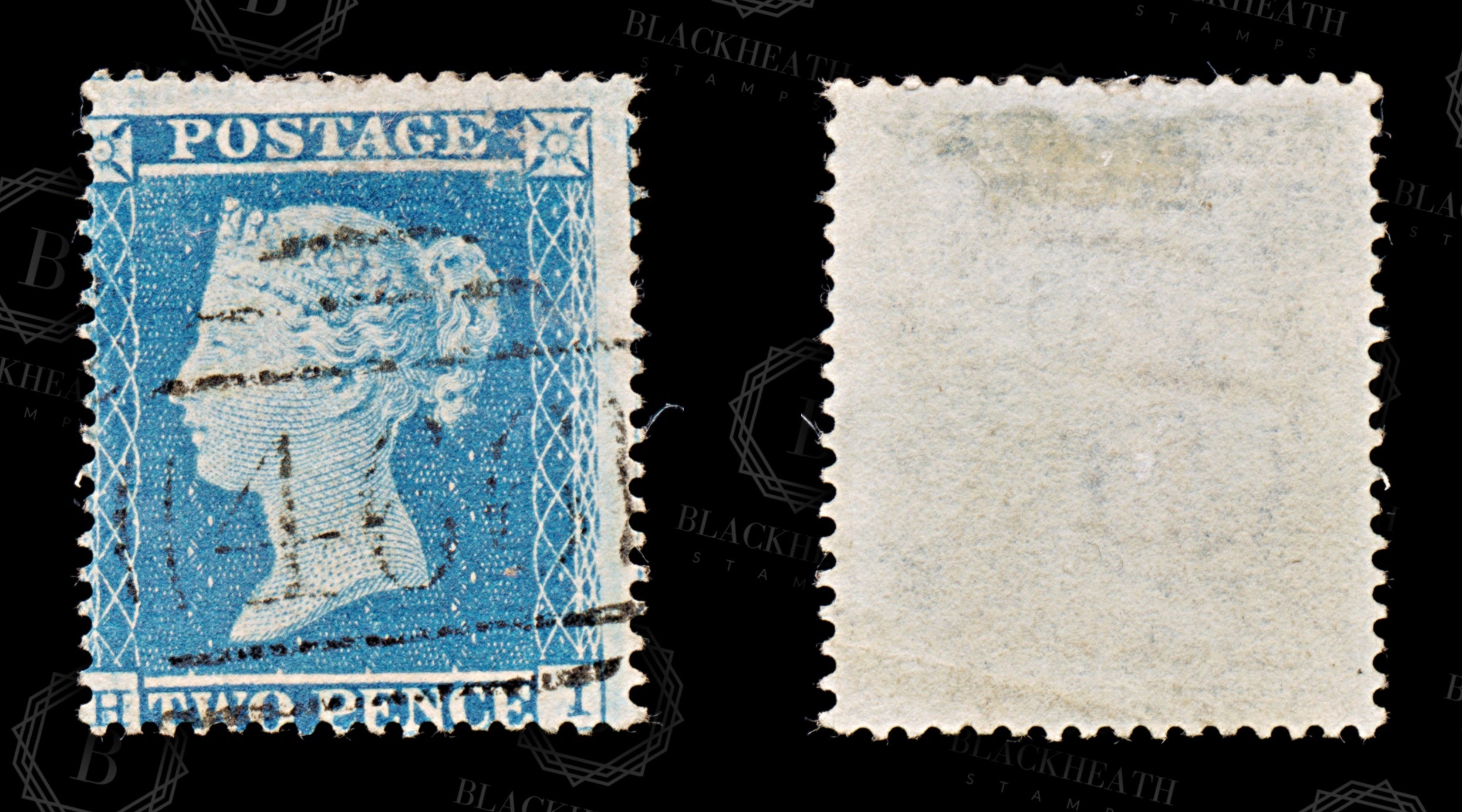 8605: GB SG19 2d Blue "HI" Pl. 4 1854 Sc#13 Mi9IAa Uséd C£100