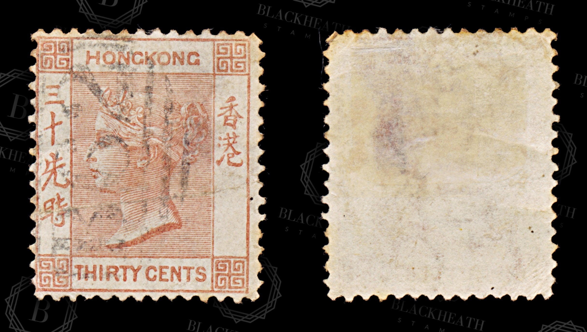 8637: Hong Kong SG15a 30c Orange red 1865 Mi14b Uséd C£17
