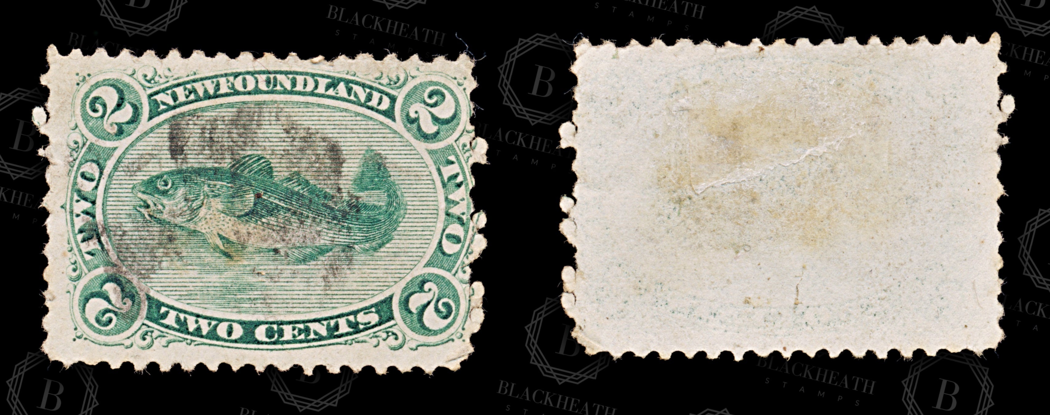 8639: Newfoundland SG31 2c Bluish green 1870 Sc#24 Mi16y Used C£50