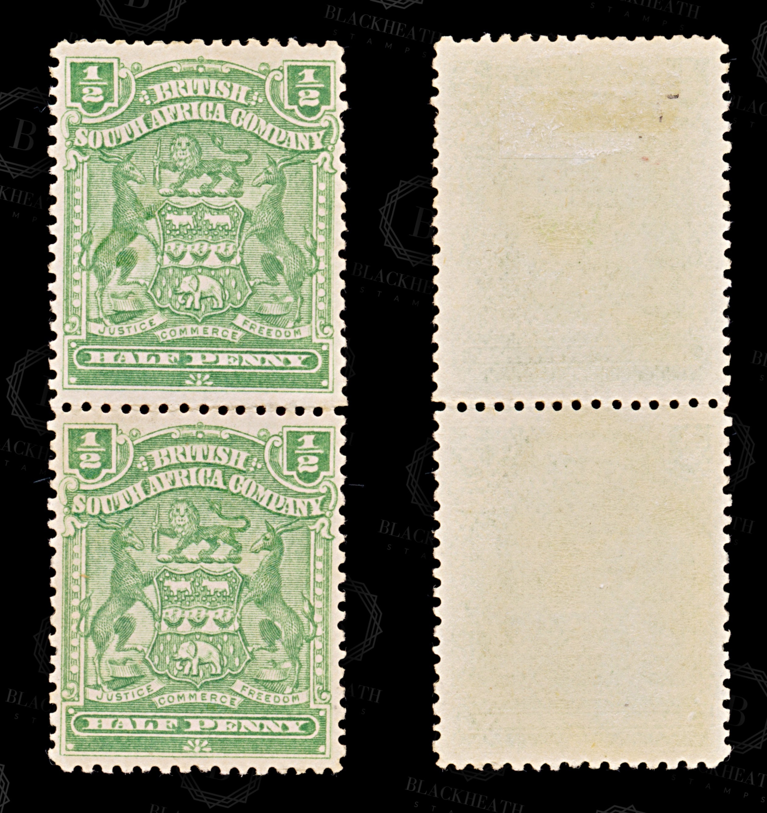 8642: South Africa Company SG75 ½d Green Vert. Pair 1898 Sc#59 Mi58 Mint MLH C£36