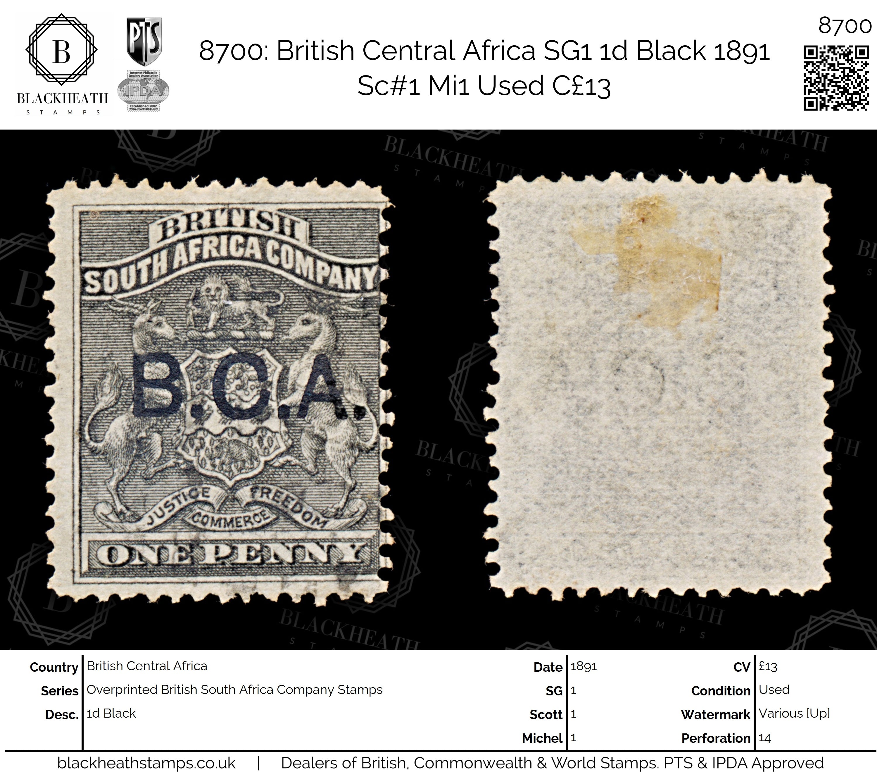 8700: British Central Africa SG1 1d Black 1891 Sc#1 Mi1 Uséd C£13