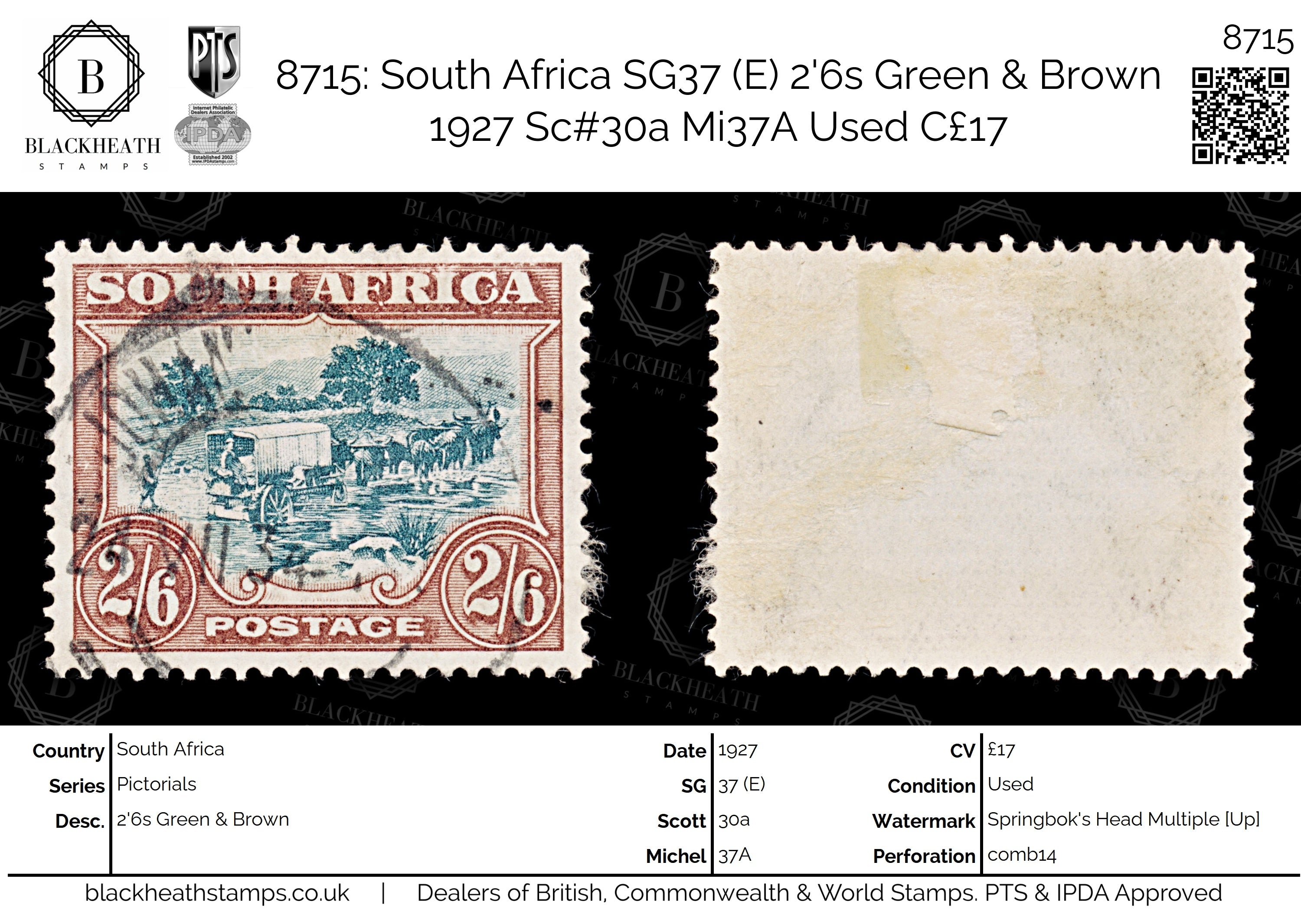 8715: South Africa SG37 (E) 2'6s Green & Brown 1927 Sc#30a Mi37A Used C£17