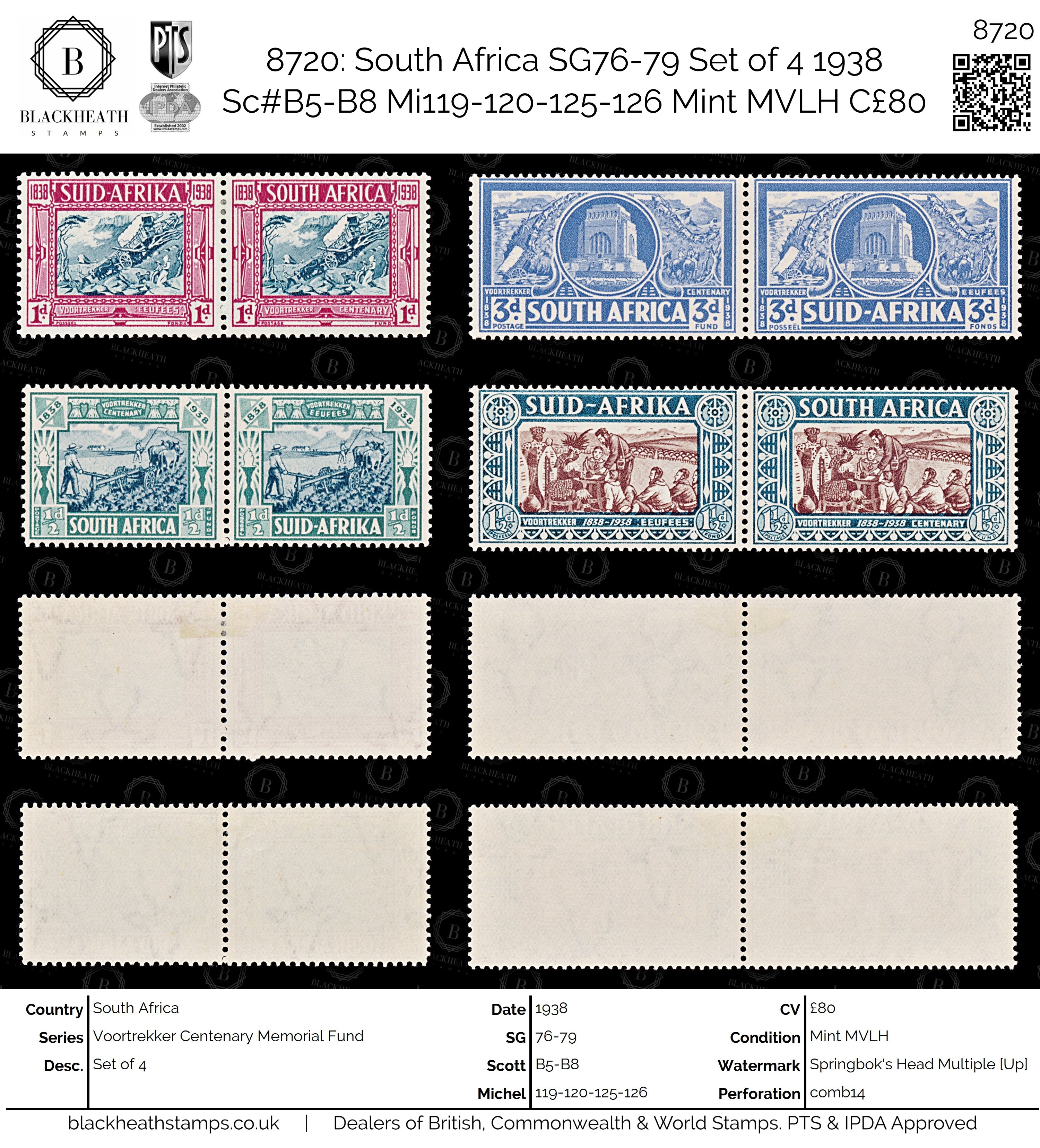 8720: South Africa SG76-79 Set of 4 1938 Sc#B5-B8 Mi119-120-125-126 Mint MVLH C£80