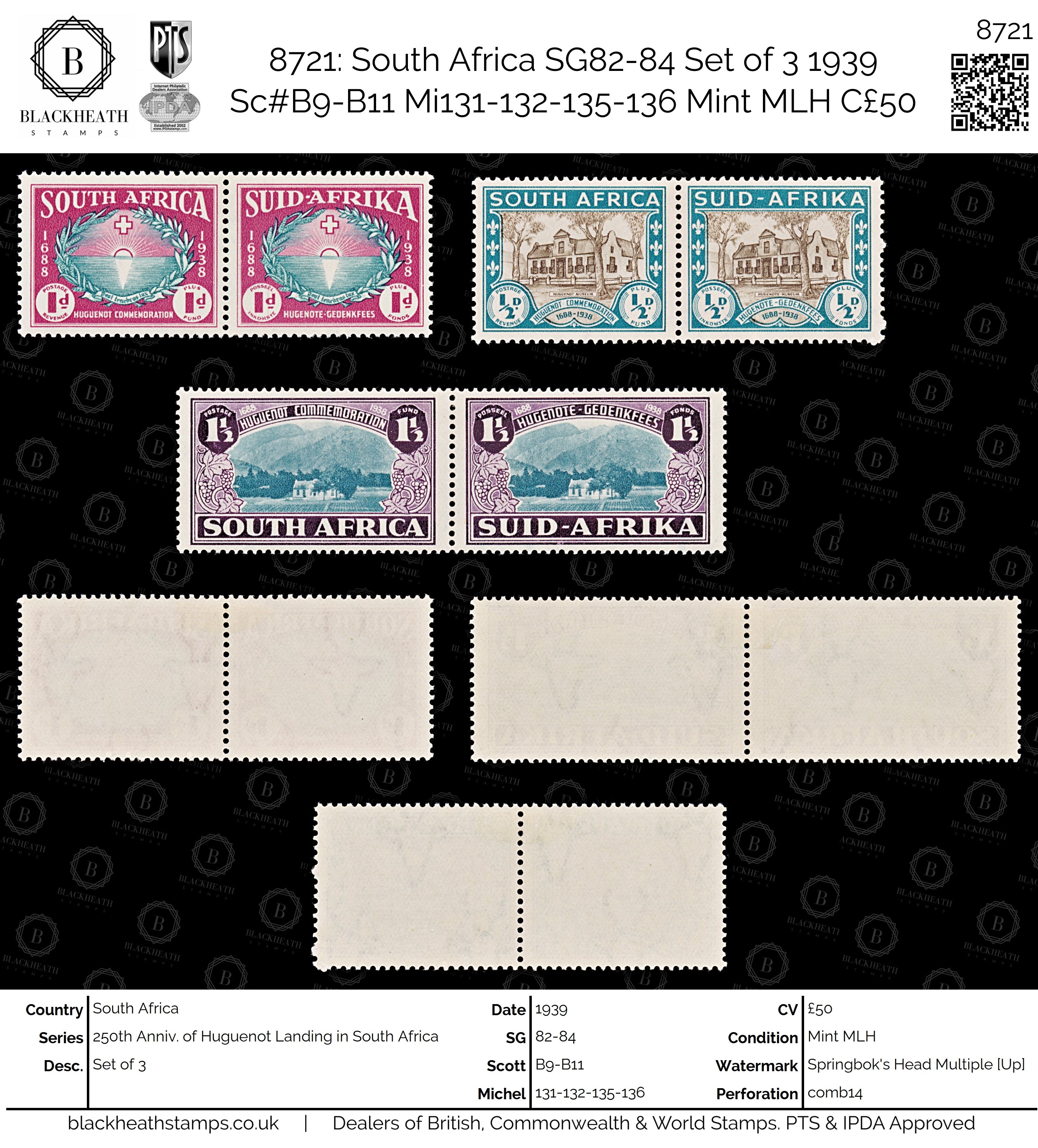 8721: South Africa SG82-84 Set of 3 1939 Sc#B9-B11 Mi131-132-135-136 Mint MLH C£50