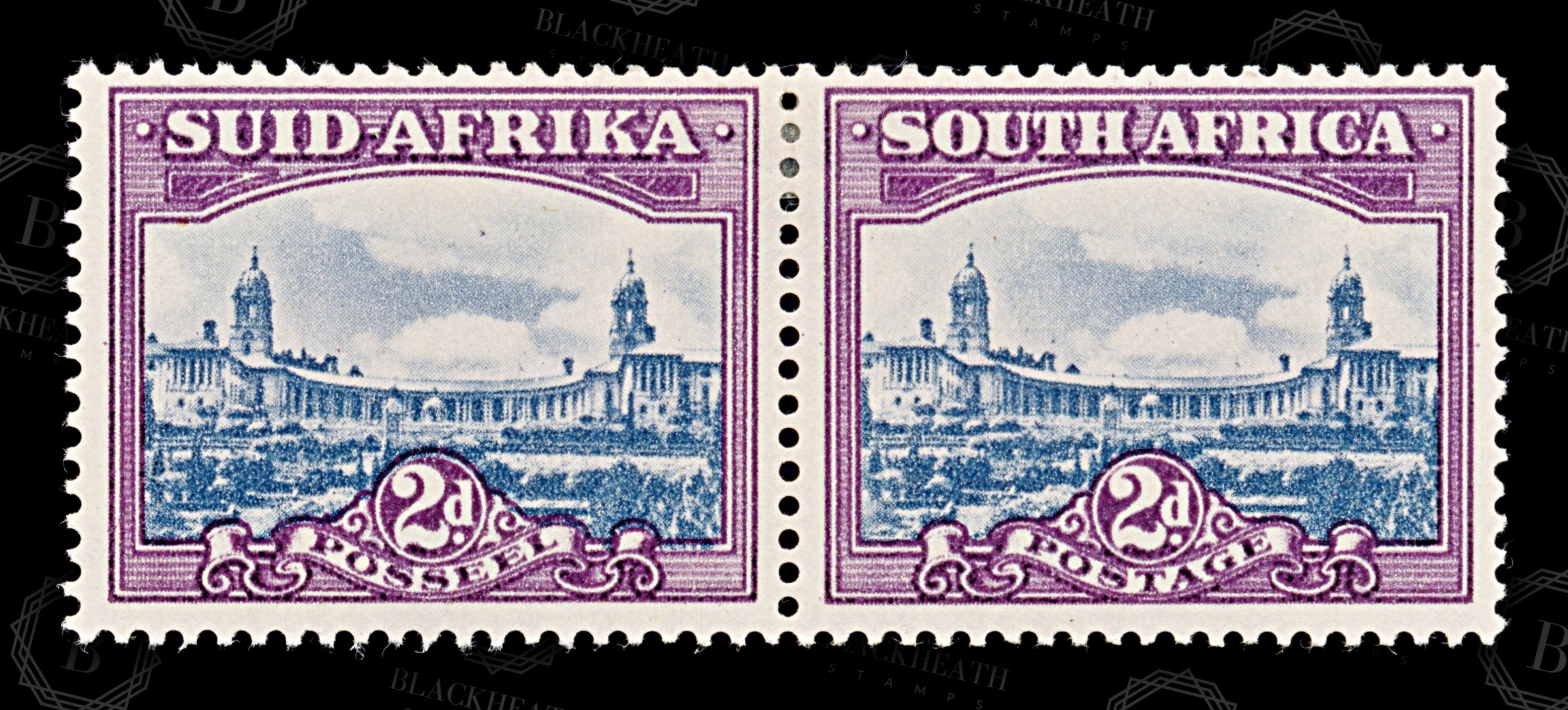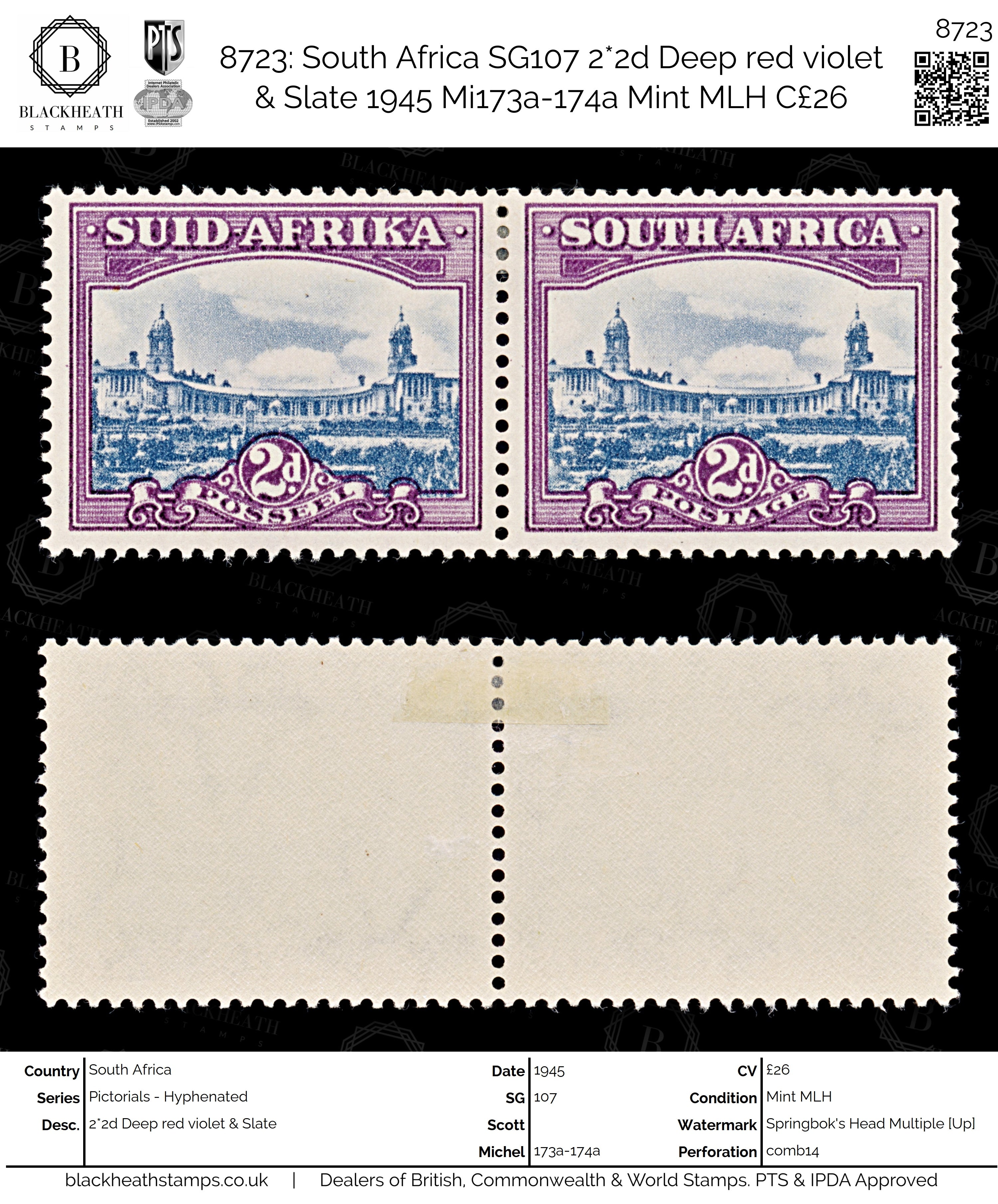 8723: South Africa SG107 2*2d Deep red violet & Slate 1945 Mi173a-174a Mint MLH C£26