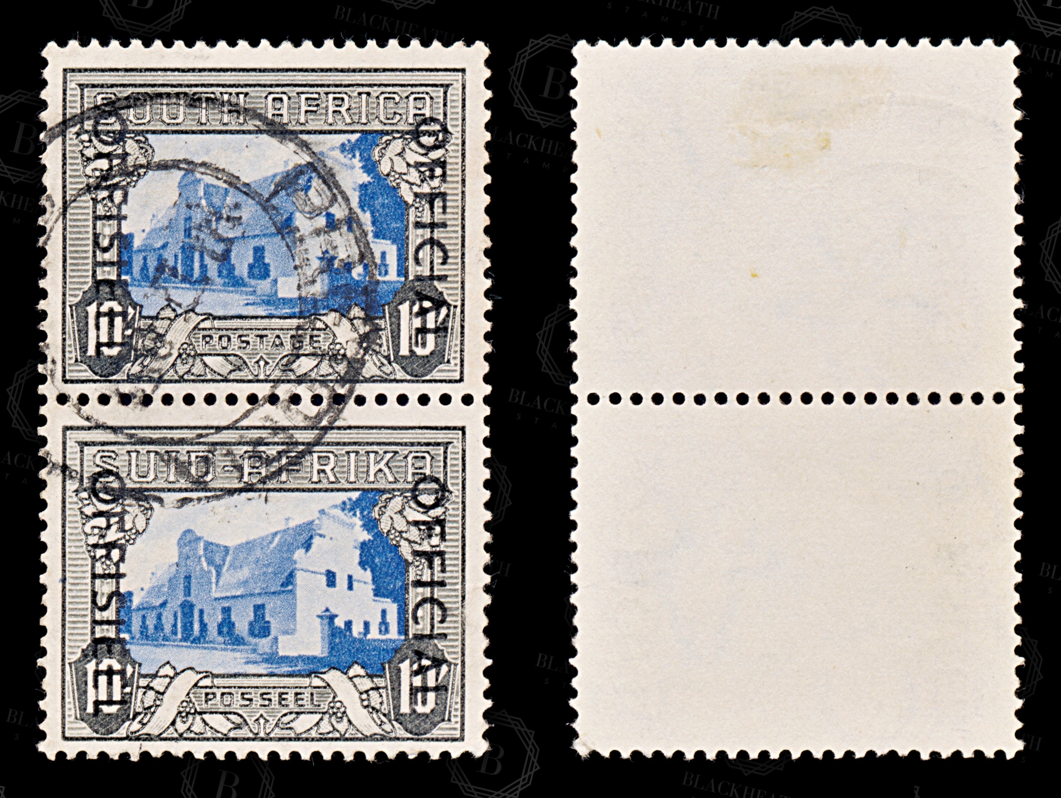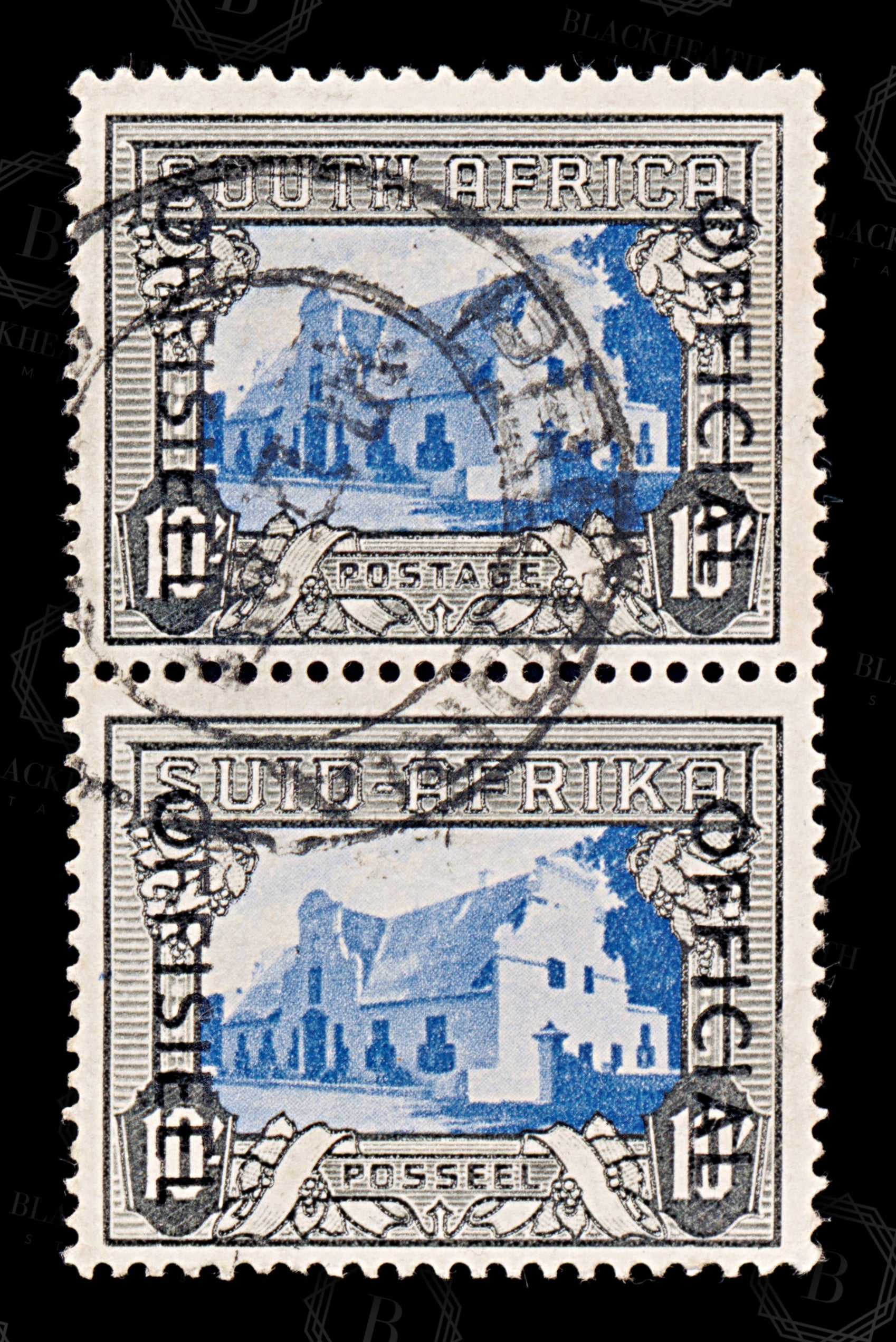 8725: South Africa SGO51 2*10s Blue & Charcoal 1950 MiD98-D99 Used C£250