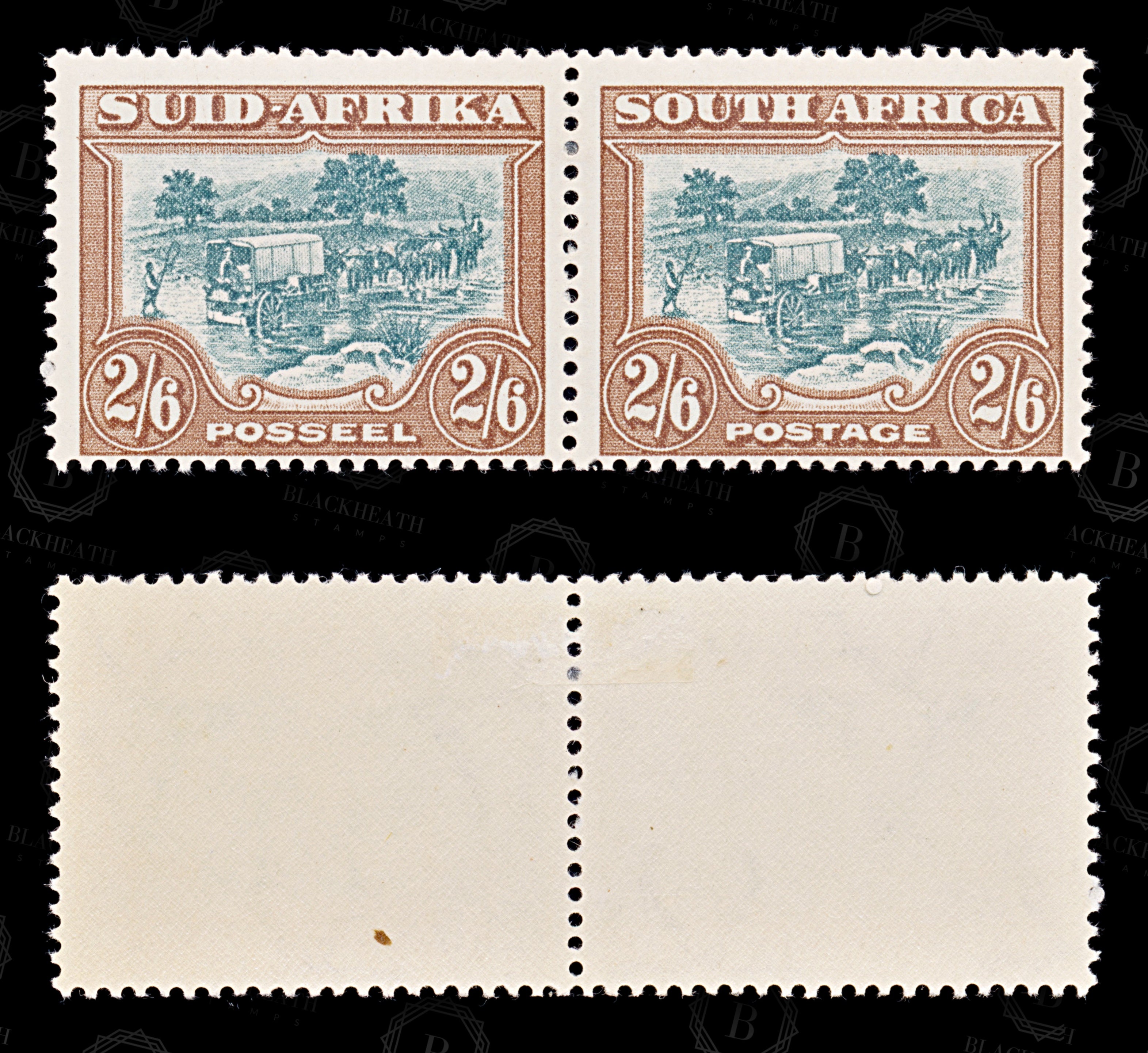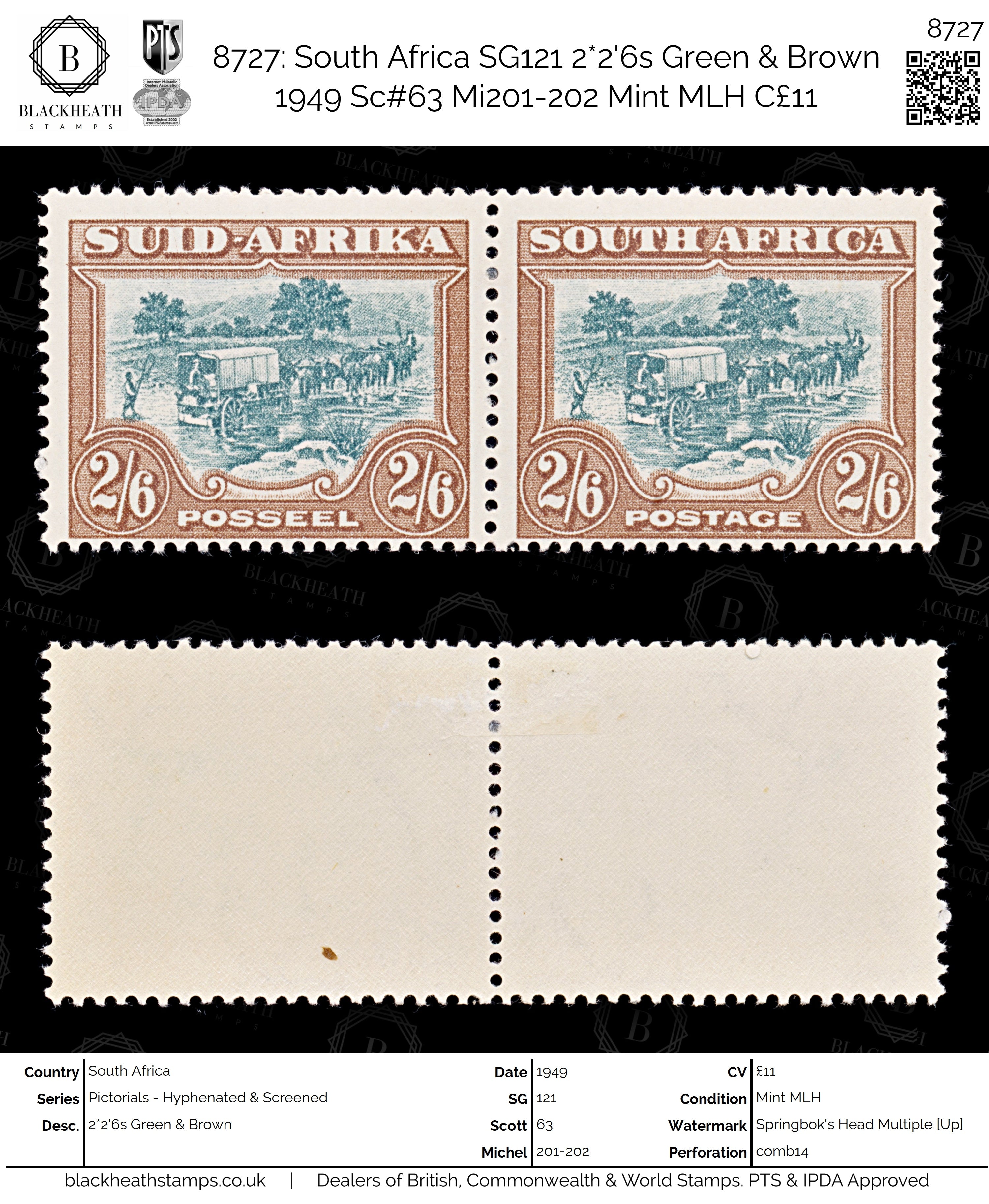 8727: South Africa SG121 2*2'6s Green & Brown 1949 Sc#63 Mi201-202 Mint MLH C£11