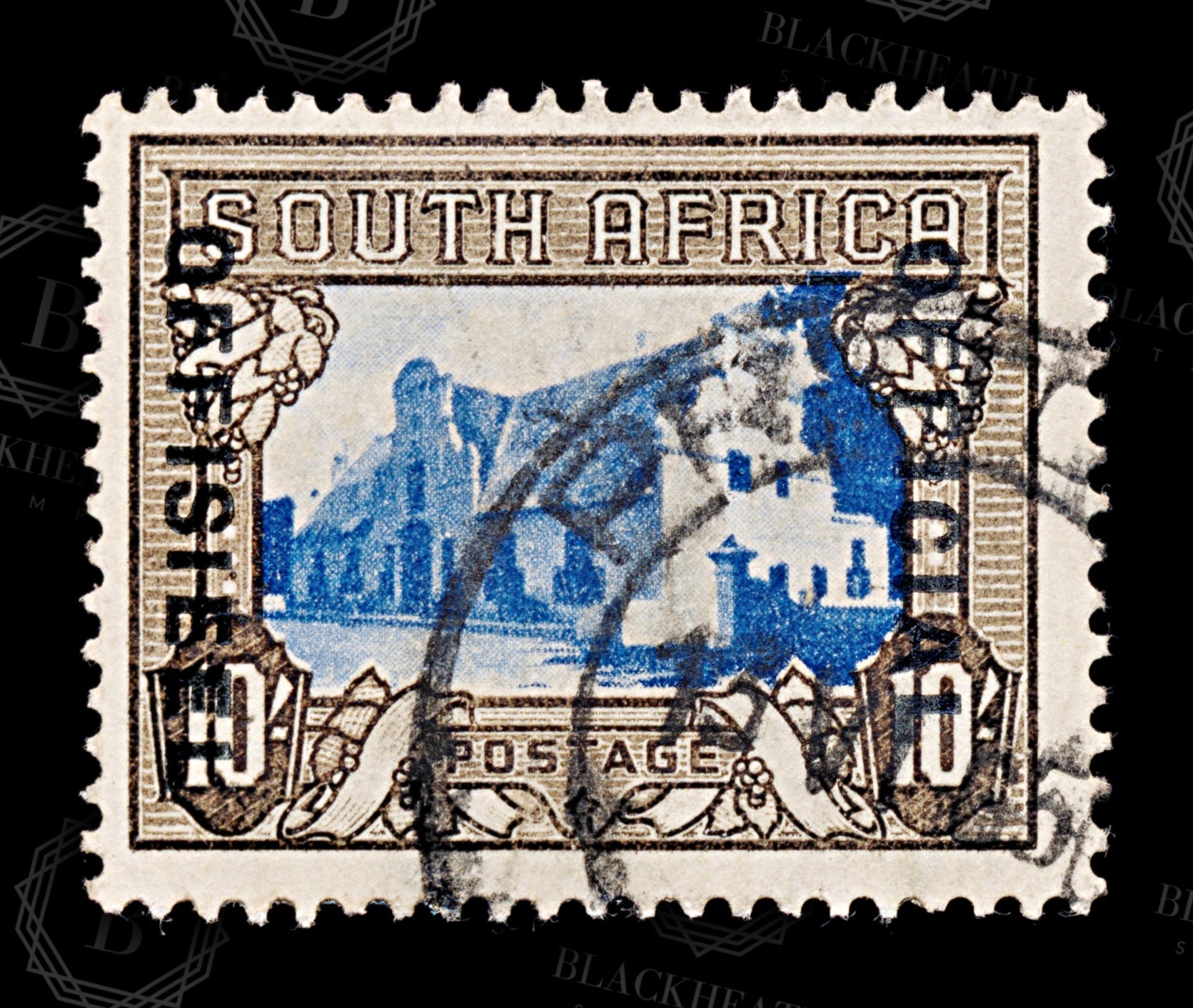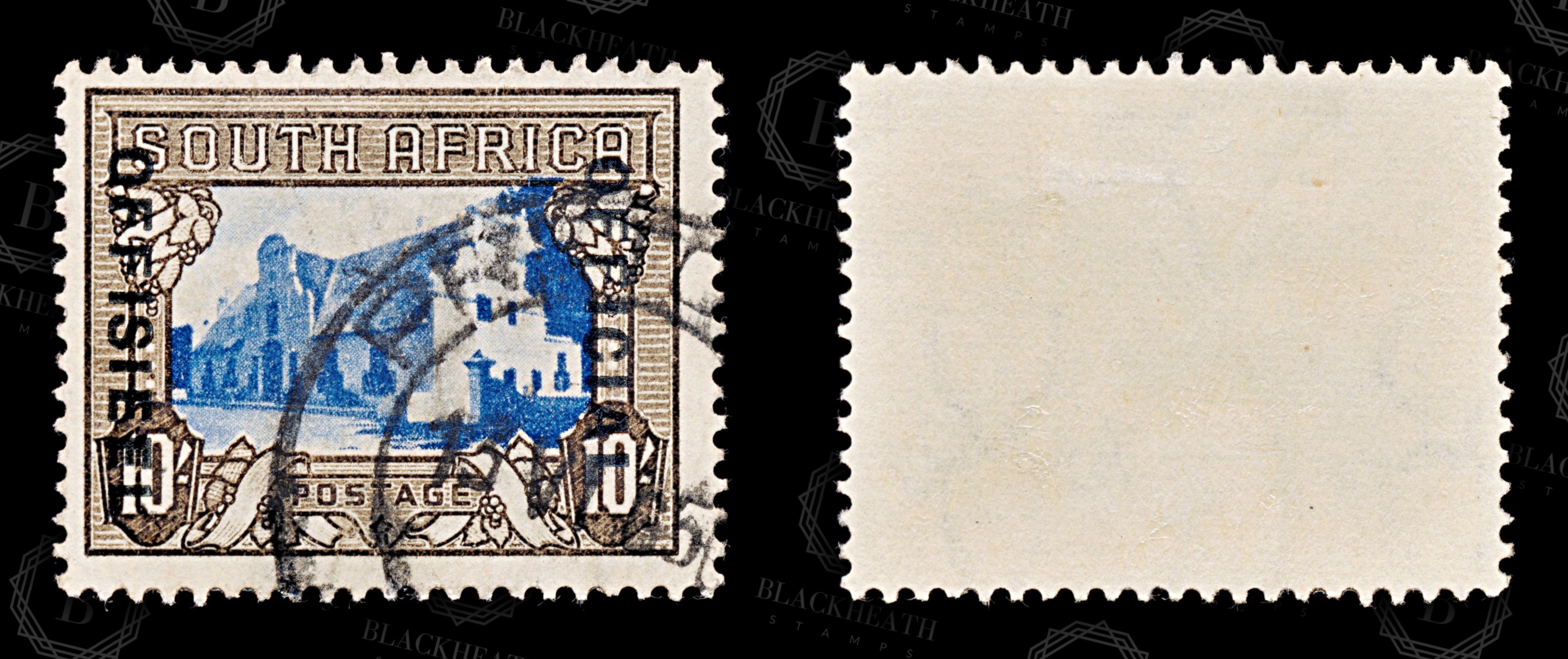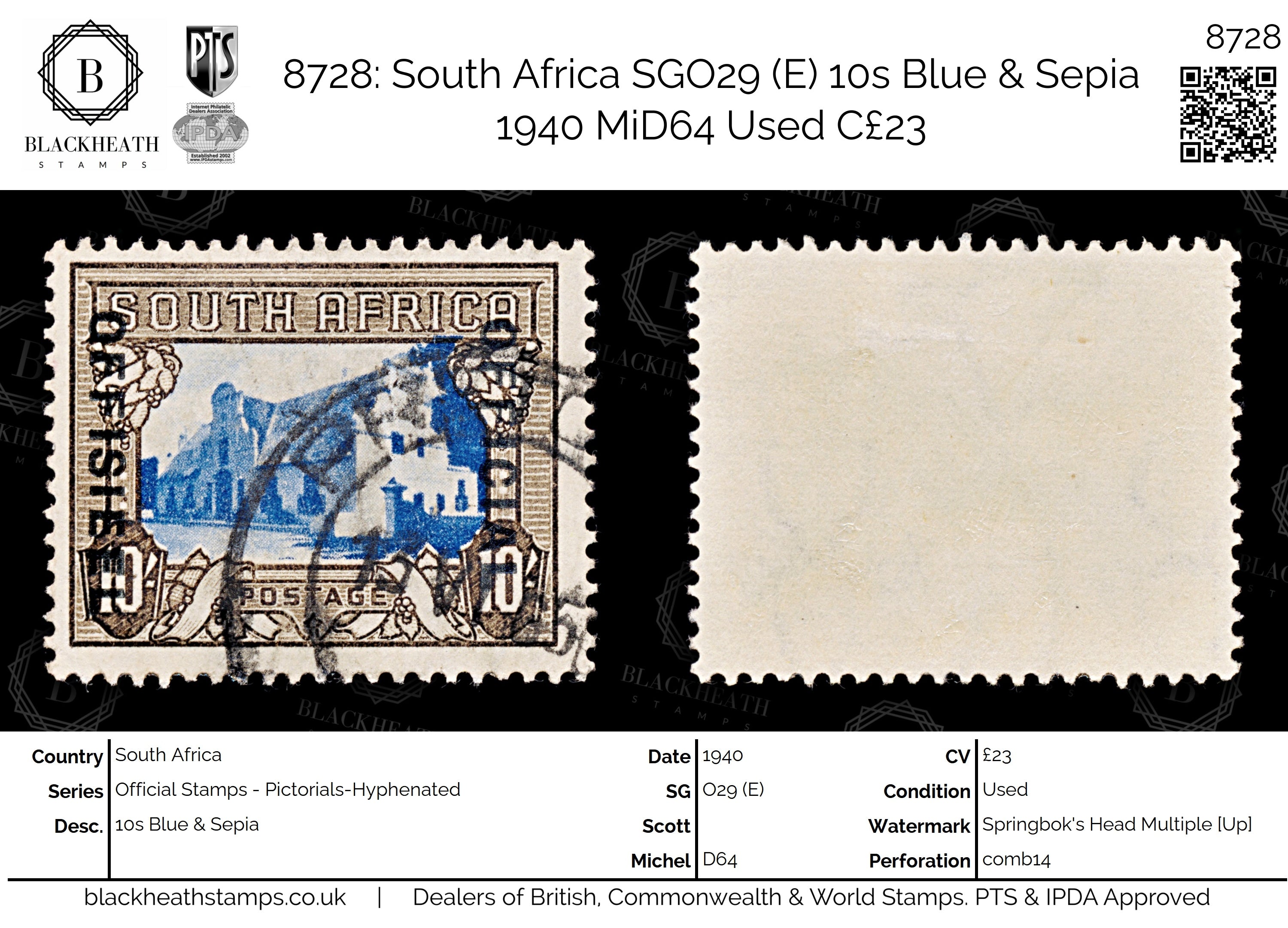 8728: South Africa SGO29 (E) 10s Blue & Sepia 1940 MiD64 Uséd C£23