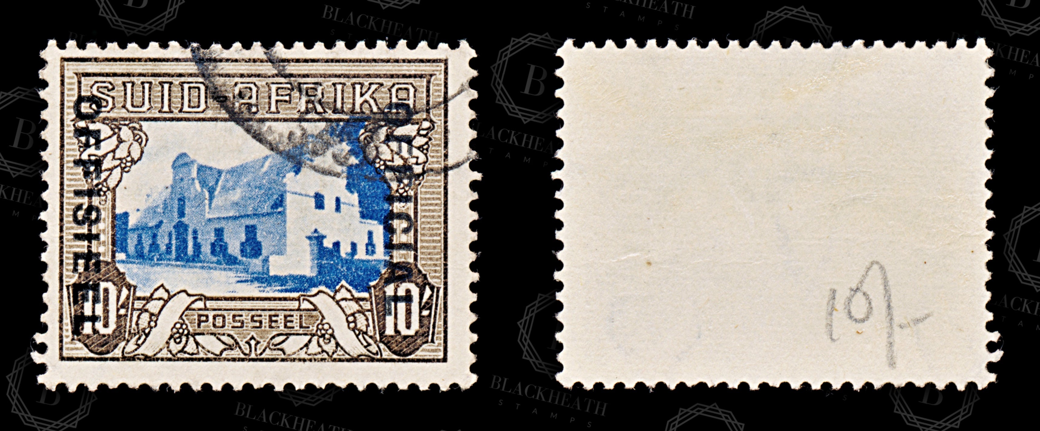 8729: South Africa SGO29 (A) 10s Blue & Sepia 1940 MiD65 Uséd C£23