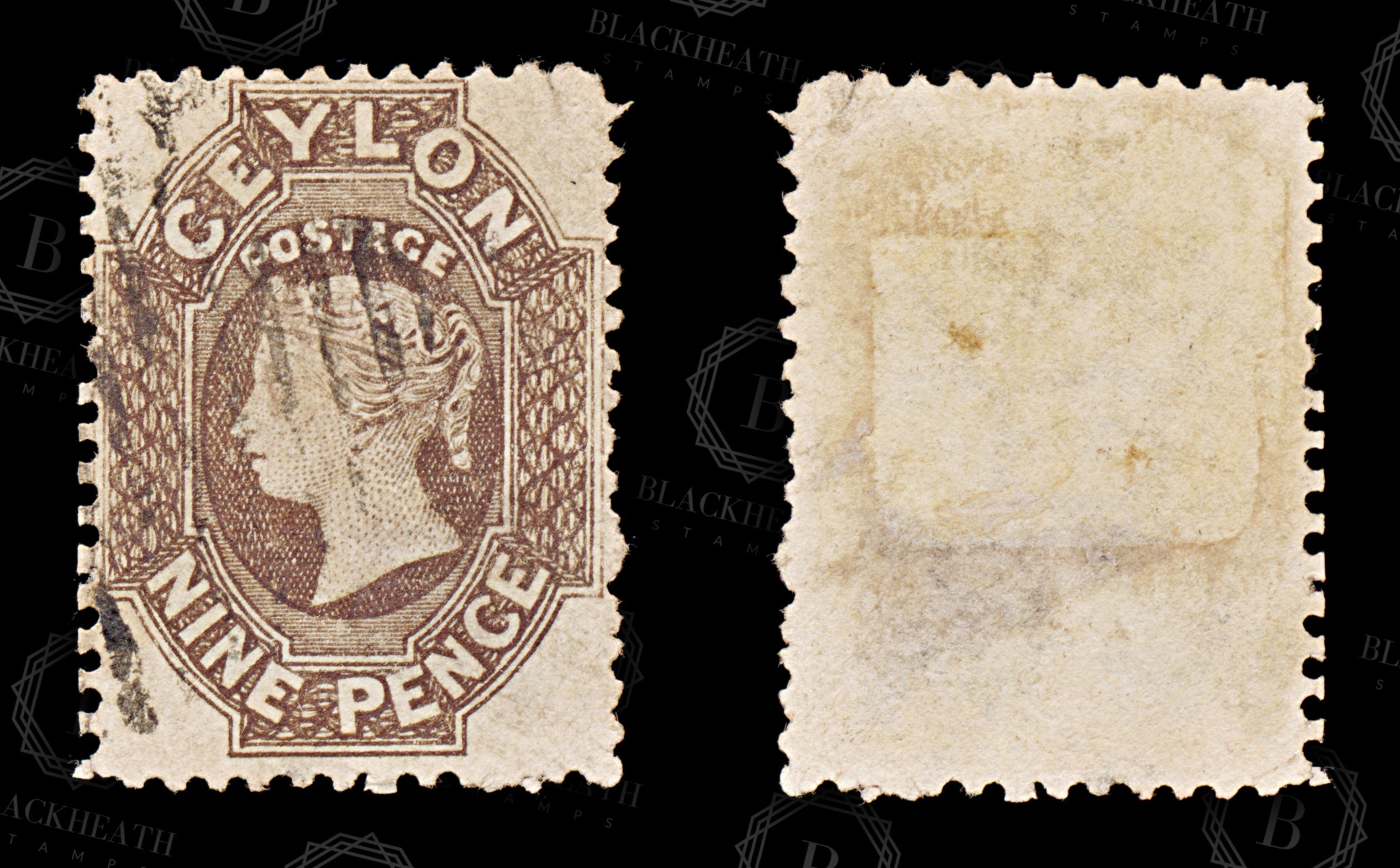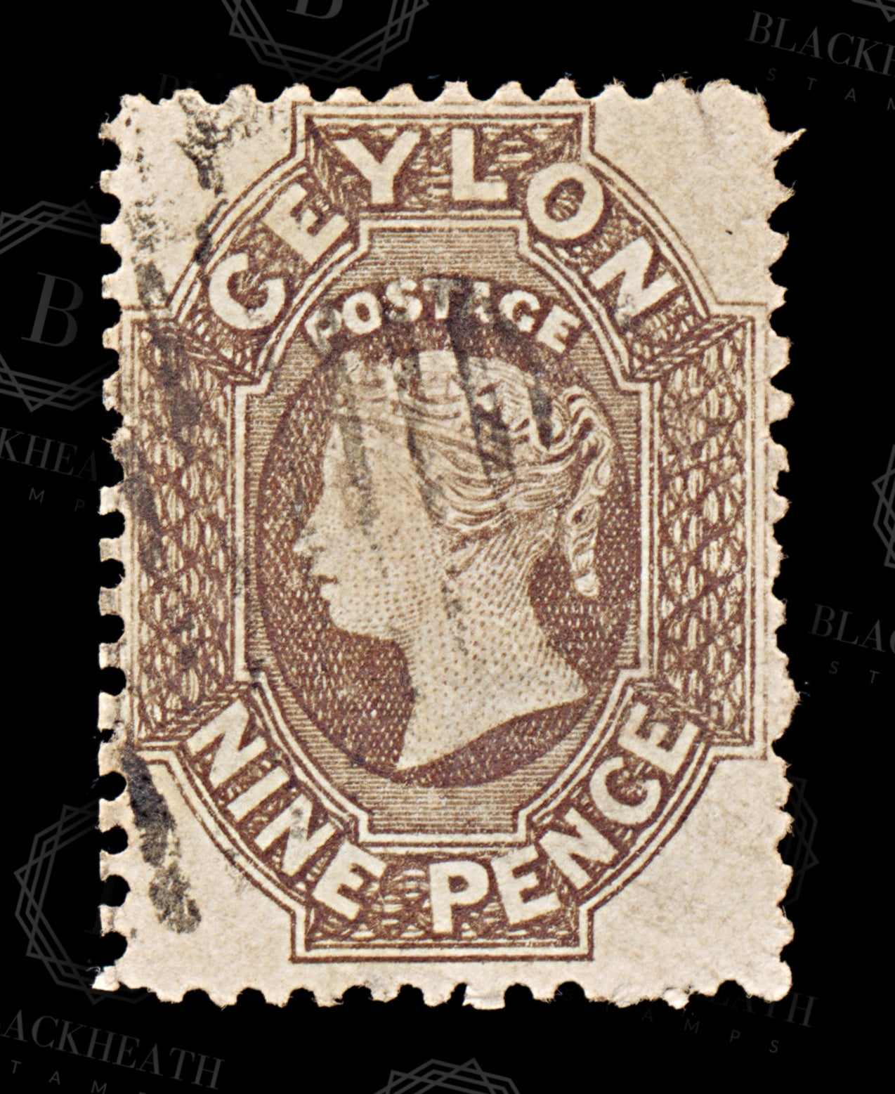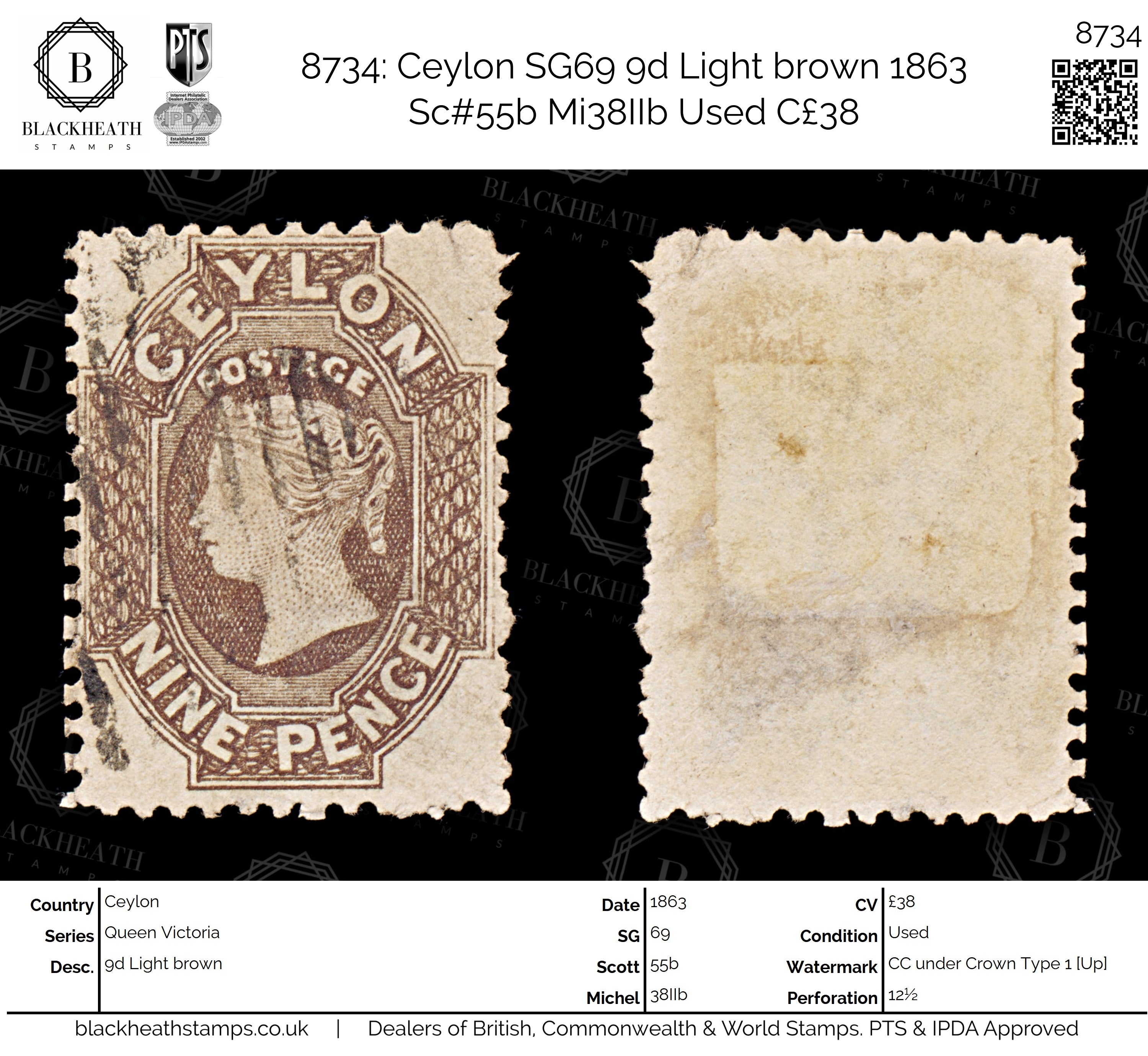8734: Ceylon SG69 9d Light brown 1863 Sc#55b Mi38IIb Uséd C£38
