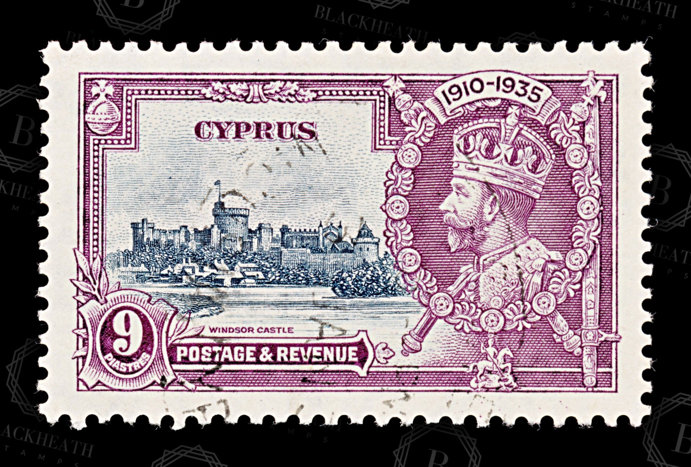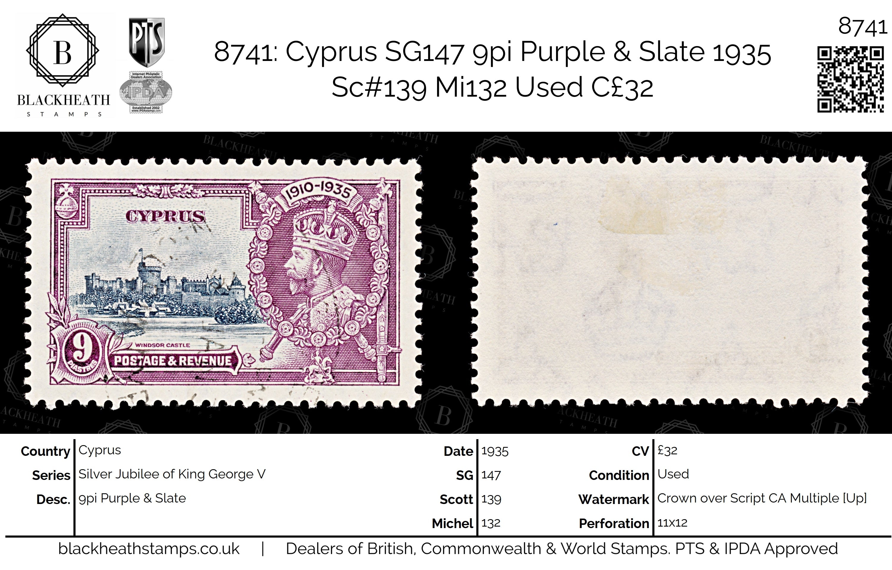 8741: Cyprus SG147 9pi Purple & Slate 1935 Sc#139 Mi132 Uséd C£32