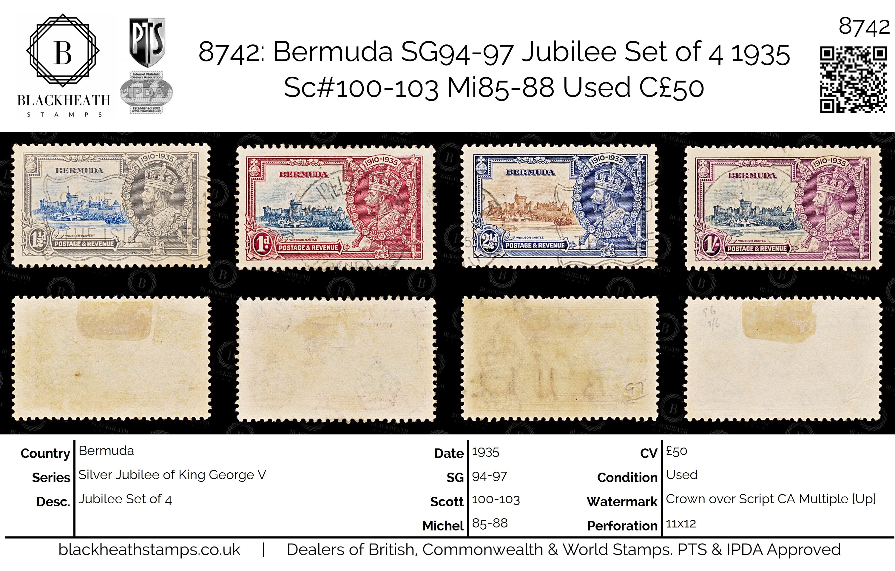 8742: Bermuda SG94-97 Jubilee Set of 4 1935 Sc#100-103 Mi85-88 Used C£50