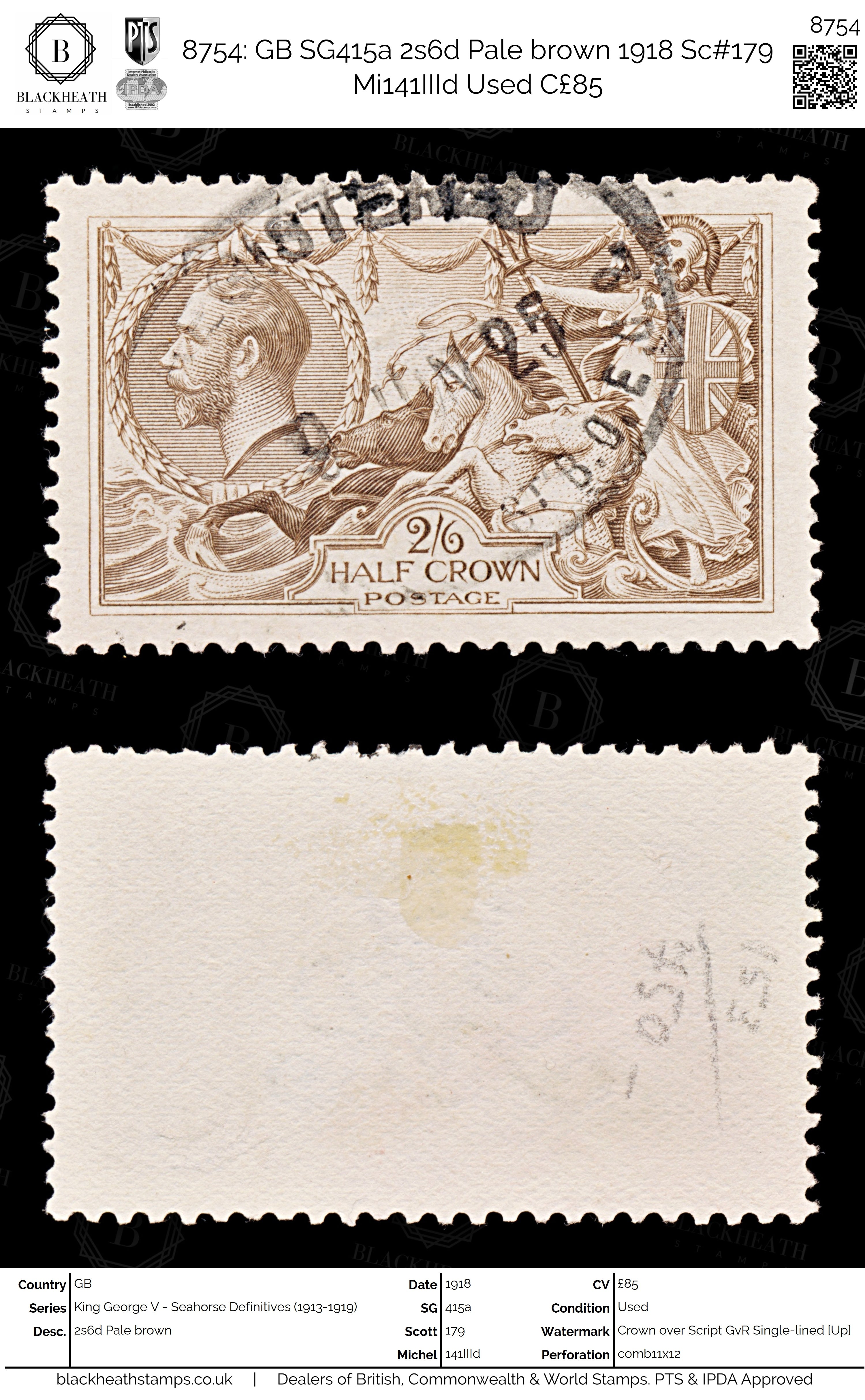 8754: GB SG415a 2s6d Pale brown 1918 Sc#179 Mi141IIId Uséd C£85