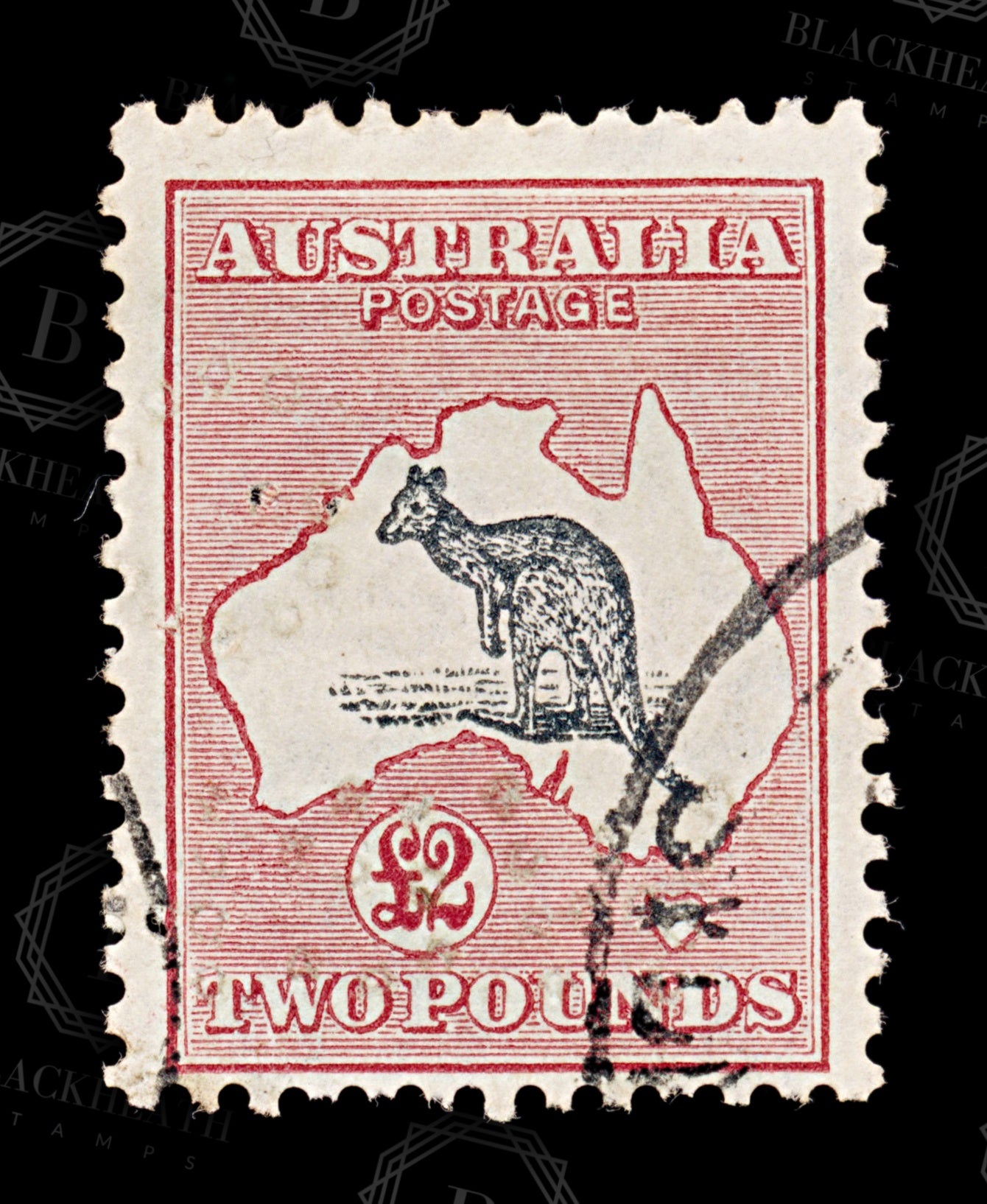 8774: Australia SG114 £2 Black & Rose 1930 Sc#102 Mi88 Used C£750