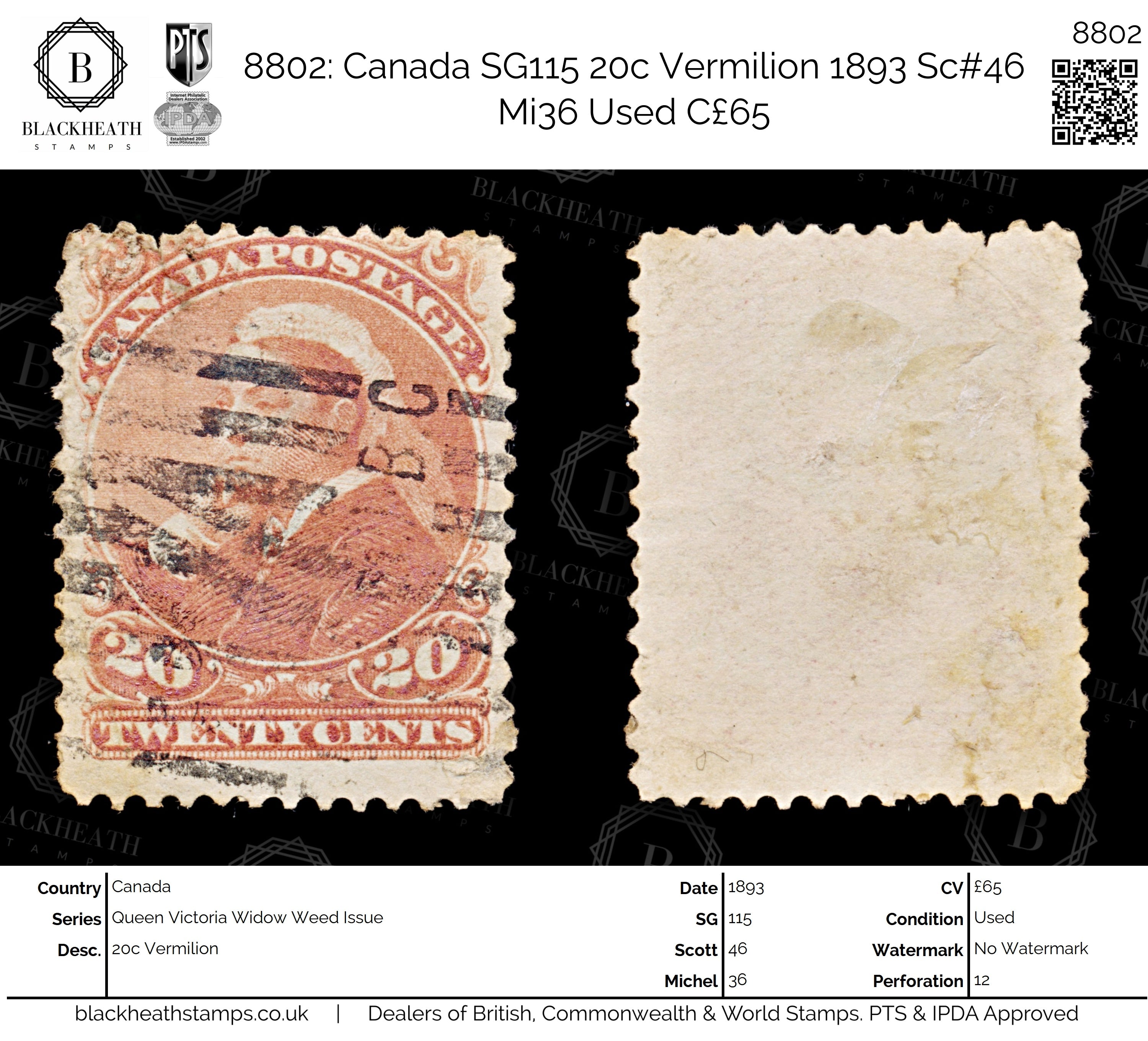 8802: Canada SG115 20c Vermilion 1893 Sc#46 Mi36 Uséd C£65