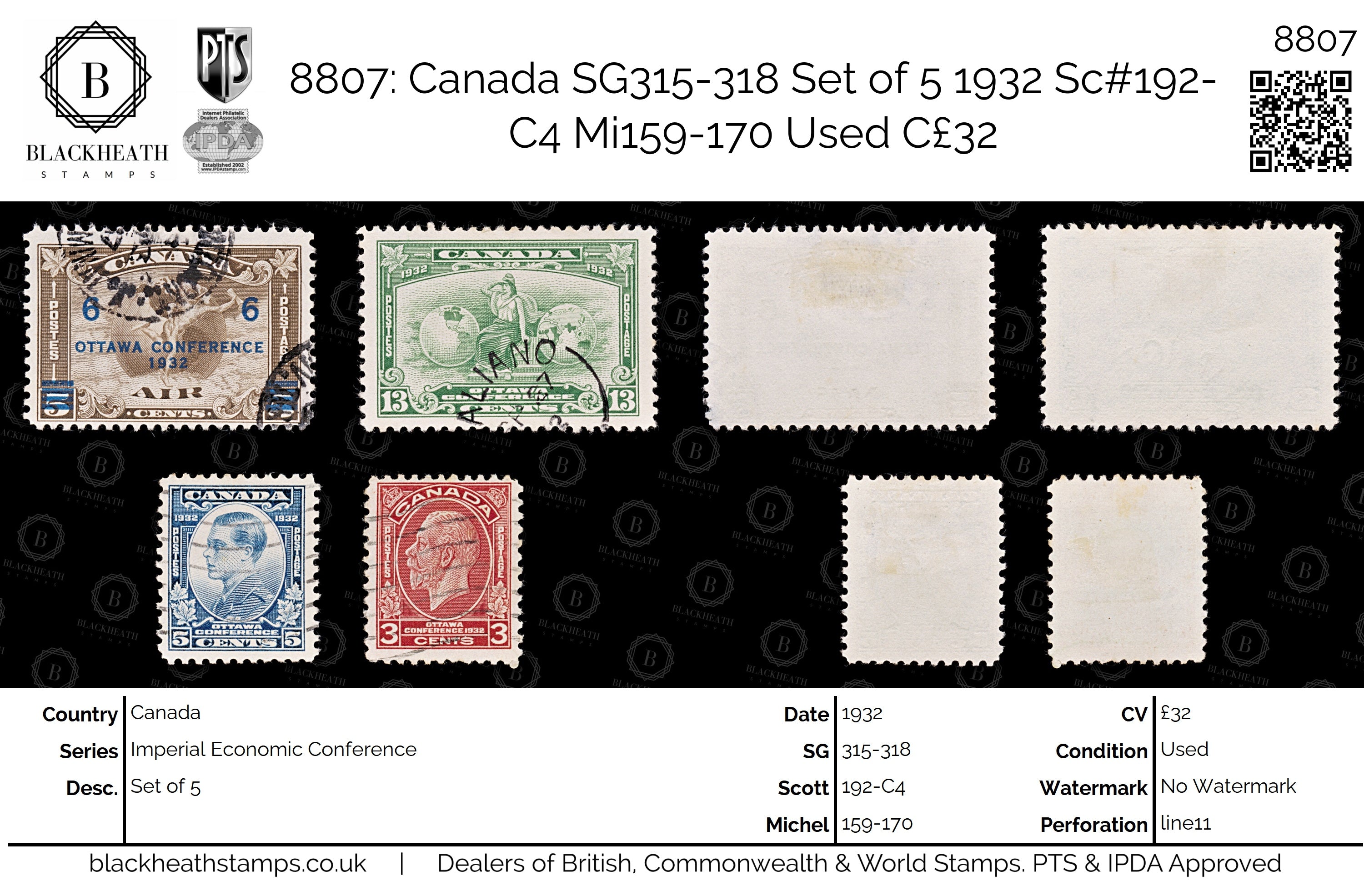 8807: Canada SG315-318 Set of 5 1932 Sc#192-C4 Mi159-170 Used C£32
