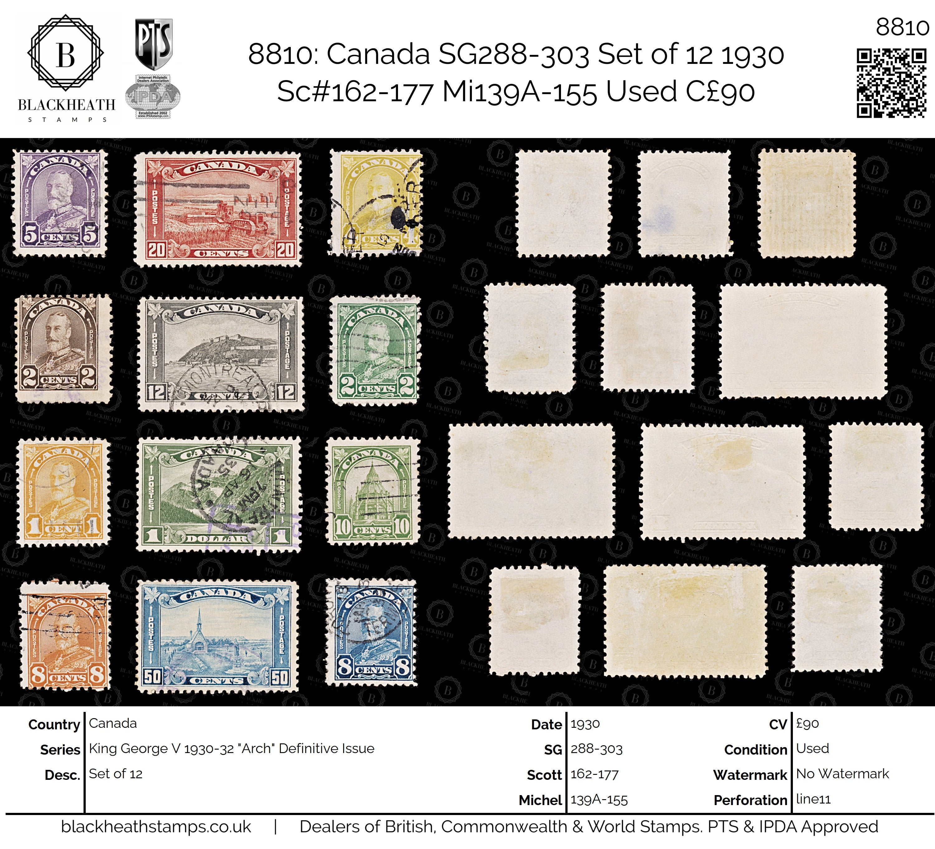 8810: Canada SG288-303 Set of 12 1930 Sc#162-177 Mi139A-155 Used C£90
