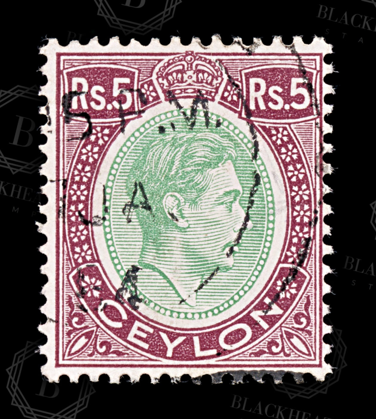 8811: Ceylon SG397 5r Green & Purple 1938 Mi242a Uséd C£23