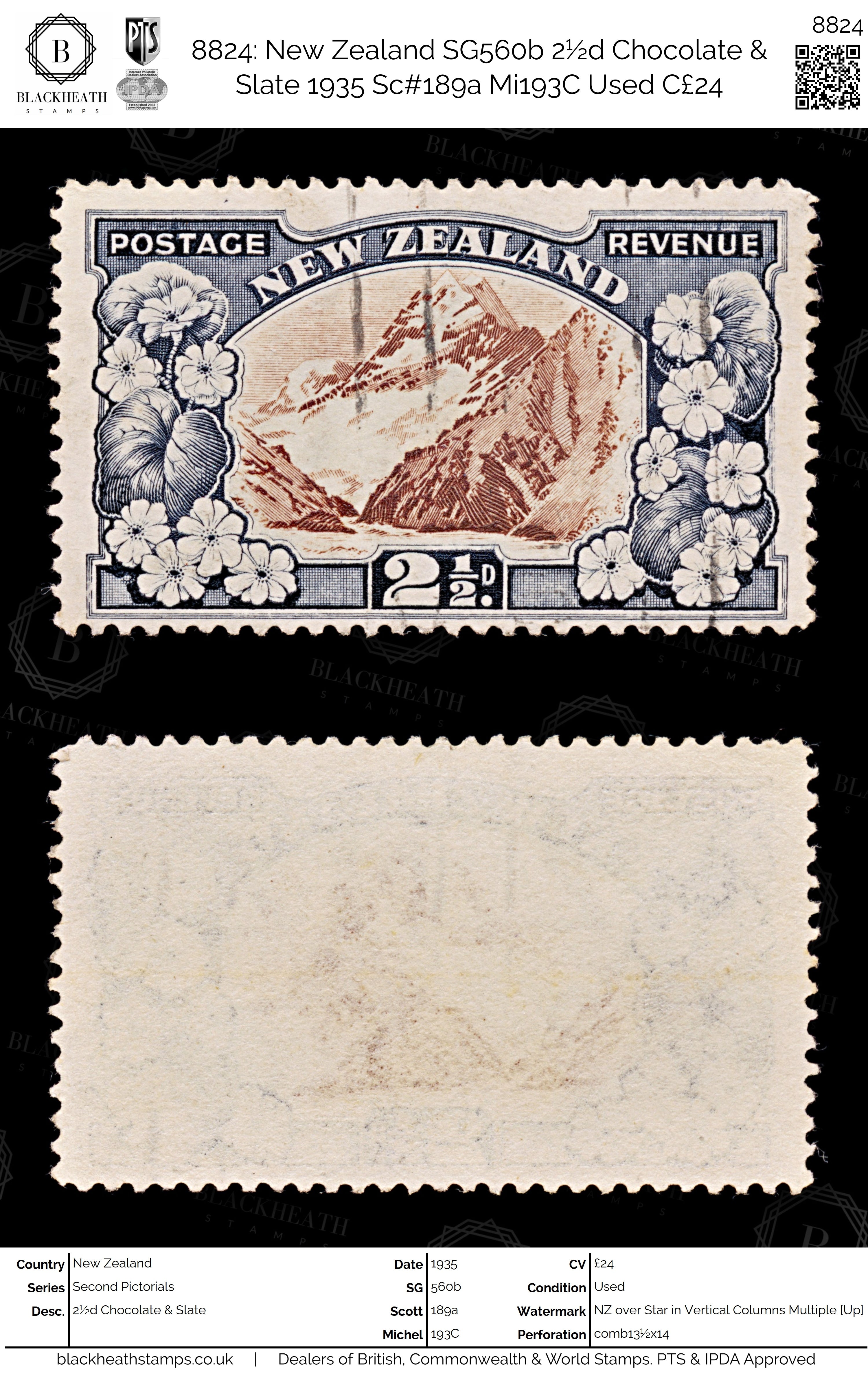8824: New Zealand SG560b 2½d Chocolate & Slate 1935 Sc#189a Mi193C Uséd C£24