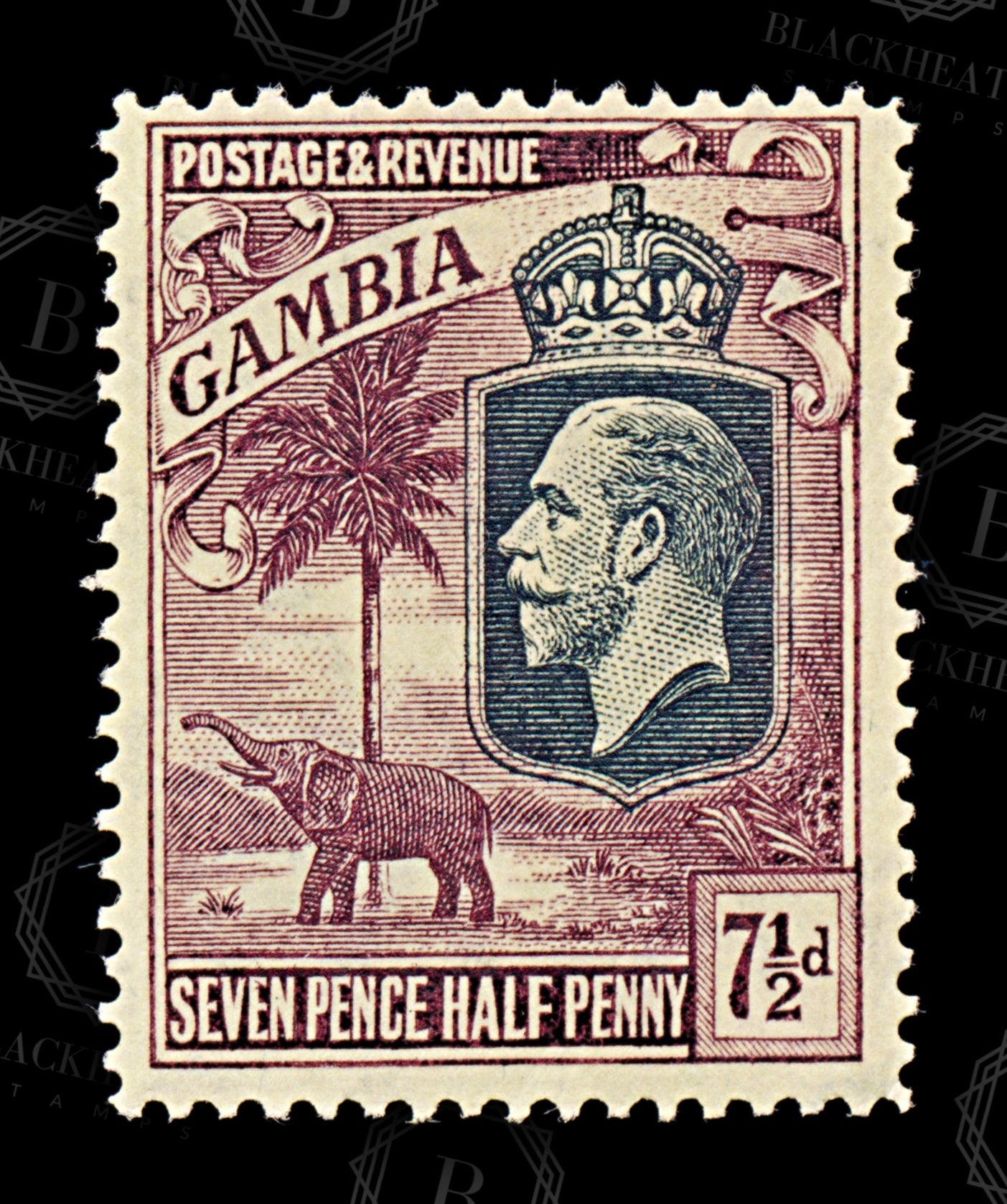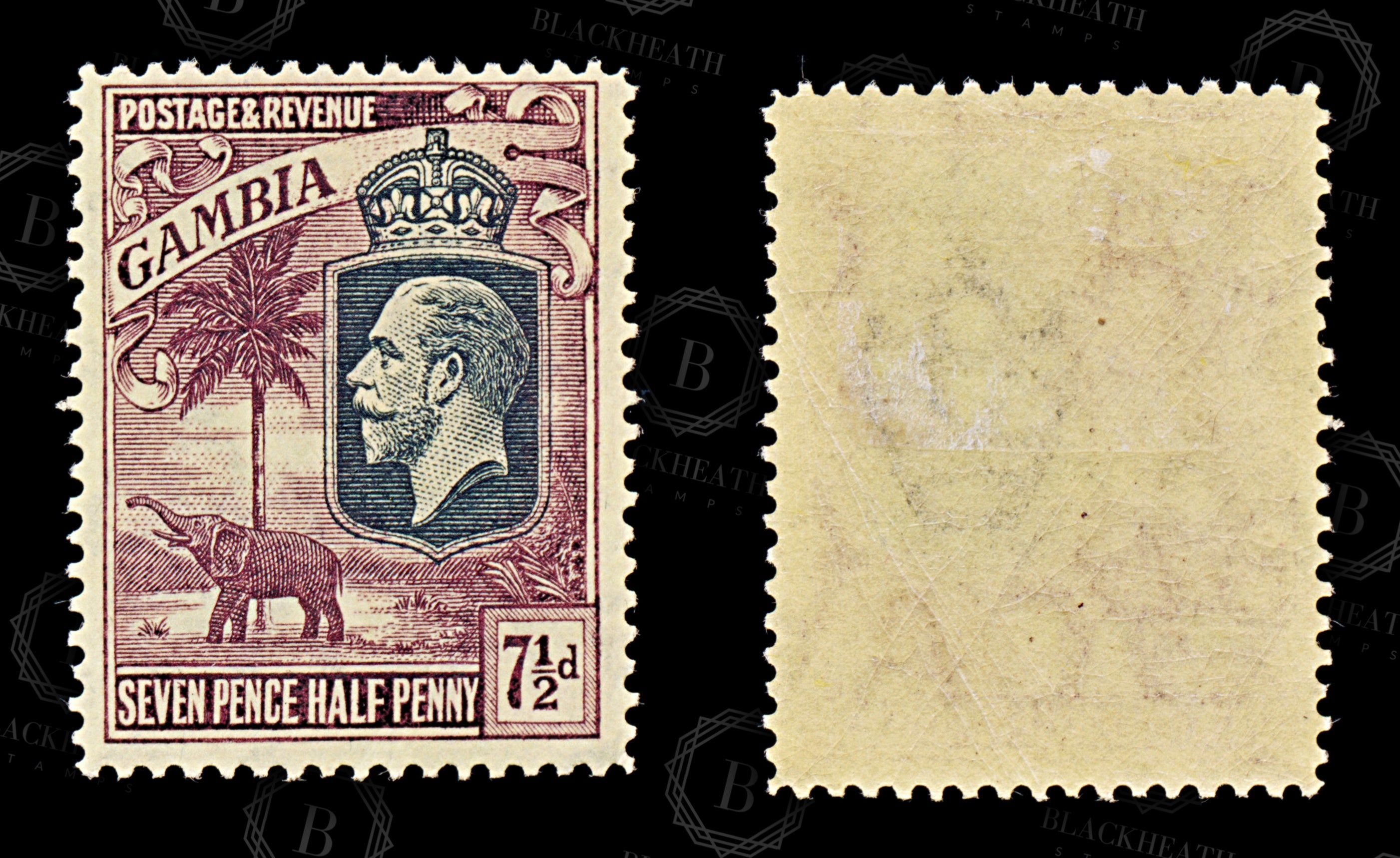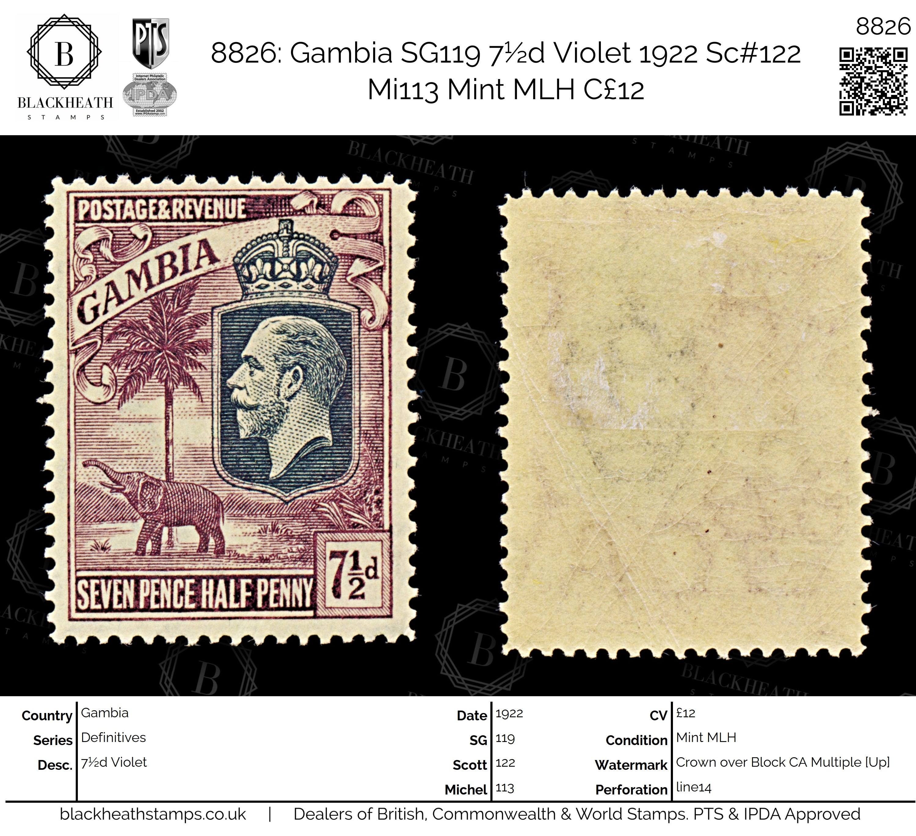 8826: Gambia SG119 7½d Violet 1922 Sc#122 Mi113 Mint MLH C£12