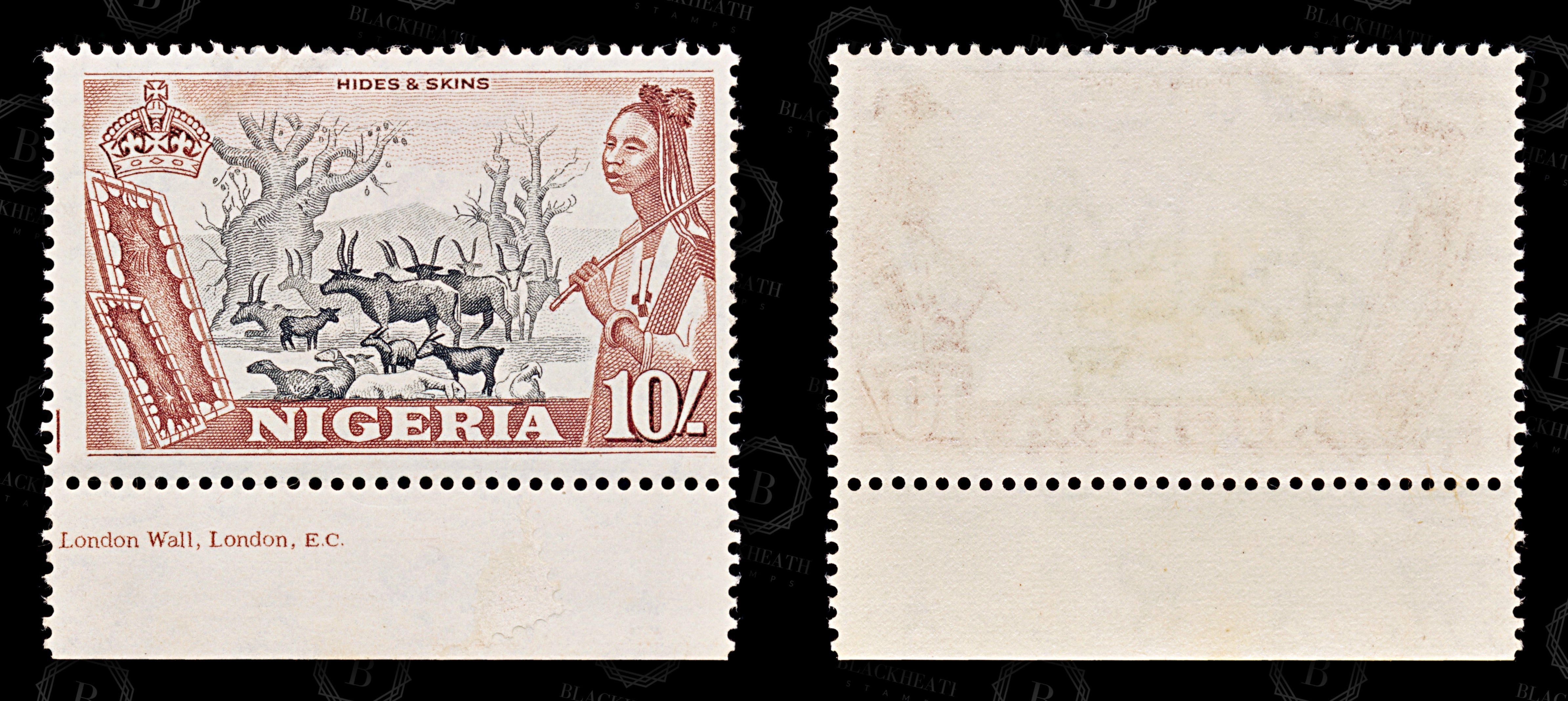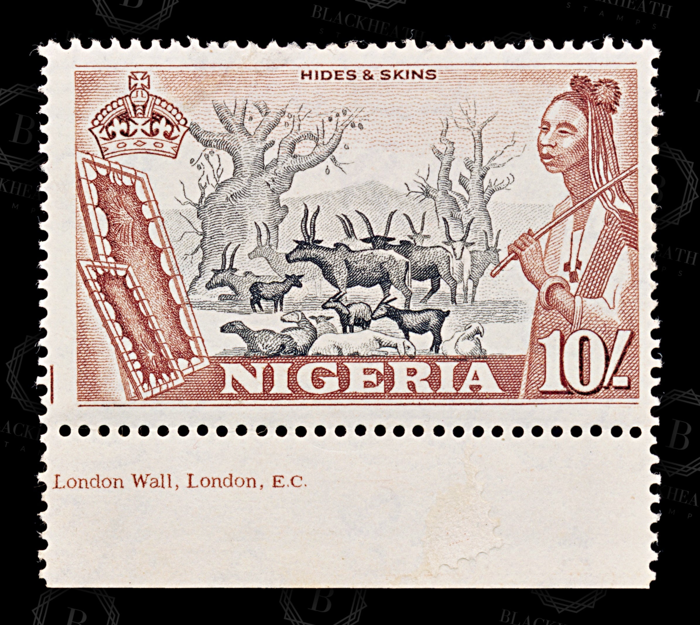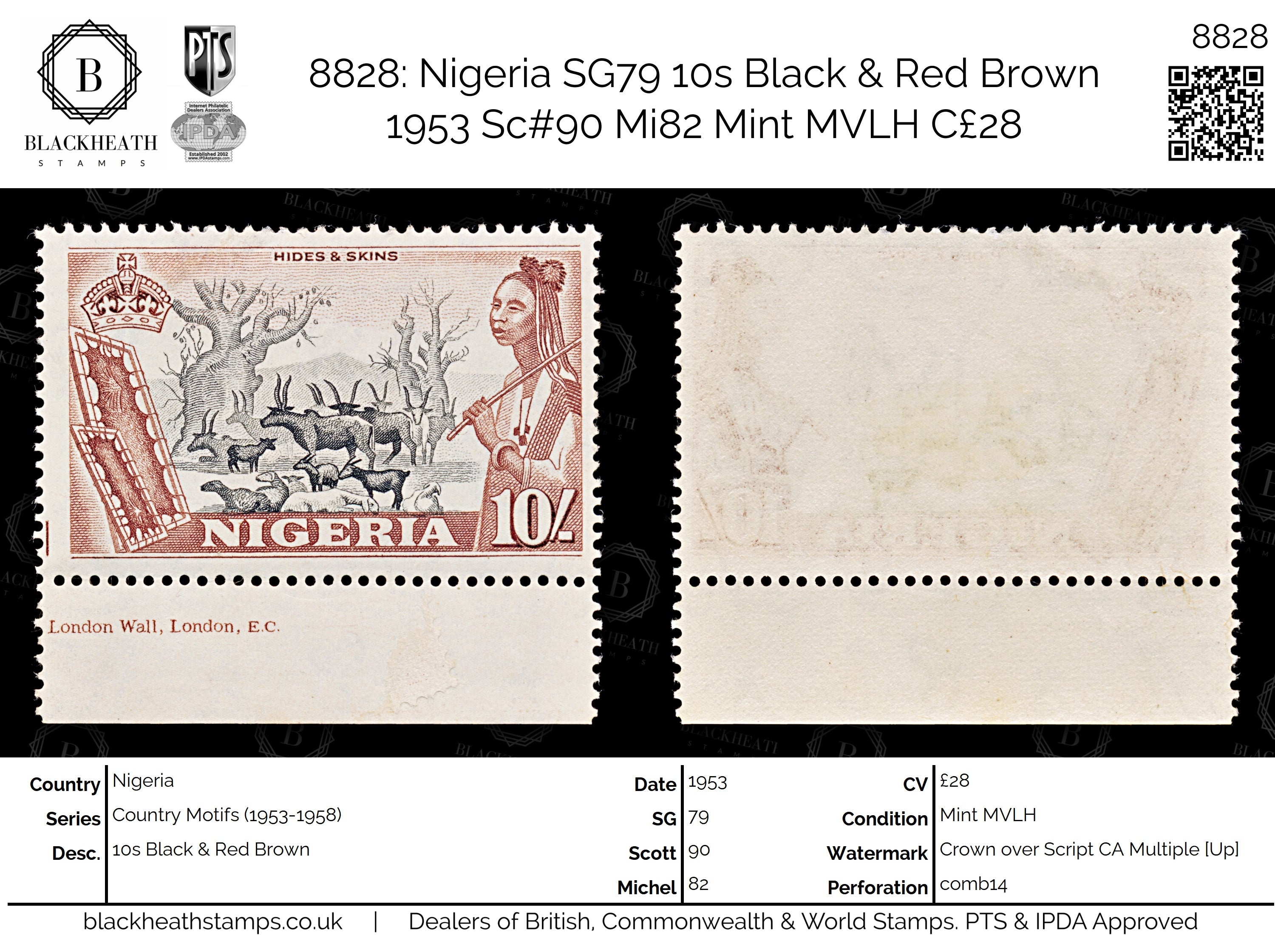 8828: Nigeria SG79 10s Black & Red Brown 1953 Sc#90 Mi82 Mint MVLH C£28