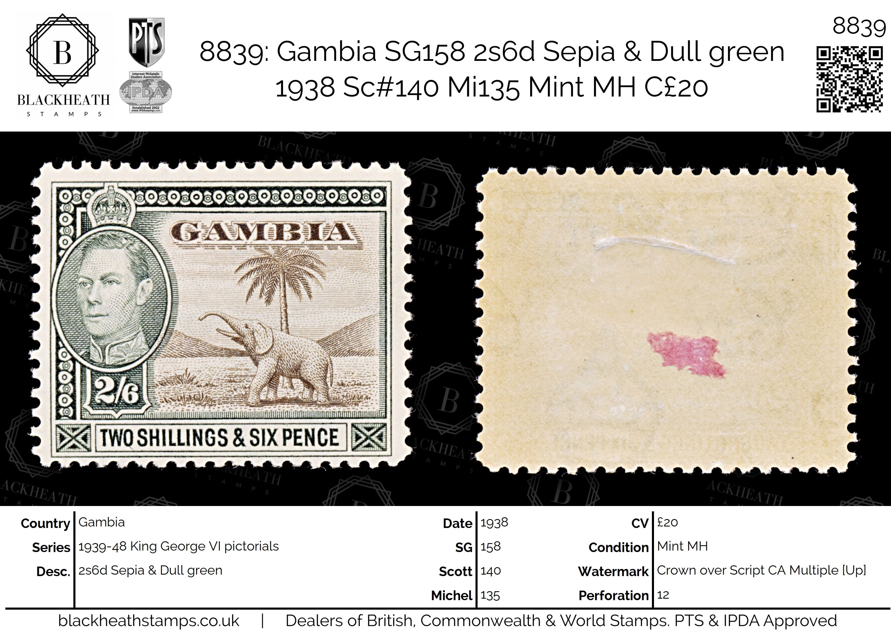 8839: Gambia SG158 2s6d Sepia & Dull green 1938 Sc#140 Mi135 Mint MH C£20