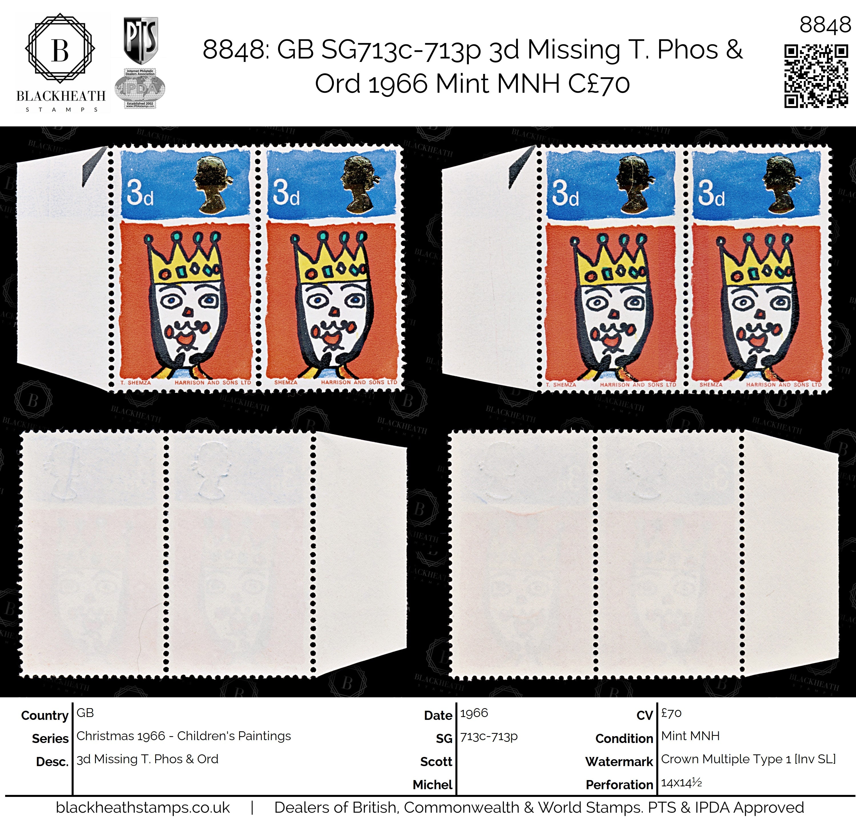8848: GB SG713c-713p 3d Missing T. Phos & Ord 1966 Mint MNH C£70