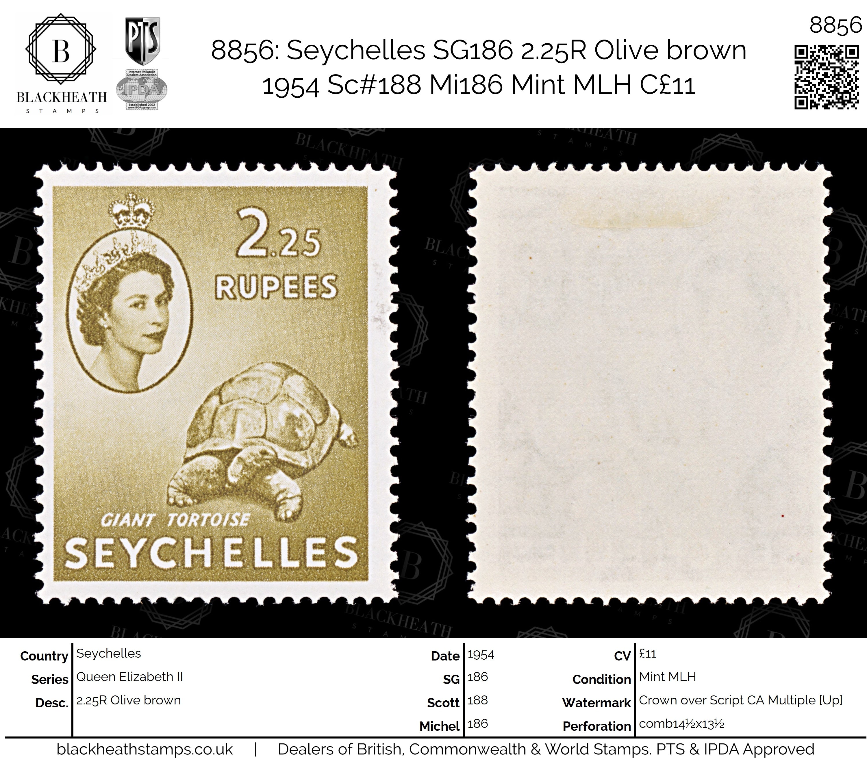 8856: Seychelles SG186 2.25R Olive brown 1954 Sc#188 Mi186 Mint MLH C£11