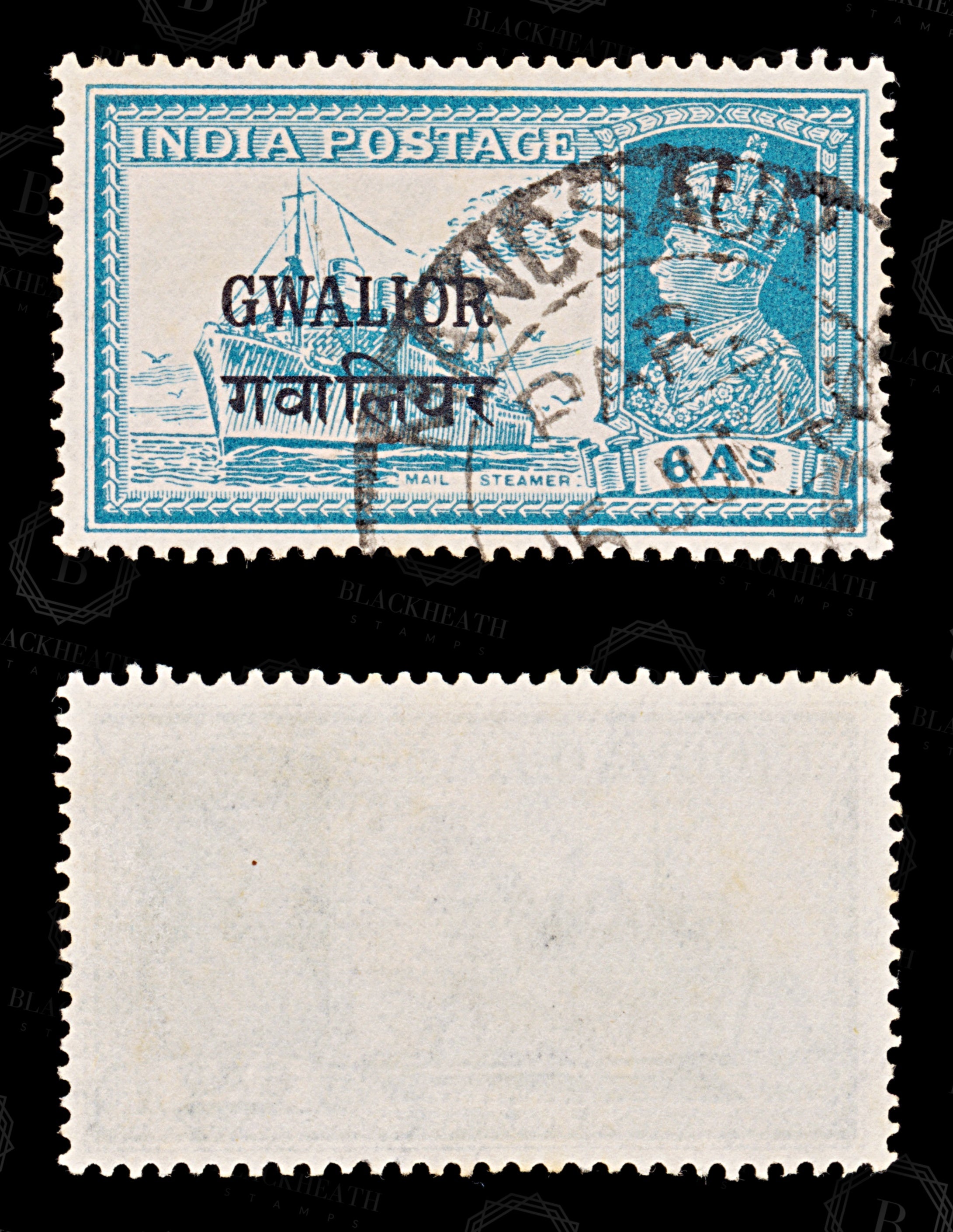 8868: Gwalior SG111 6A Turquoise green 1939 Sc#96 Mi95 Used C£16