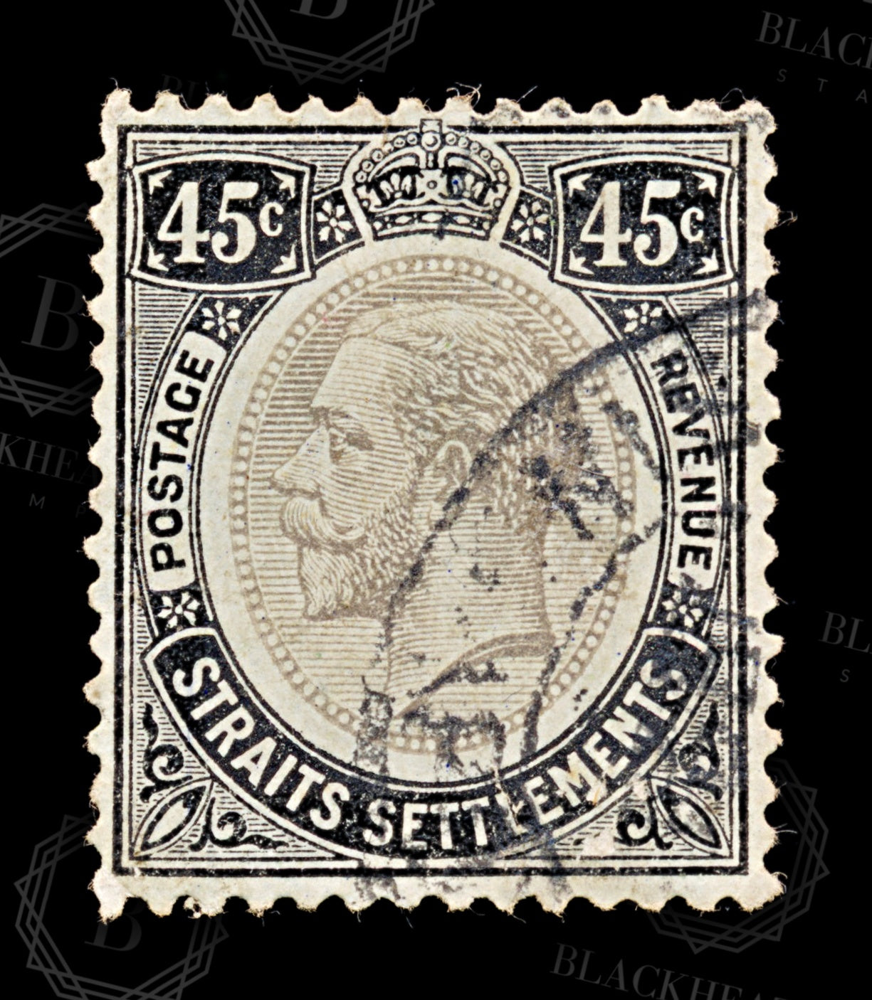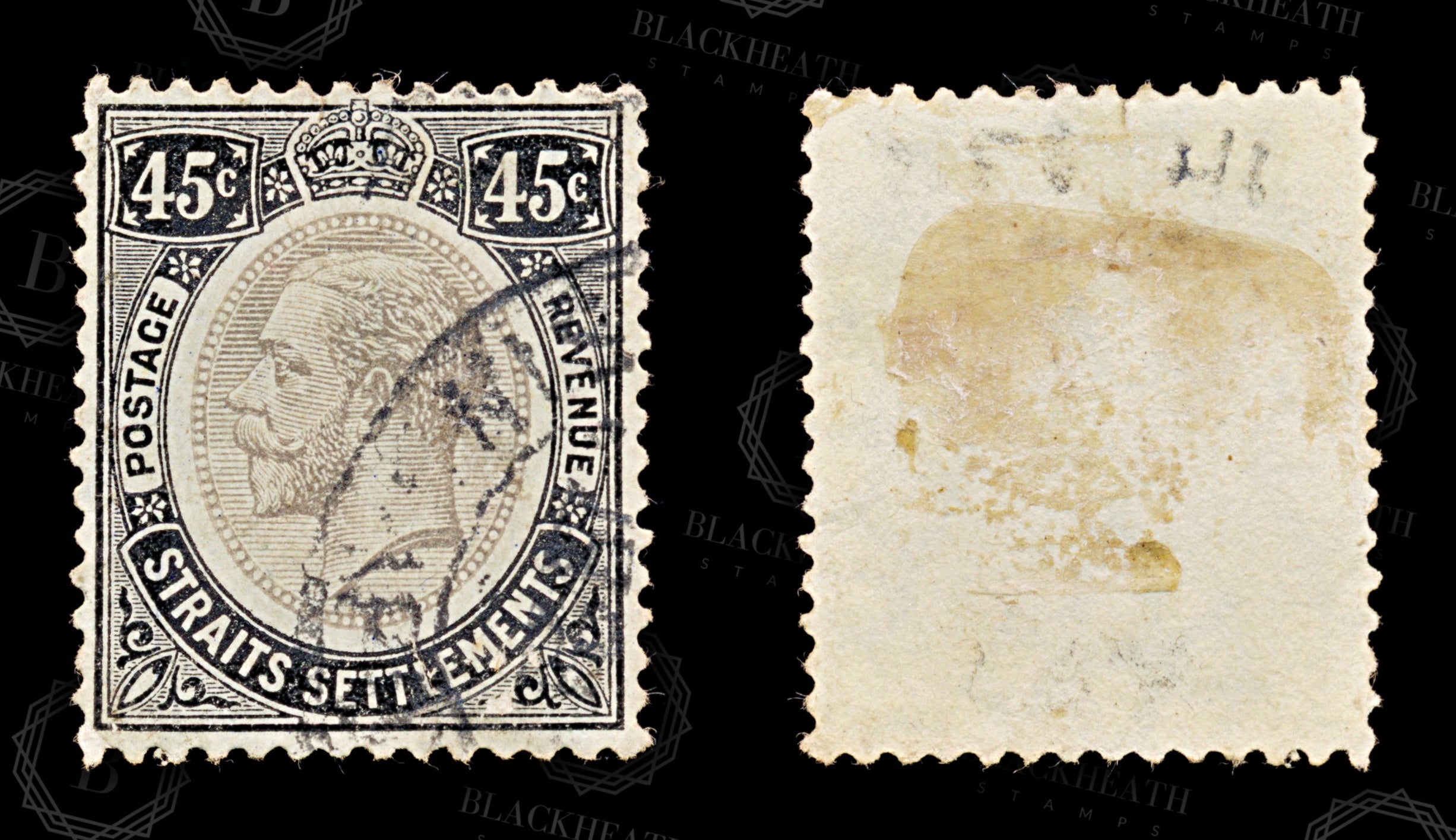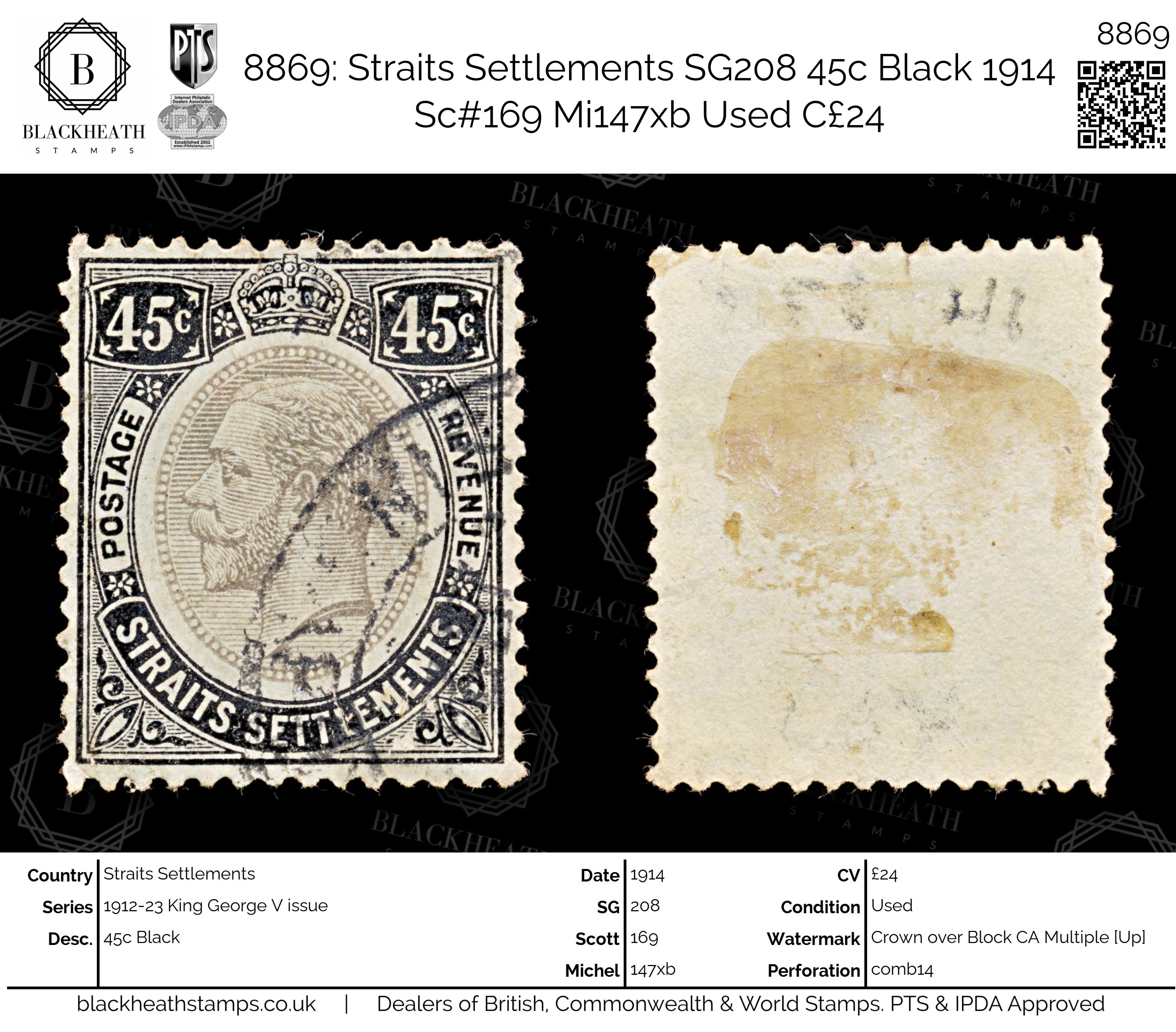 8869: Straits Settlements SG208 45c Black 1914 Sc#169 Mi147xb Uséd C£24