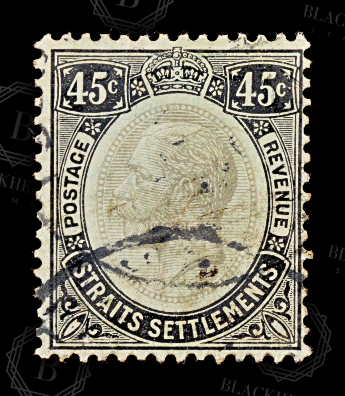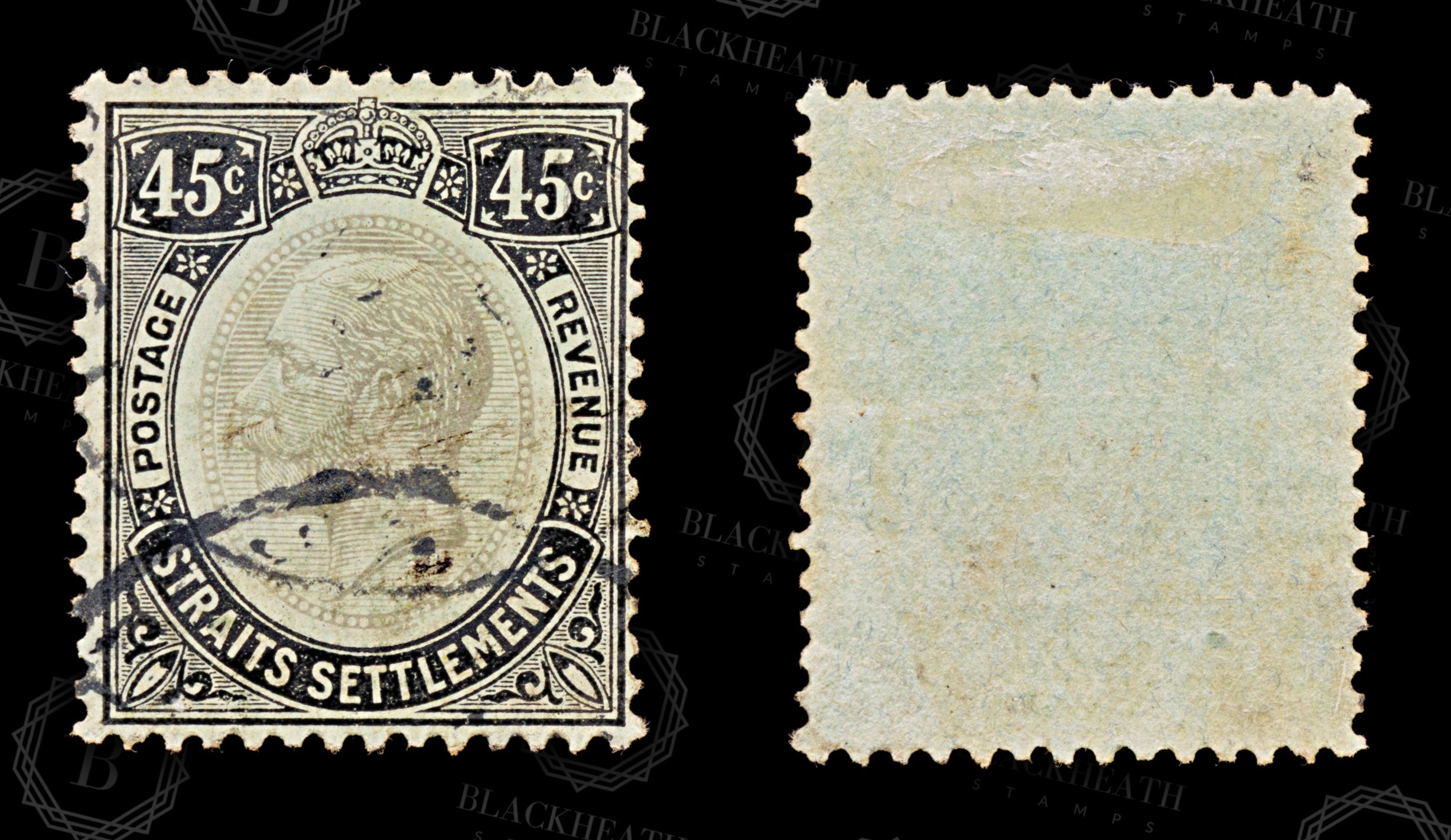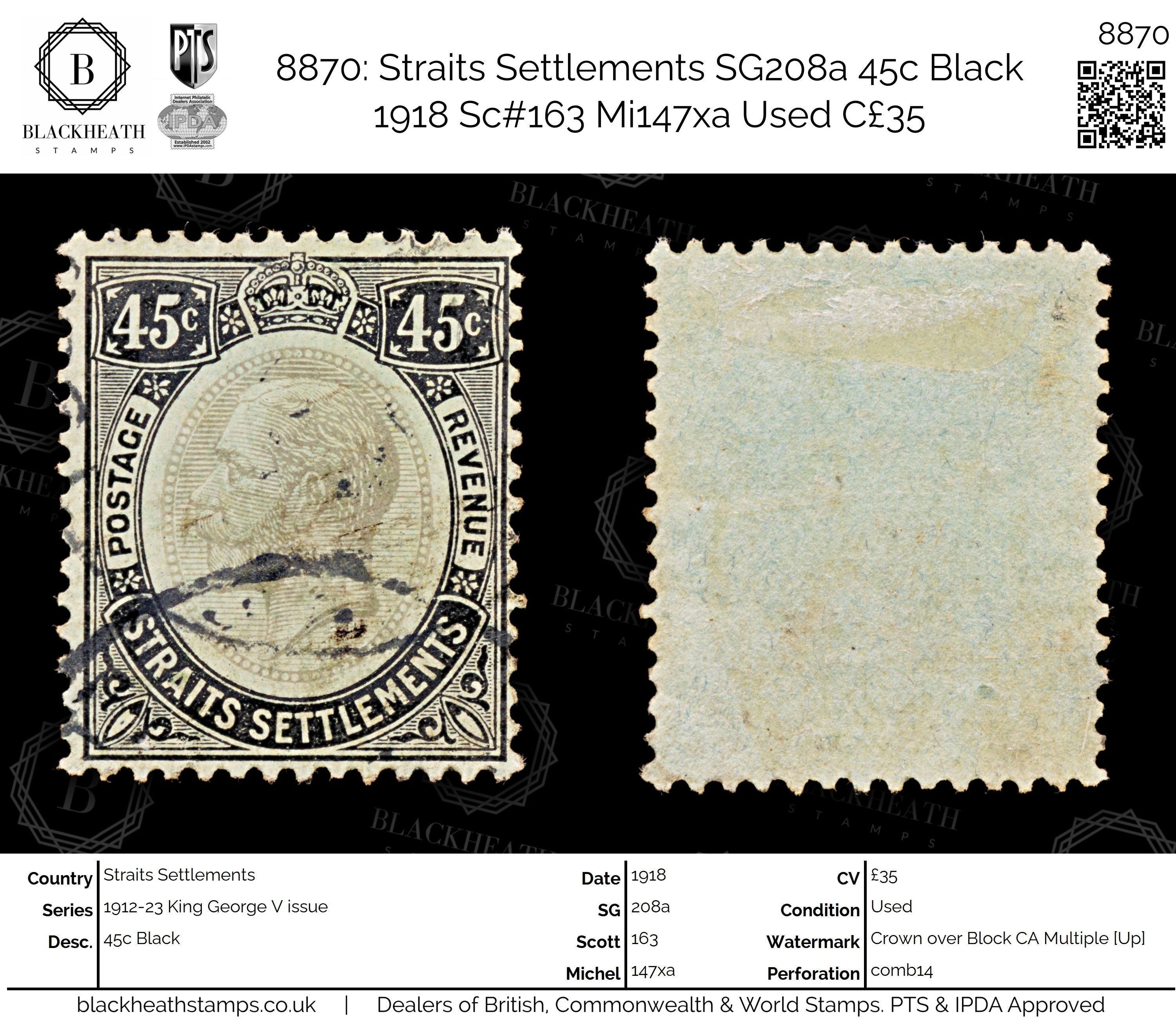 8870: Straits Settlements SG208a 45c Black 1918 Sc#163 Mi147xa Uséd C£35
