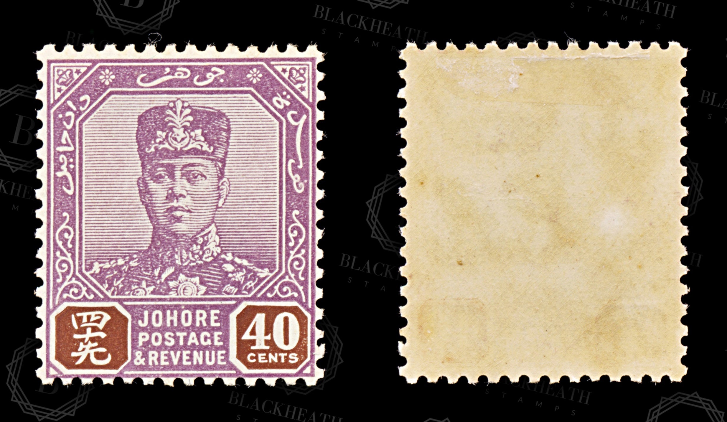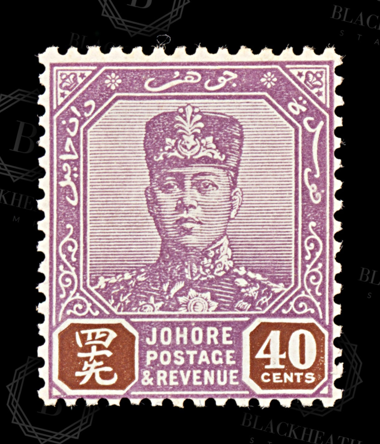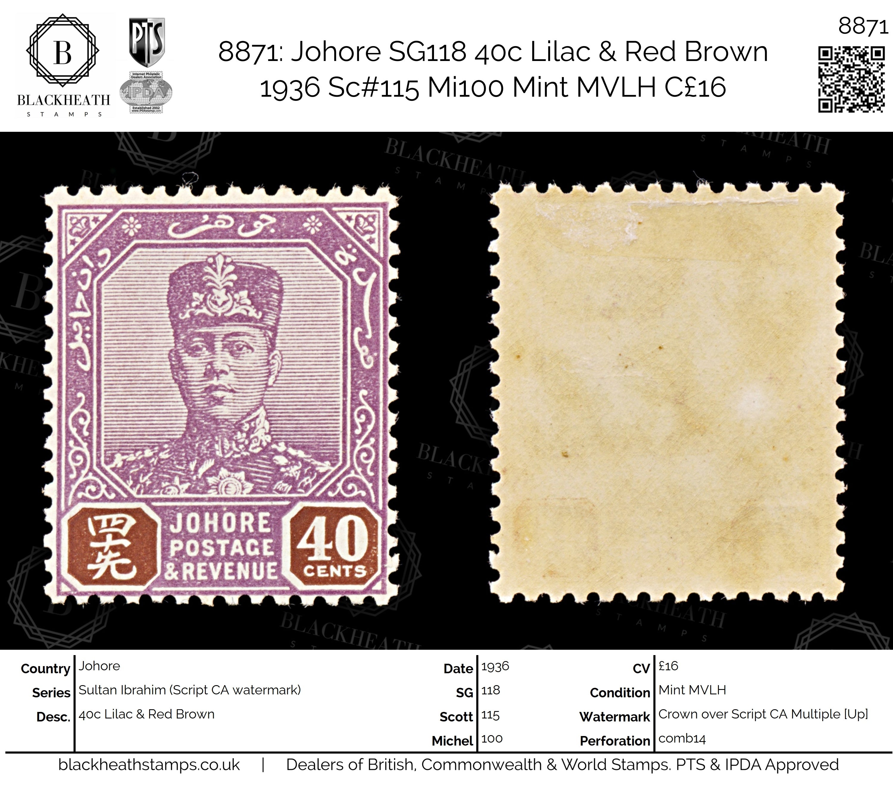 8871: Johore SG118 40c Lilac & Red Brown 1936 Sc#115 Mi100 Mint MVLH C£16