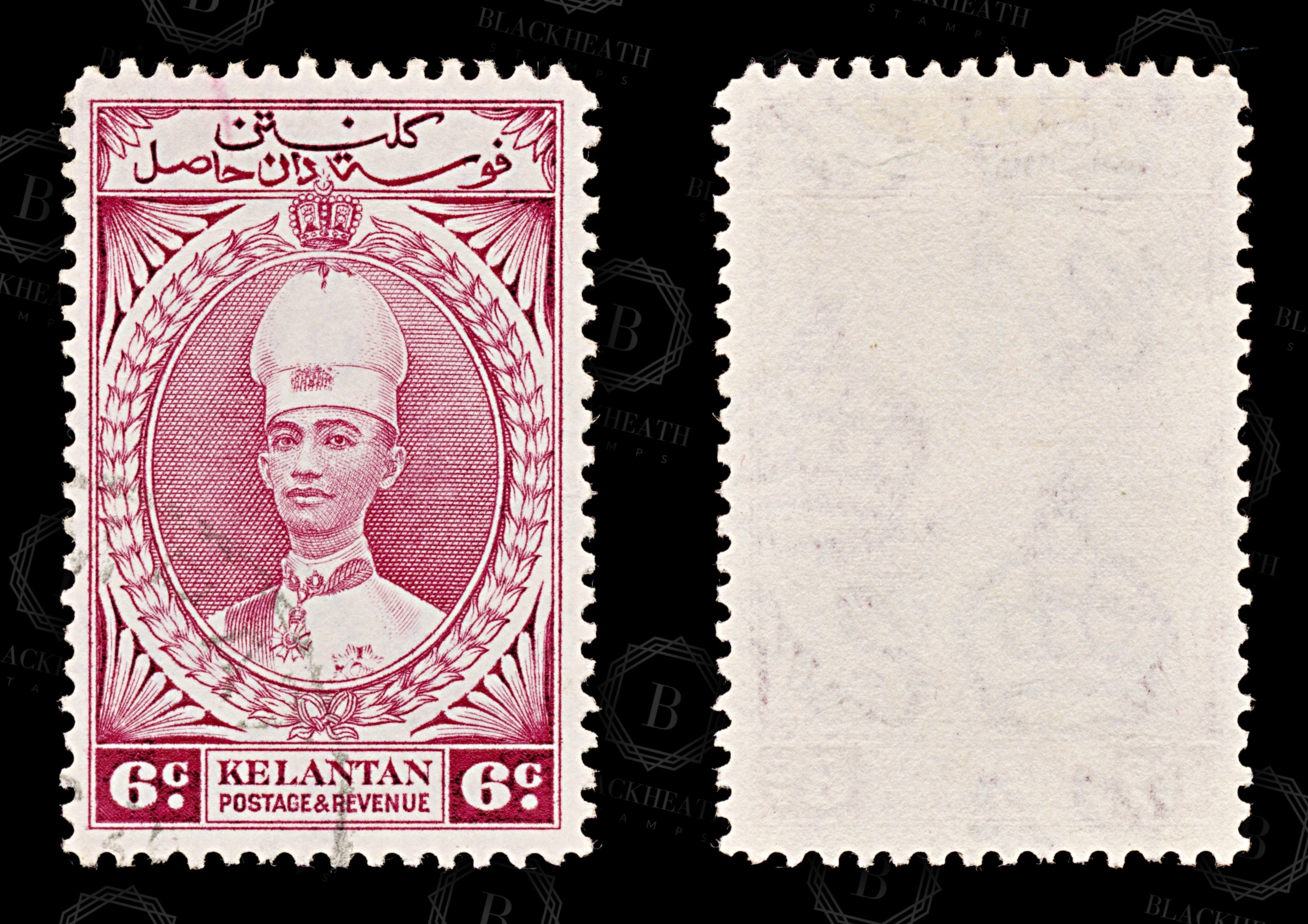 8875: Kelantan SG44 6c Carmine red 1937 Sc#33 Mi32 Uséd C£16