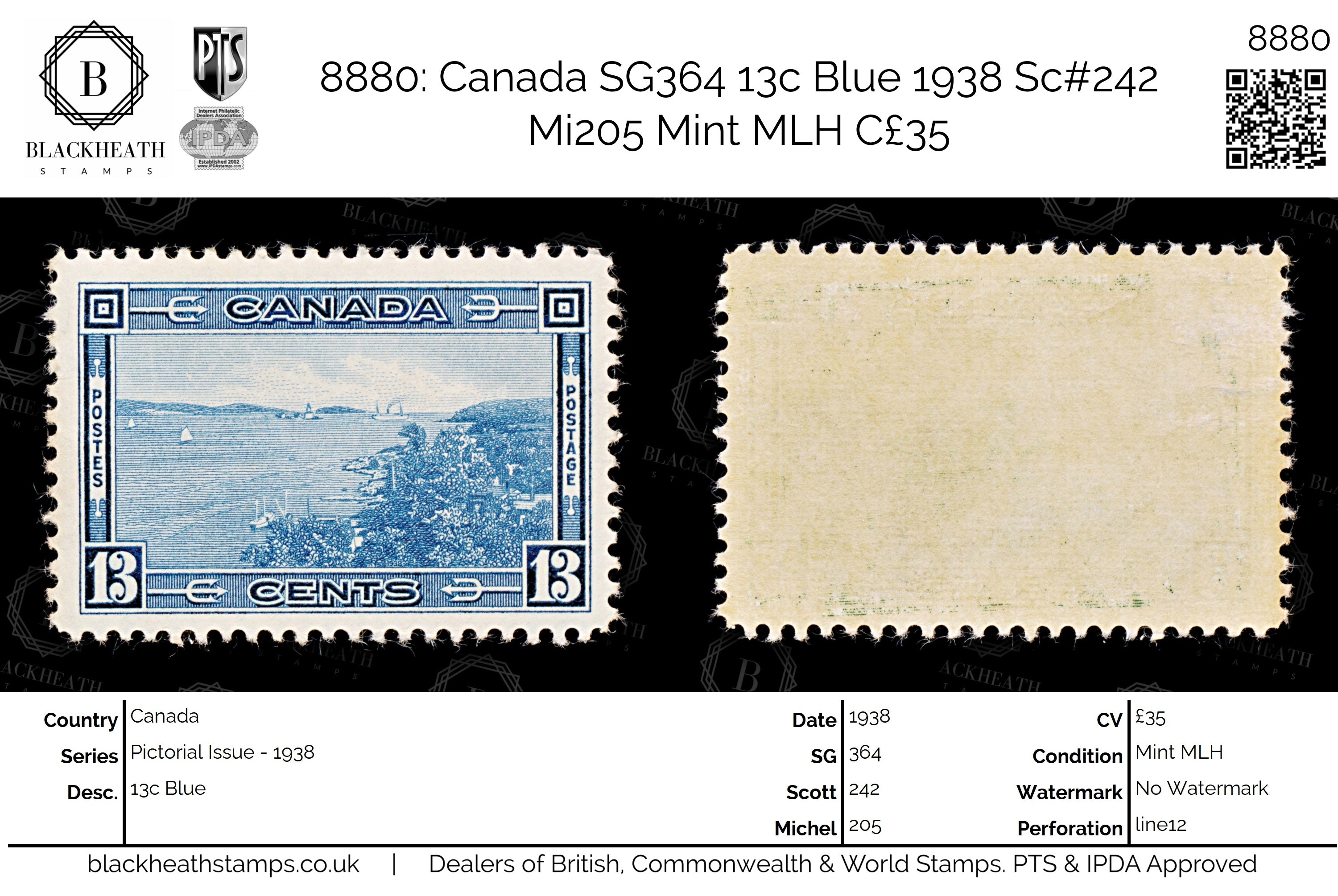 8880: Canada SG364 13c Blue 1938 Sc#242 Mi205 Mint MLH C£35