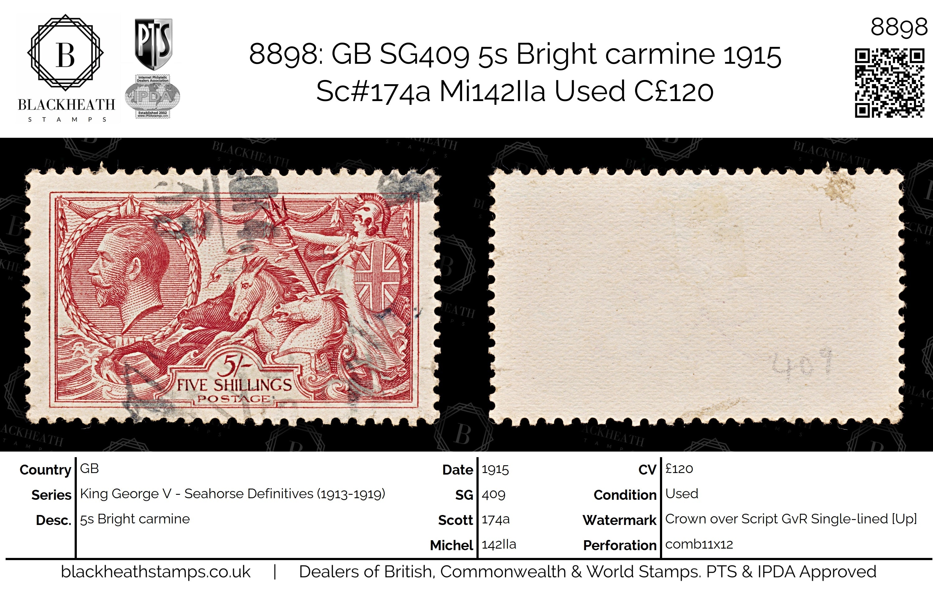 8898: GB SG409 5s Bright carmine 1915 Sc#174a Mi142IIa Uséd C£120
